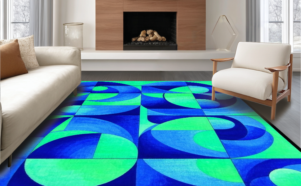 Ultra Soft Area Rug, Non Slip, Stain Resistant, Washable Area Rugs for Living Room, Bedroom, Vibrant Swirl Artistry Motif(Blue) Overview: