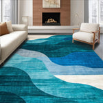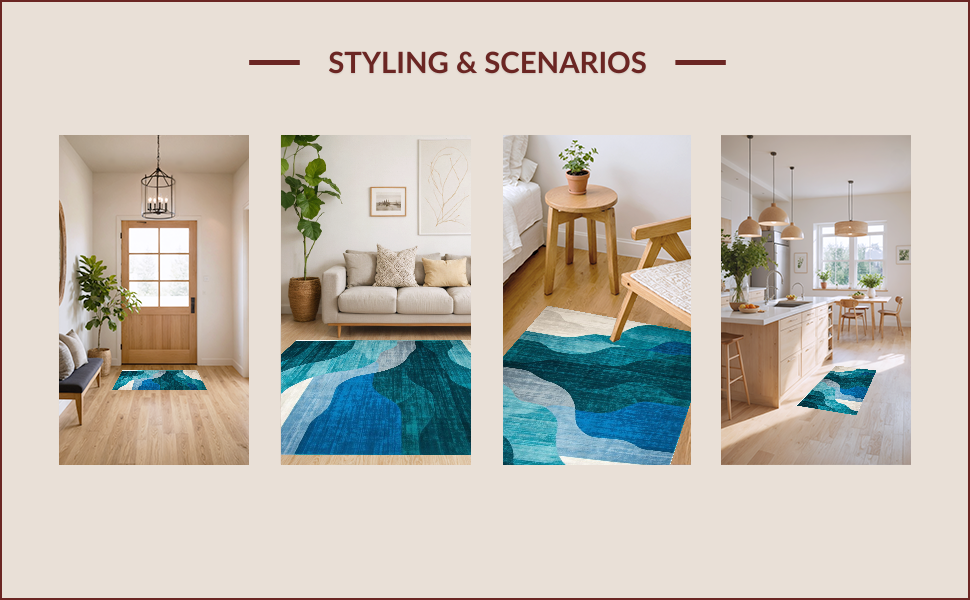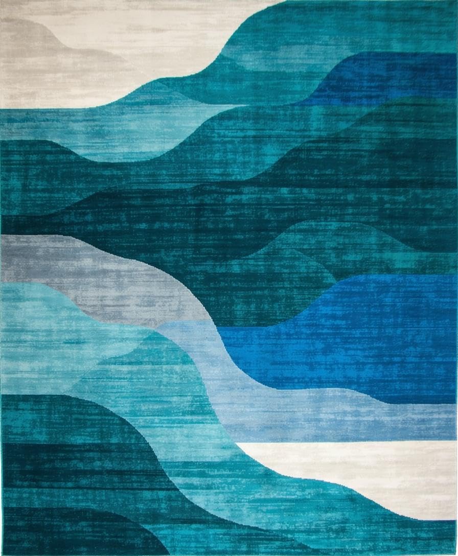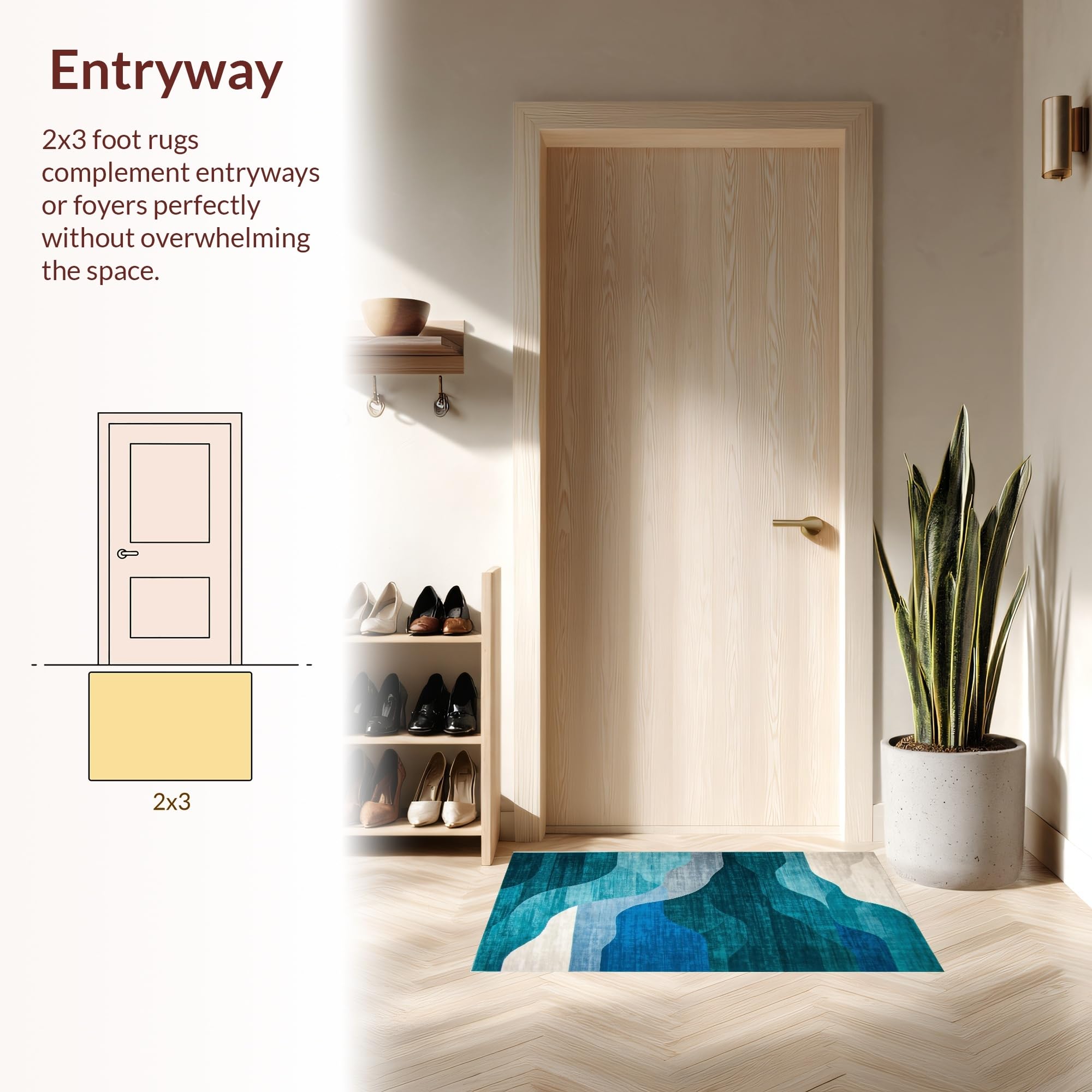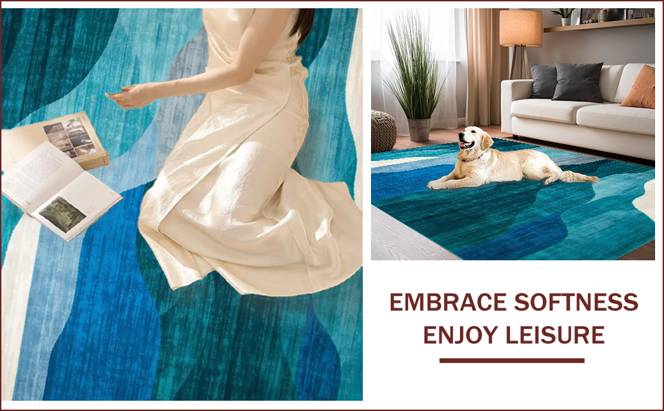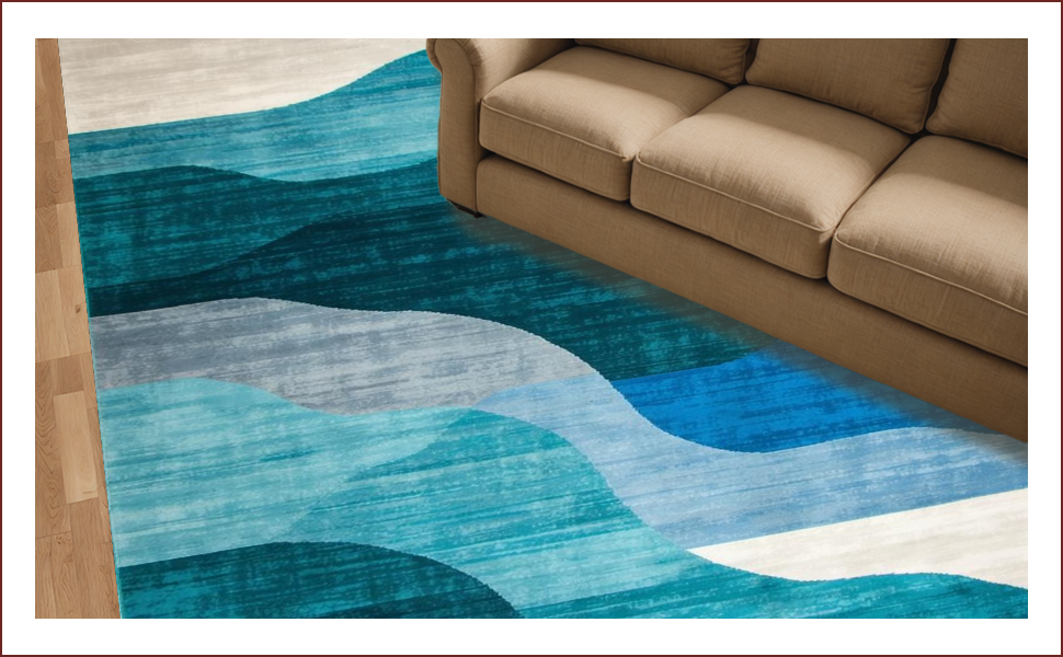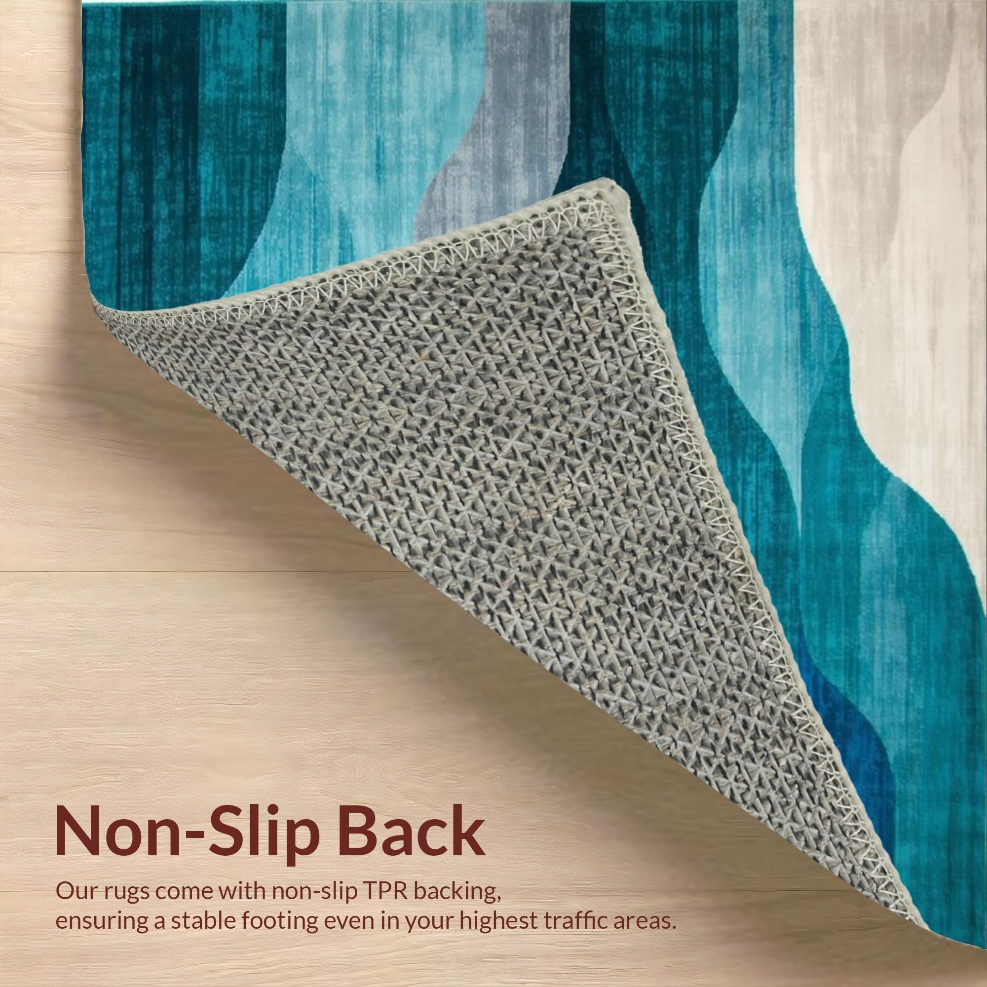 Ultra Soft Area Rug, Non Slip, Stain Resistant, Washable Area Rugs for Living Room, Bedroom, Vibrant Teal Grey Geometric Motif(Blue) Overview: