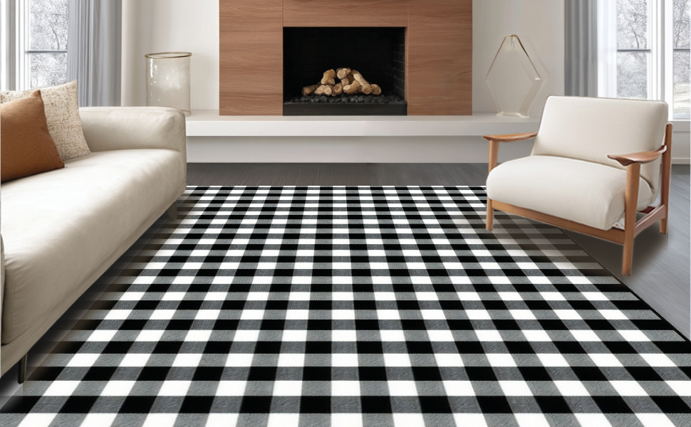 Ultra Soft Area Rug, Non Slip, Stain Resistant, Washable Area Rugs for Living Room, Bedroom, Vibrant Traditional Plaid Visual Harmony(Black) Overview: