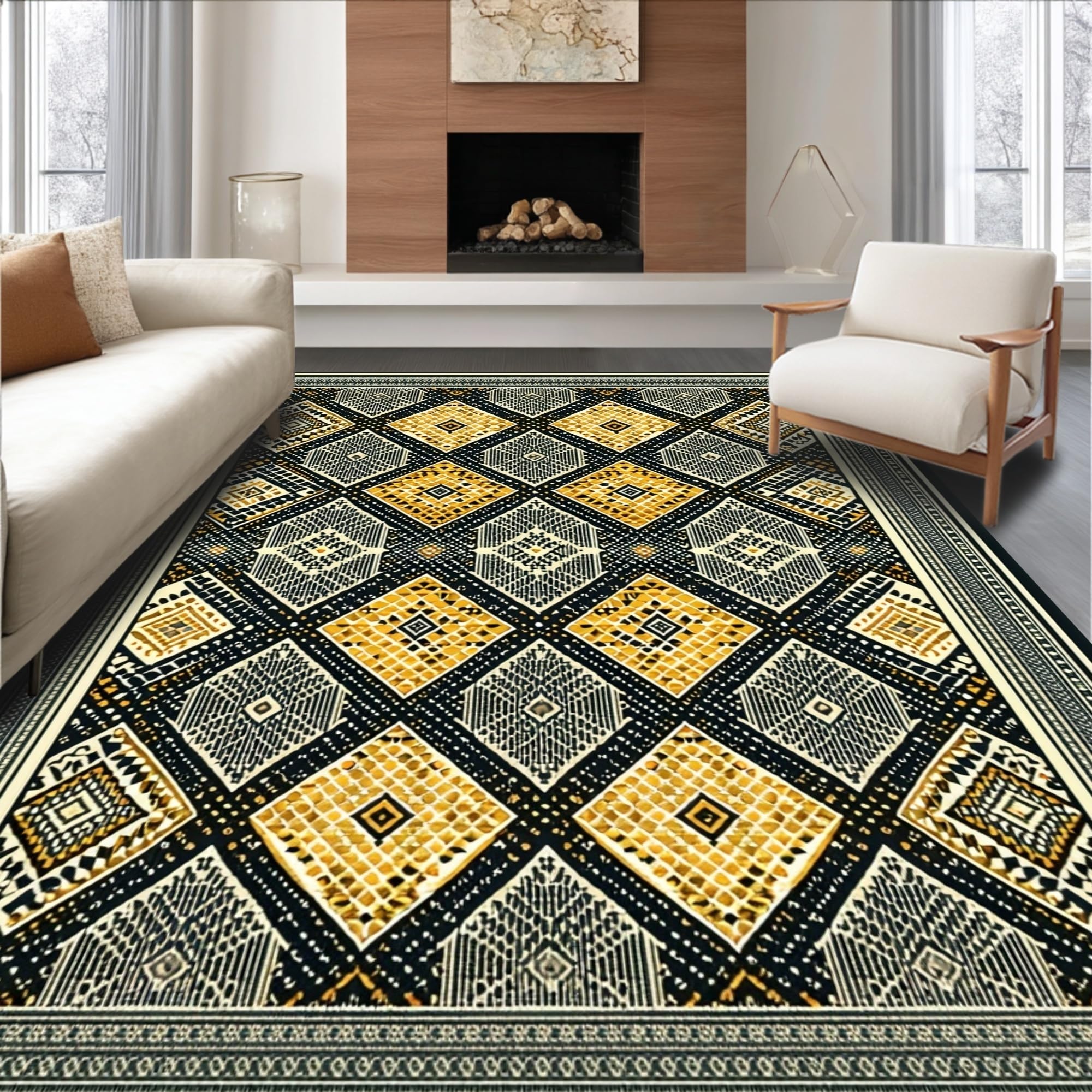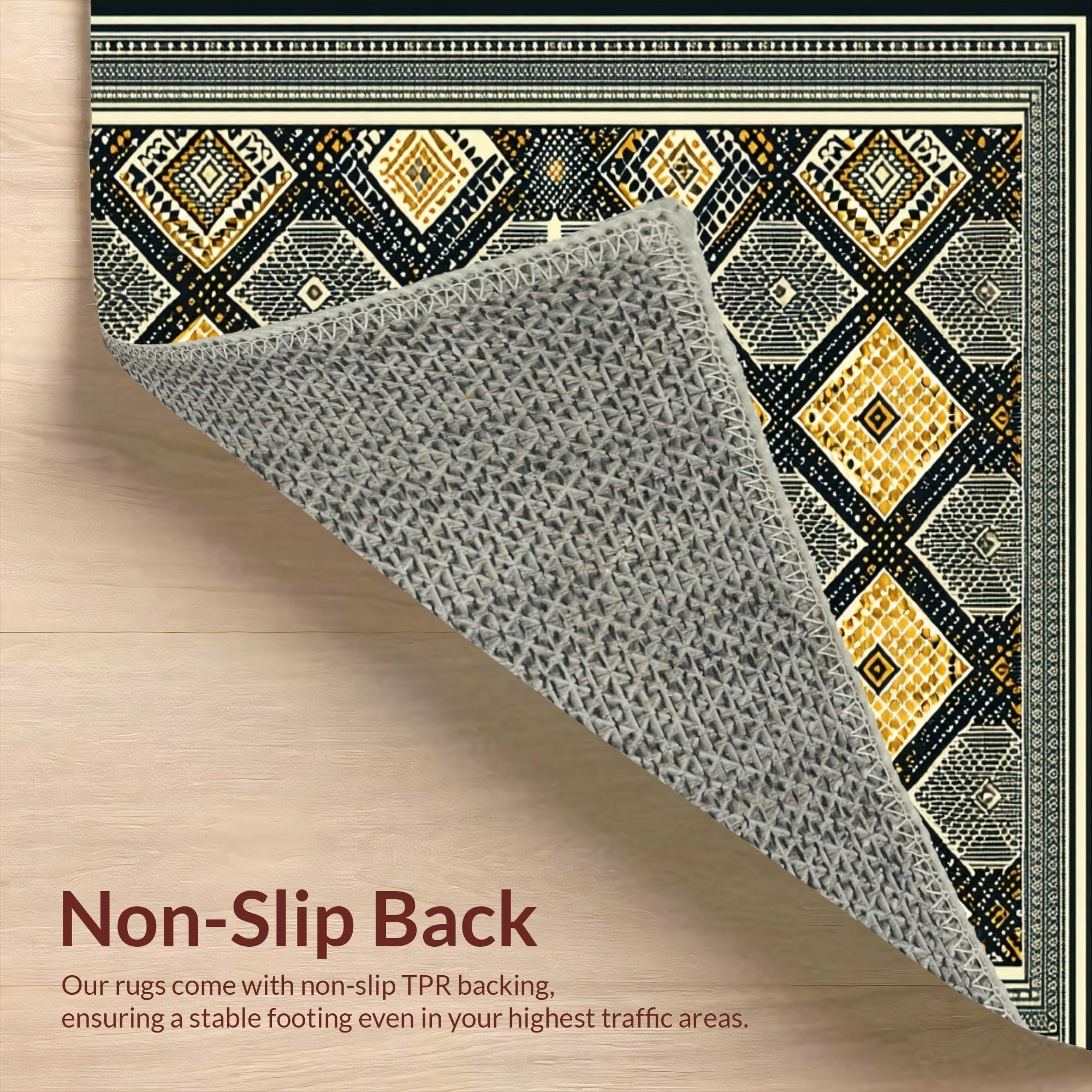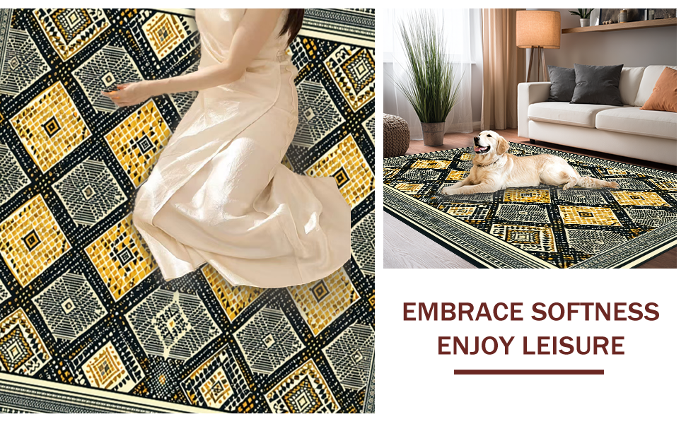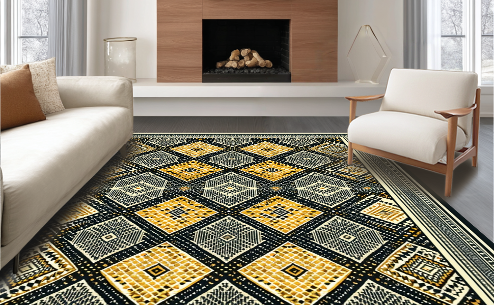 Ultra Soft Area Rug, Non Slip, Stain Resistant, Washable Area Rugs for Living Room, Bedroom, Vibrant Trellis Pattern Aesthetic(Black) Overview: