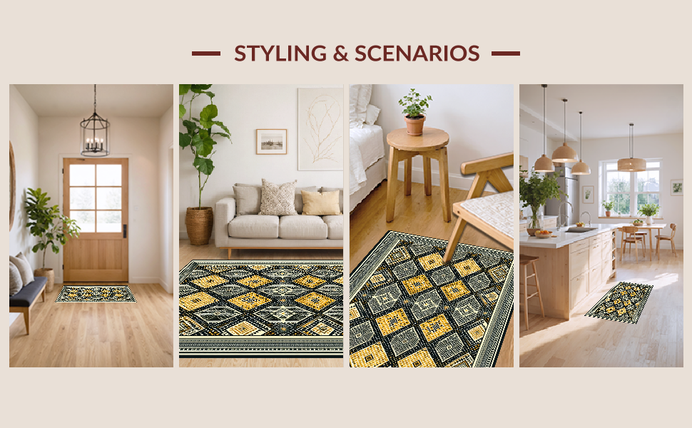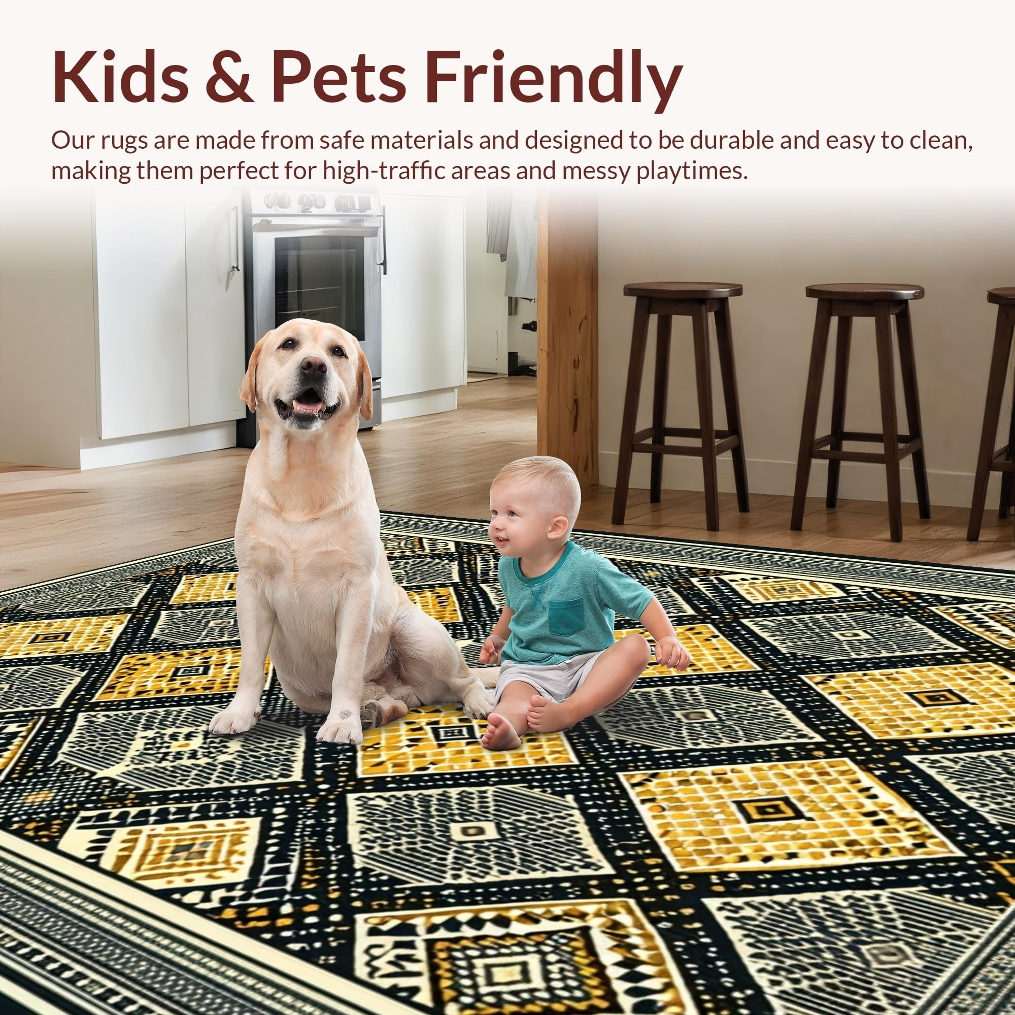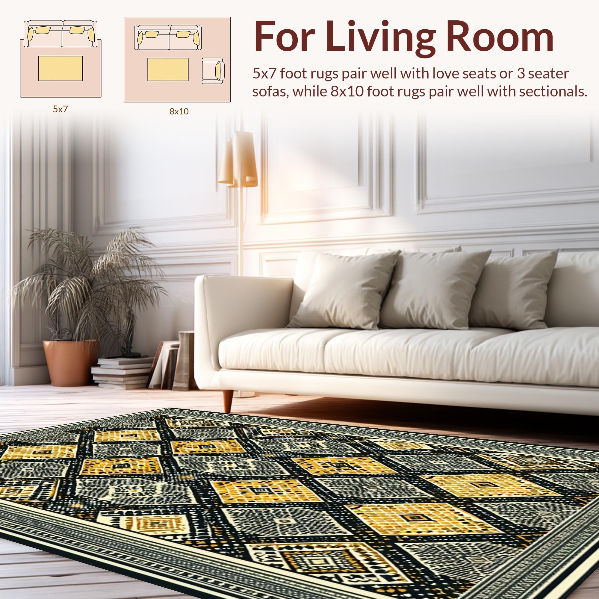 Ultra Soft Area Rug, Non Slip, Stain Resistant, Washable Area Rugs for Living Room, Bedroom, Vibrant Trellis Pattern Aesthetic(Black) Overview:
