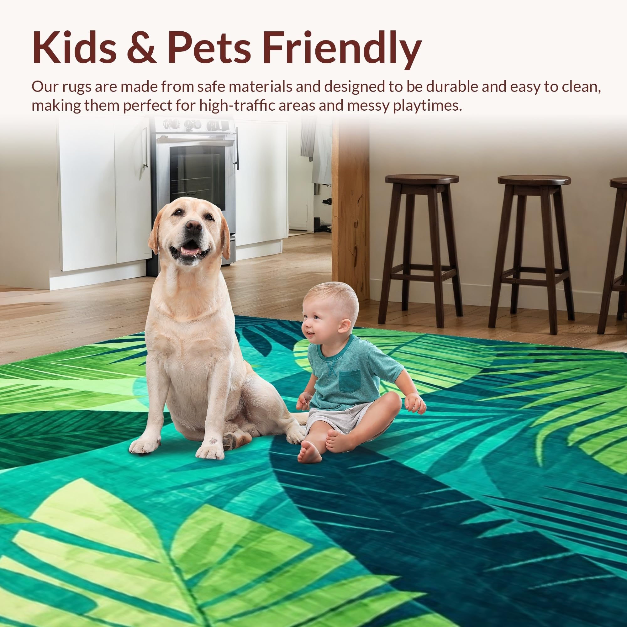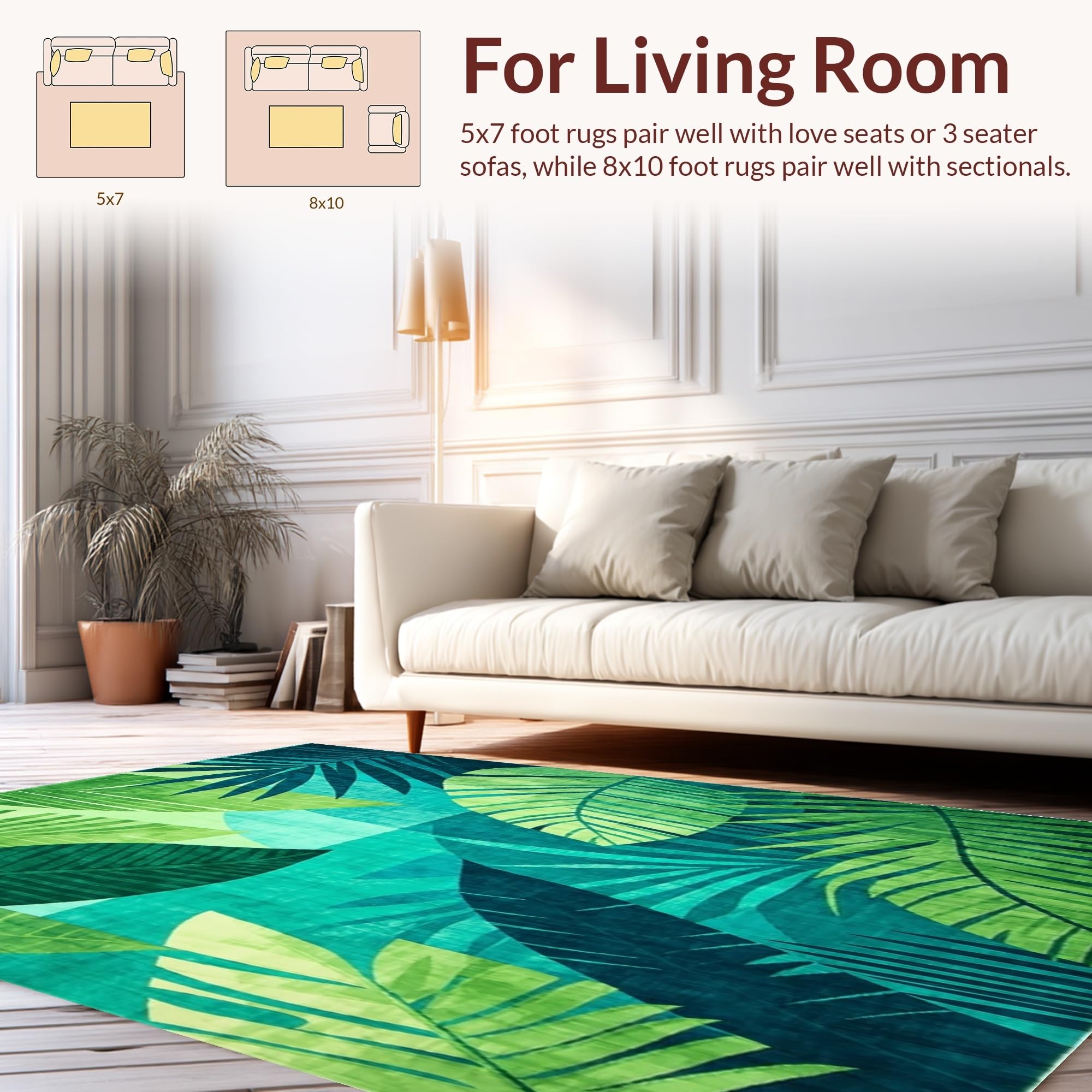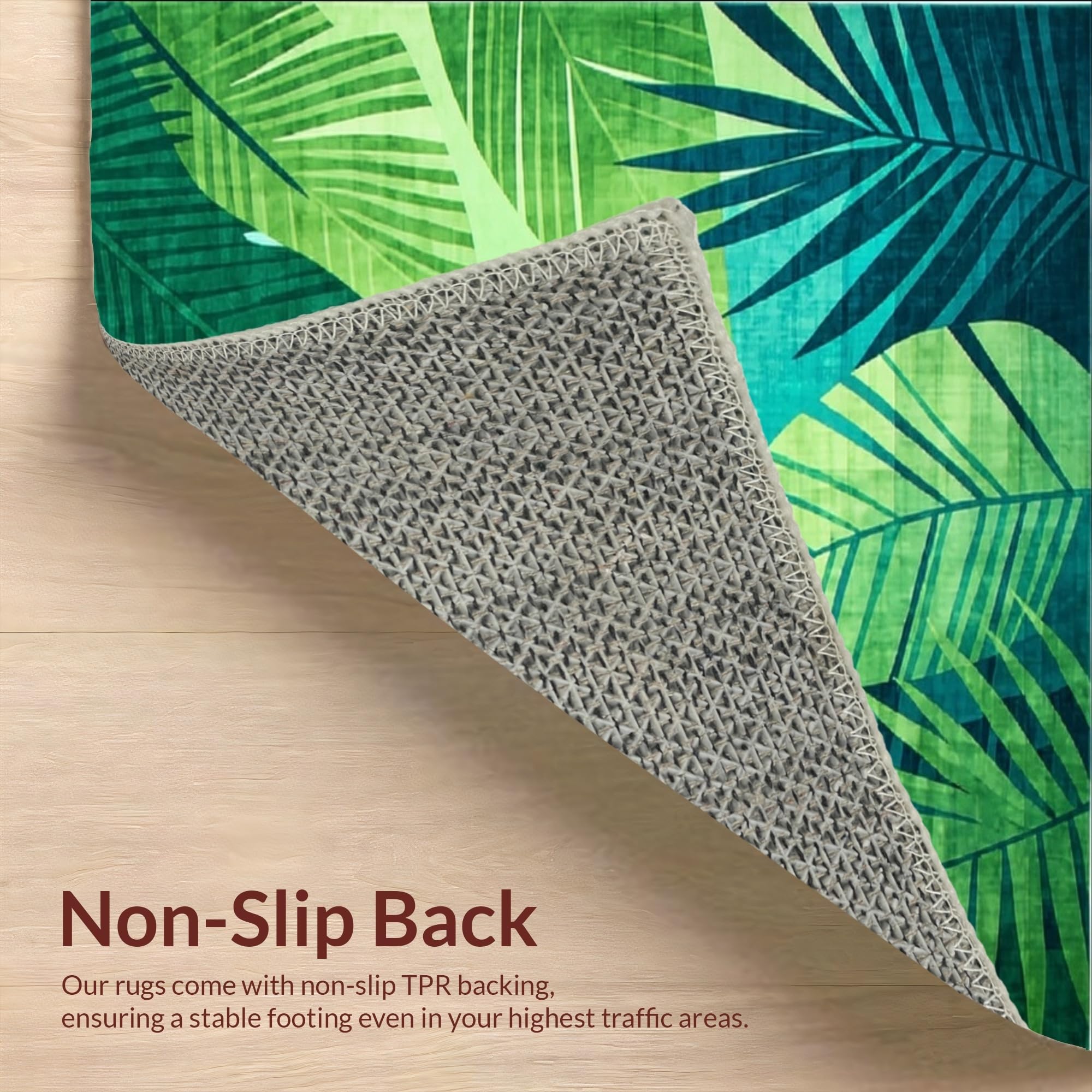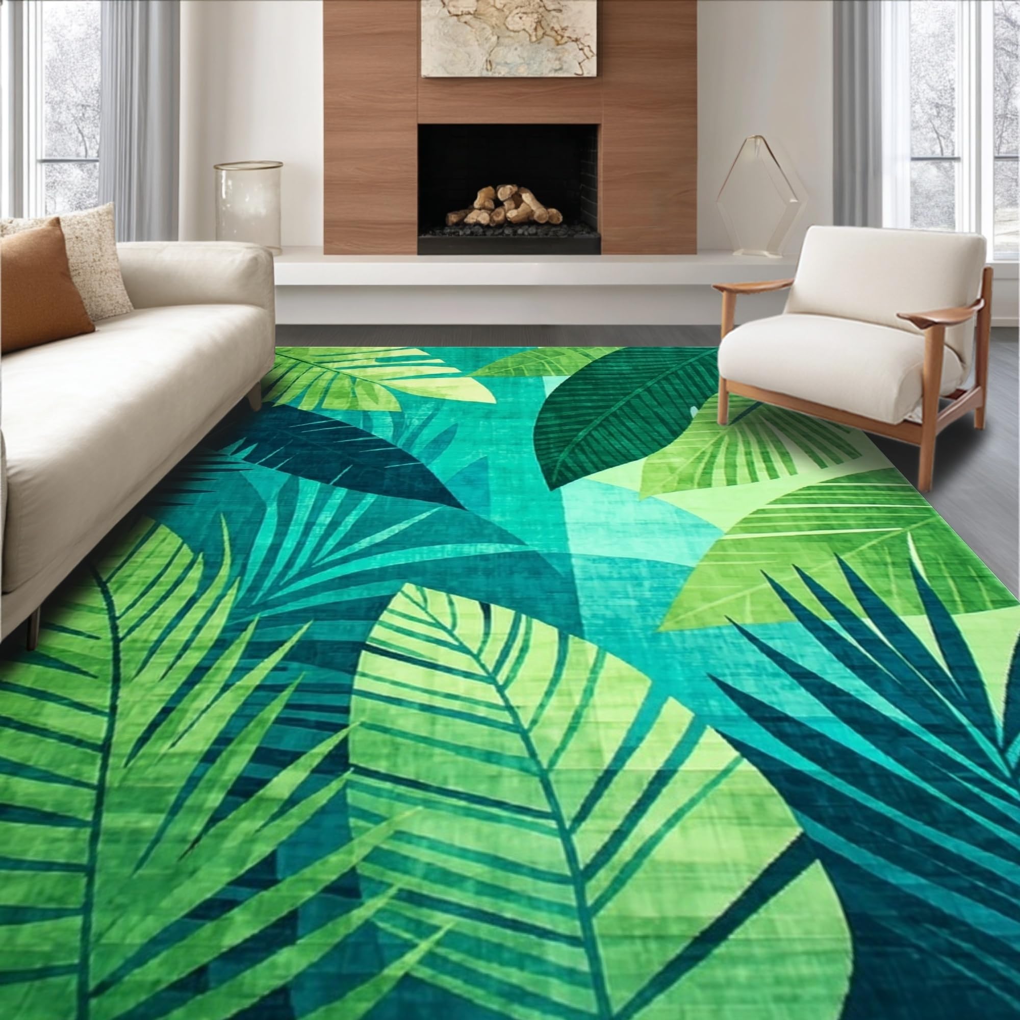 Ultra Soft Area Rug, Non Slip, Stain Resistant, Washable Area Rugs for Living Room, Bedroom, Vibrant Tropical Leaf Design Area with Relaxed Aesthetic(Blue) Overview: