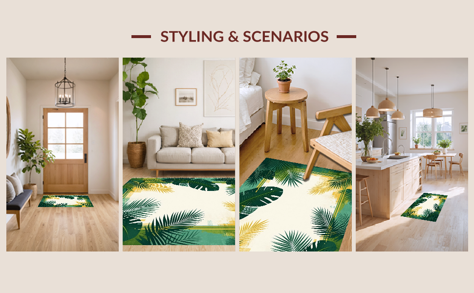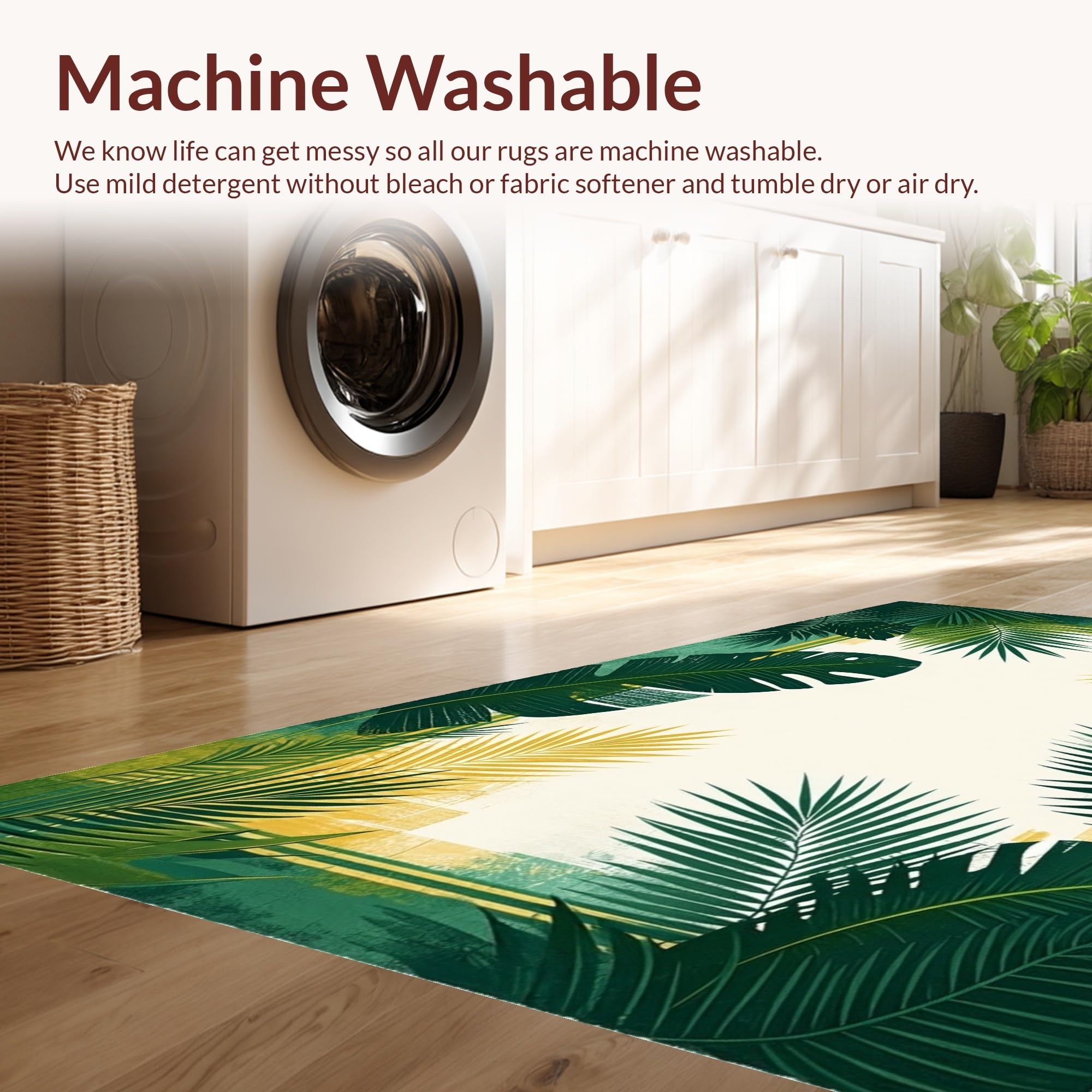 Ultra Soft Area Rug, Non Slip, Stain Resistant, Washable Area Rugs for Living Room, Bedroom, Vibrant Tropical Leaf Motif(Green) Overview: