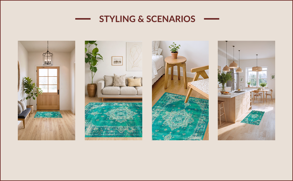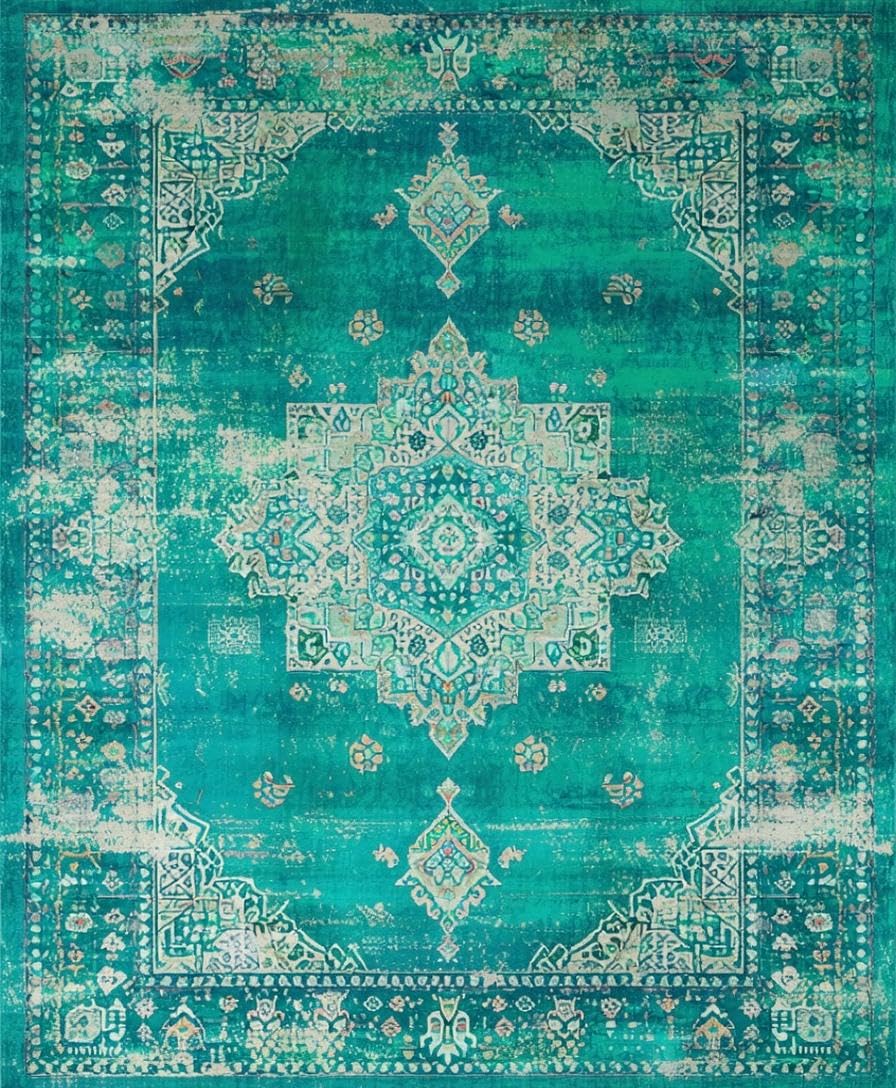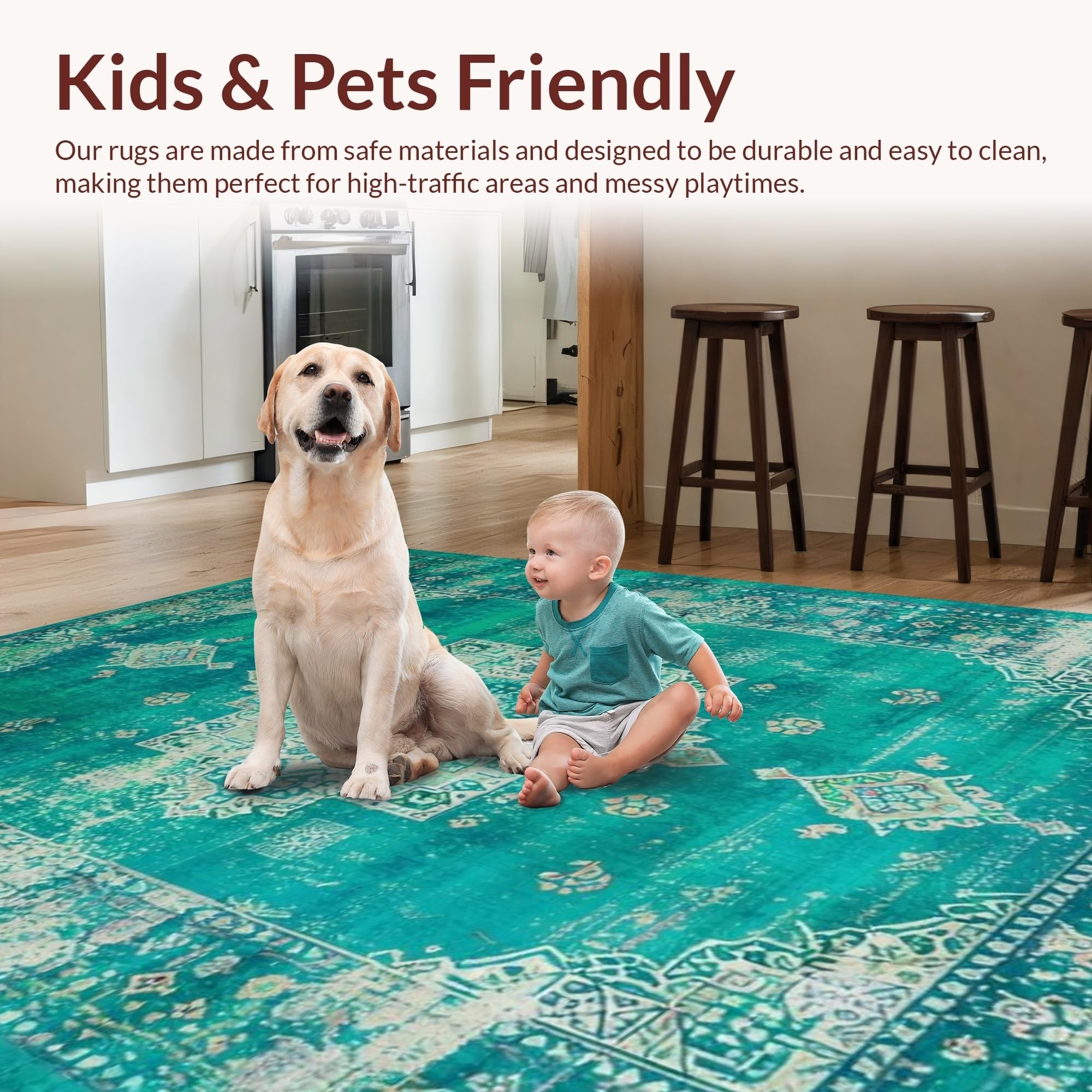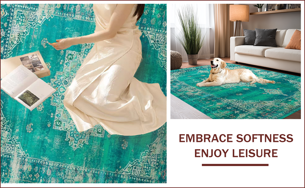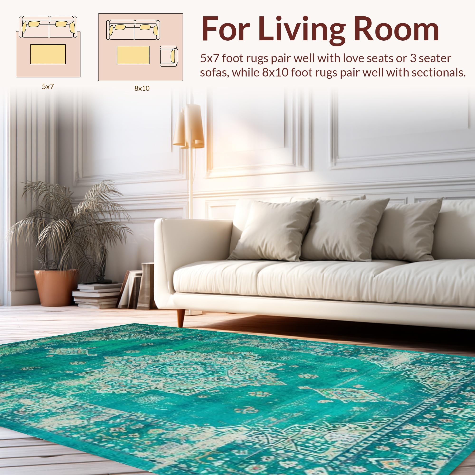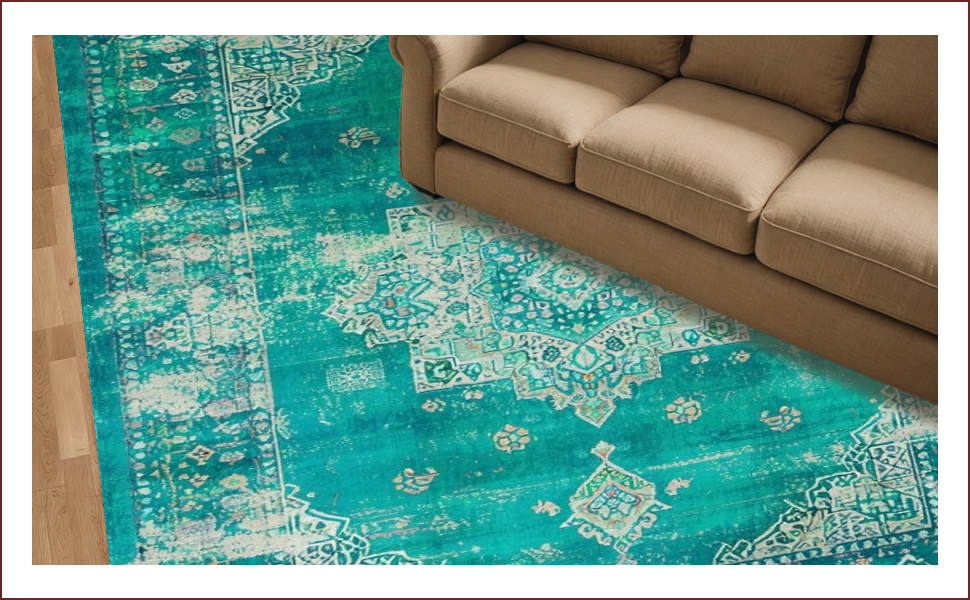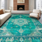 Ultra Soft Area Rug, Non Slip, Stain Resistant, Washable Area Rugs for Living Room, Bedroom, Vibrant Turquoise Medallion Motif(Blue) Overview: