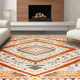 Ultra Soft Area Rug, Non Slip, Stain Resistant, Washable Area Rugs for Living Room, Bedroom, Vibrant Vintage Geometric Flair(Orange) Overview: