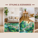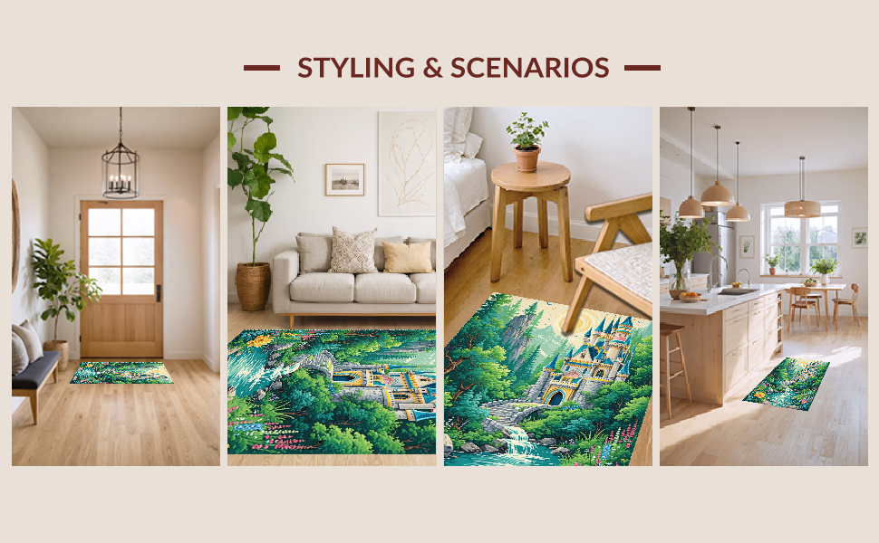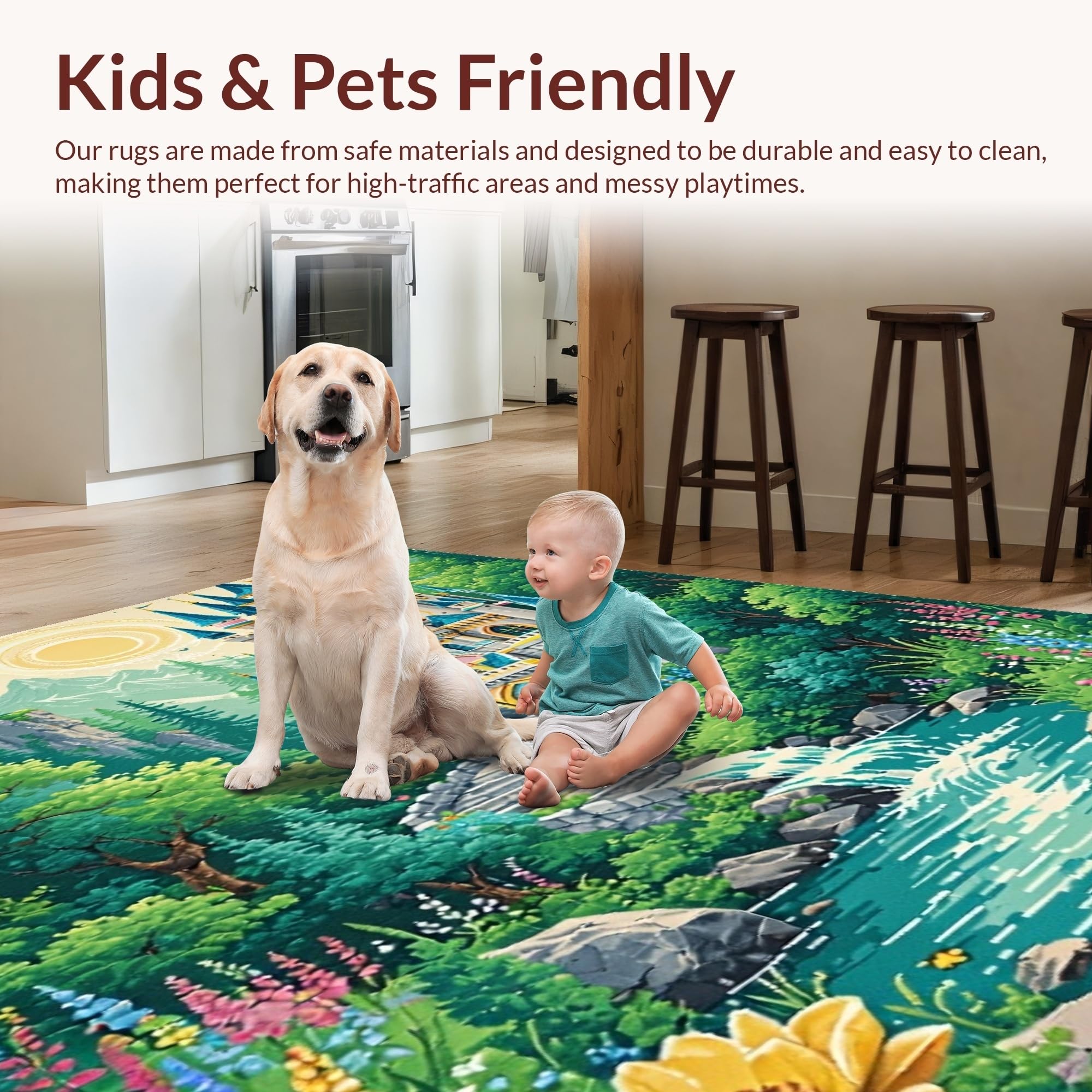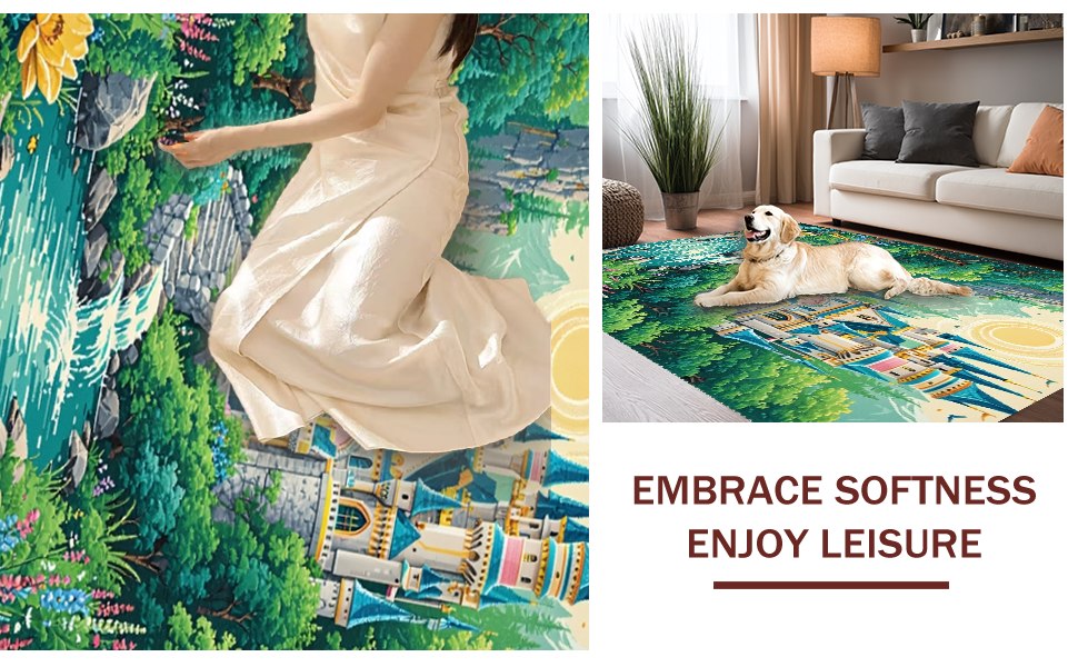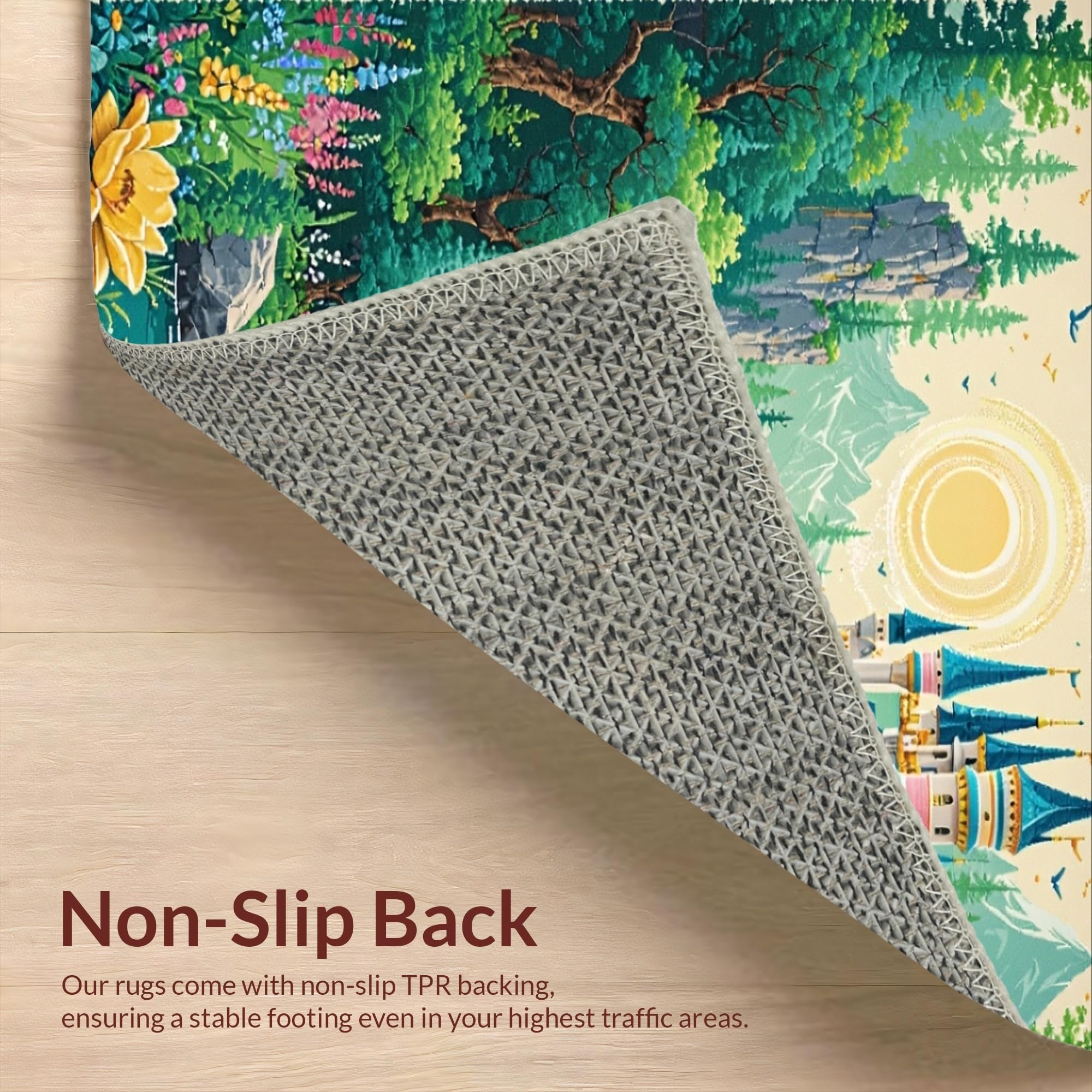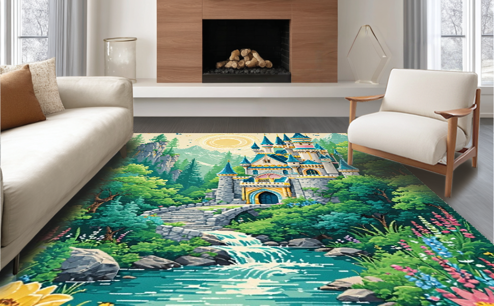 Ultra Soft Area Rug, Non Slip, Stain Resistant, Washable Area Rugs for Living Room, Bedroom, Vibrant Whimsical Castle Motif(Green) Overview: