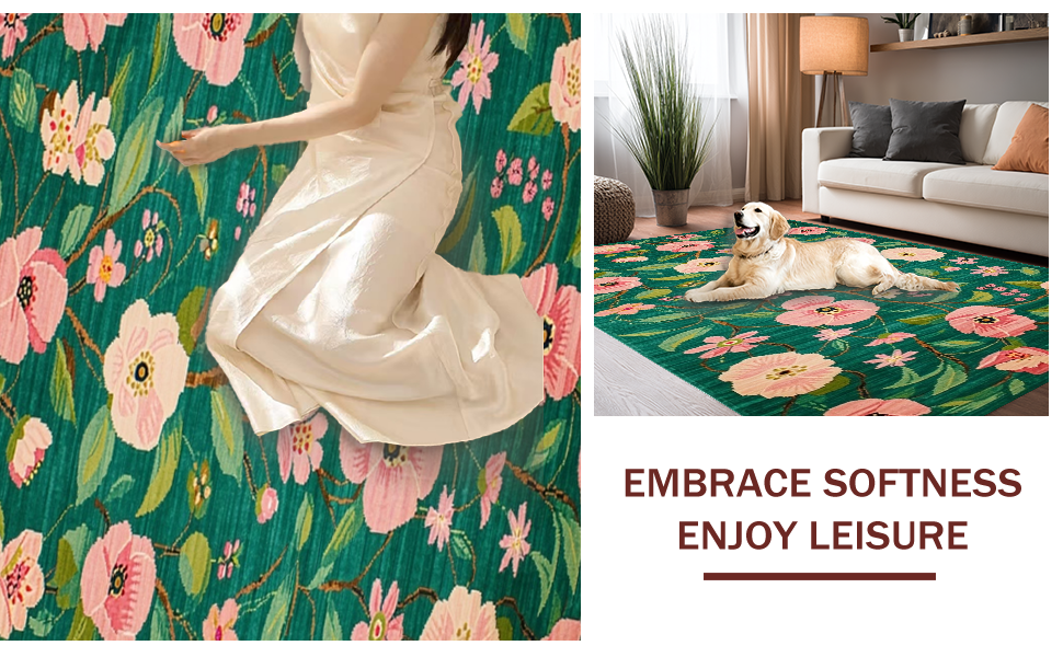 Ultra Soft Area Rug, Non Slip, Stain Resistant, Washable Area Rugs for Living Room, Bedroom, Vibrant Whimsical Floral Aesthetic(Green) Overview: