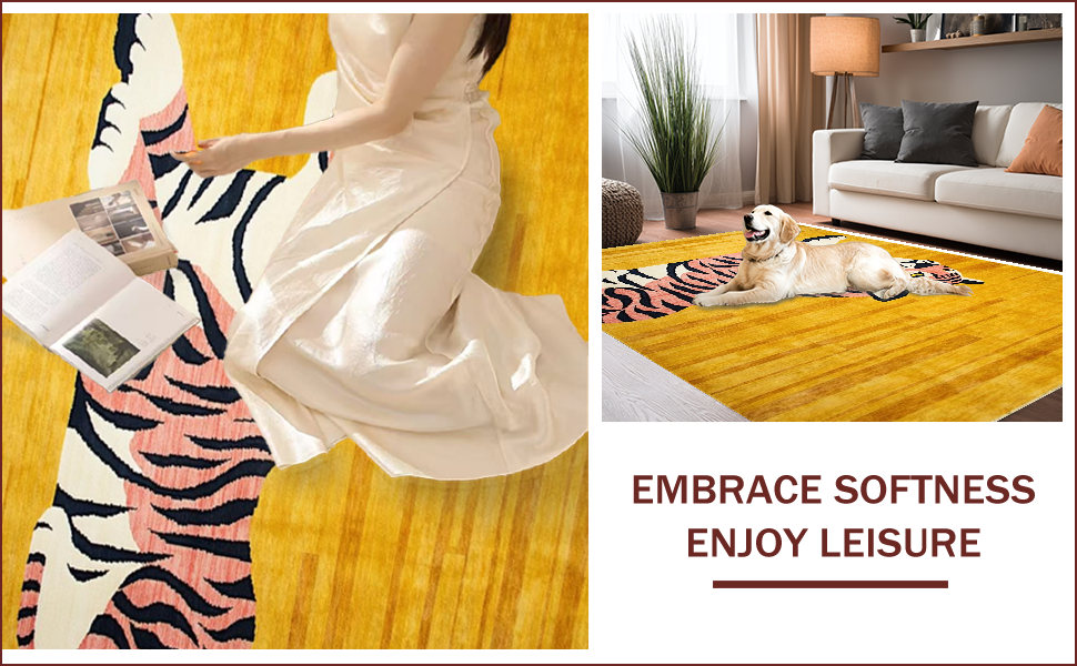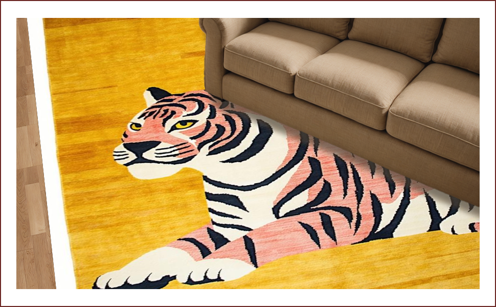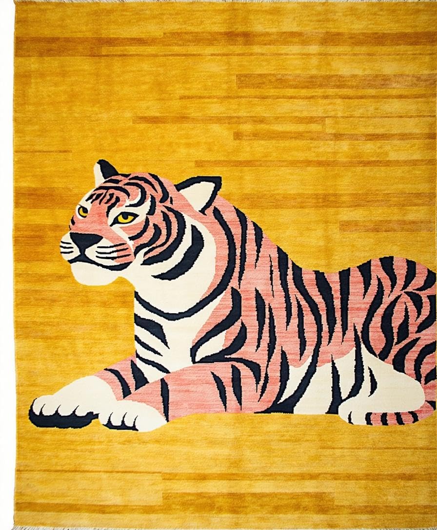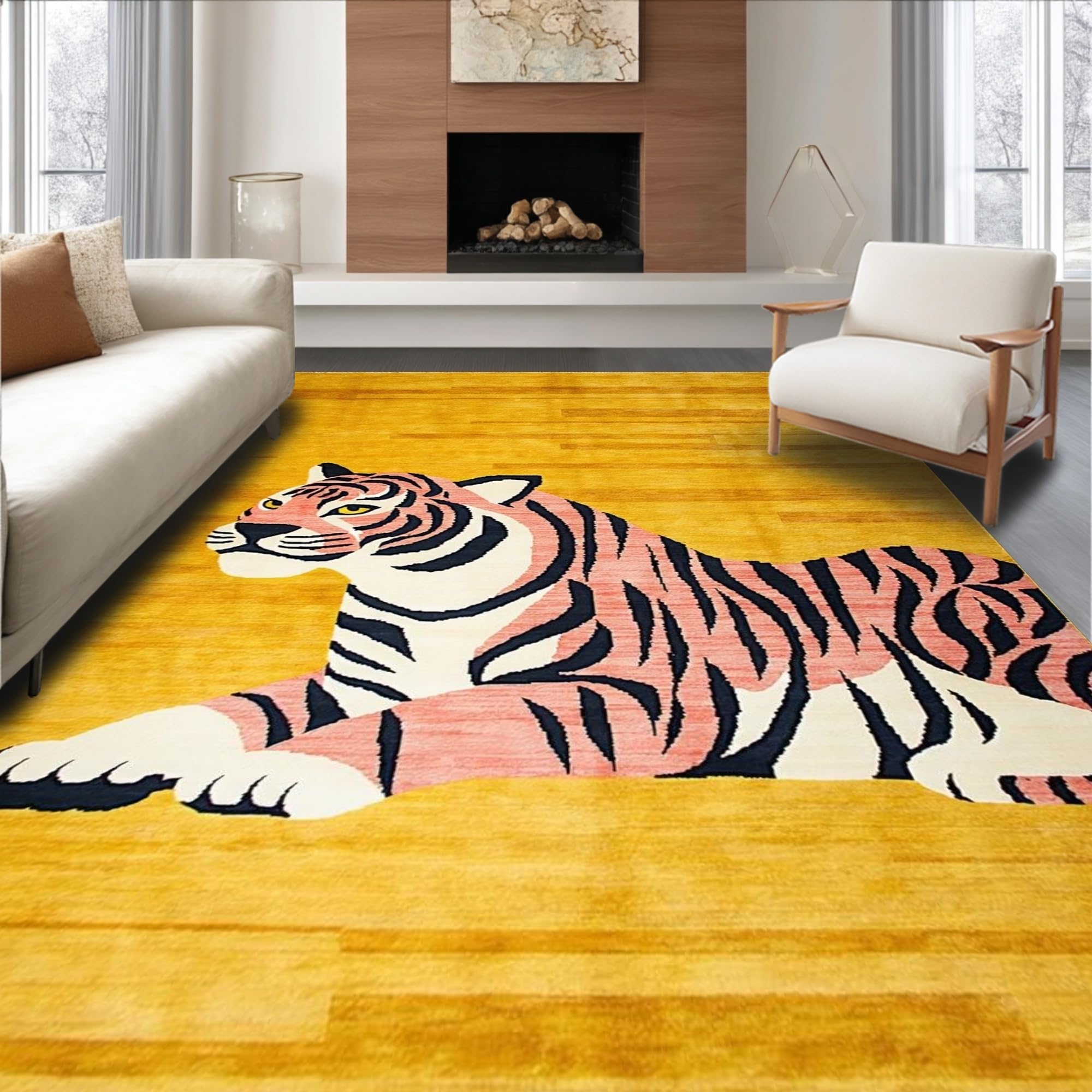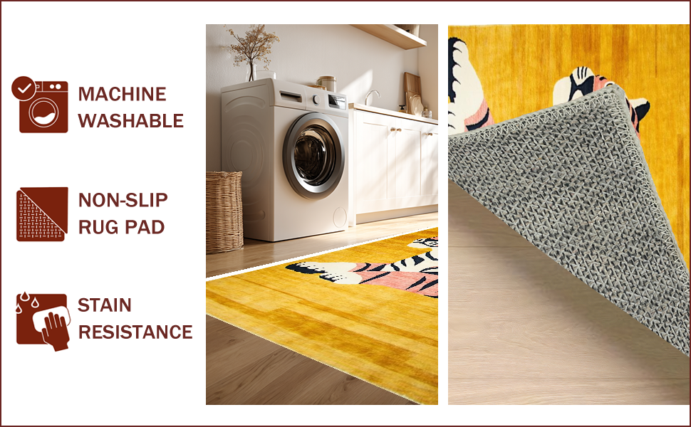 Ultra Soft Area Rug, Non Slip, Stain Resistant, Washable Area Rugs for Living Room, Bedroom, Vibrant Yellow Animal Motif(Gold) Overview:
