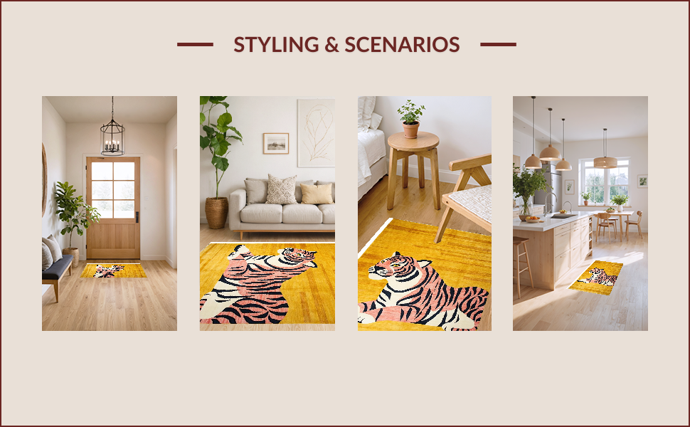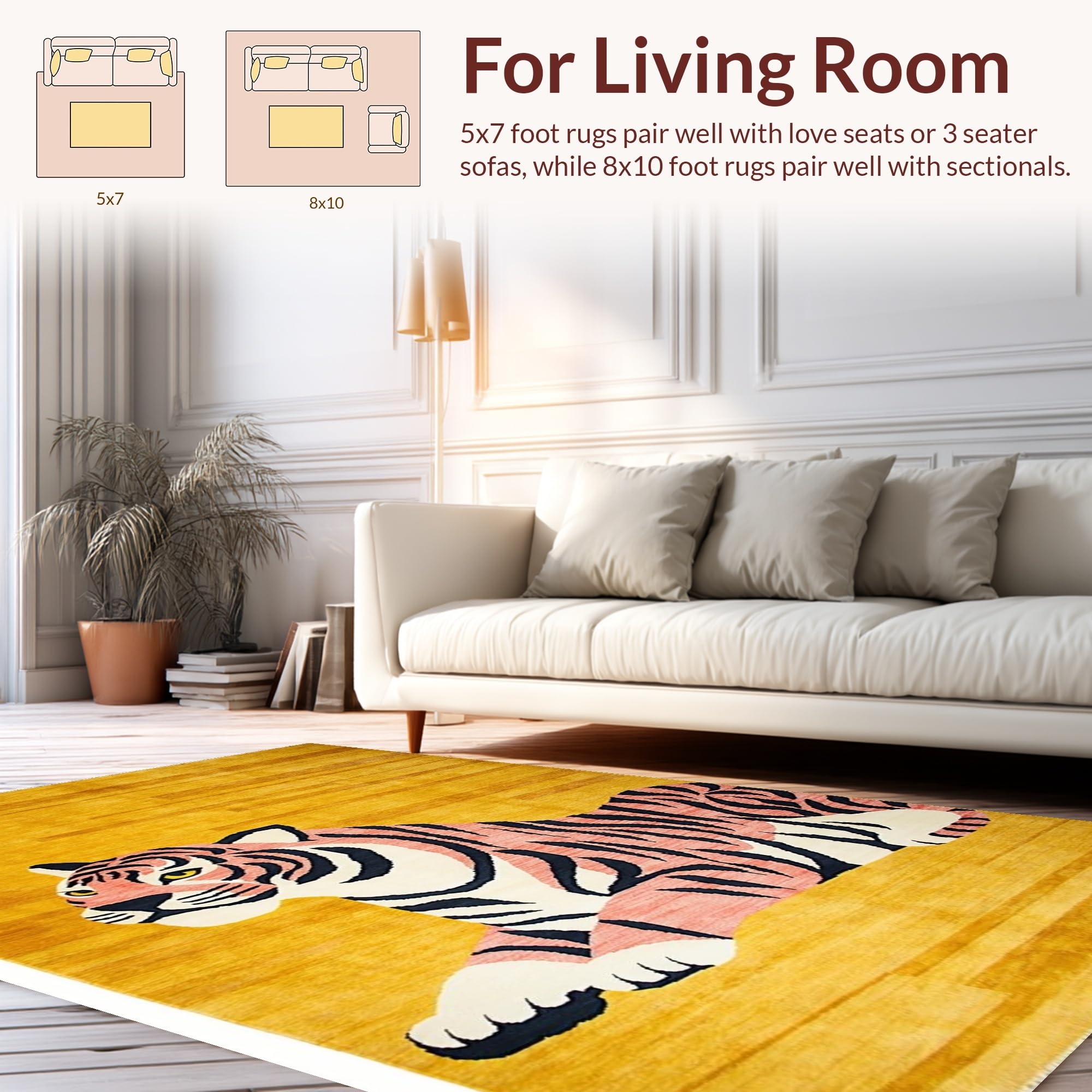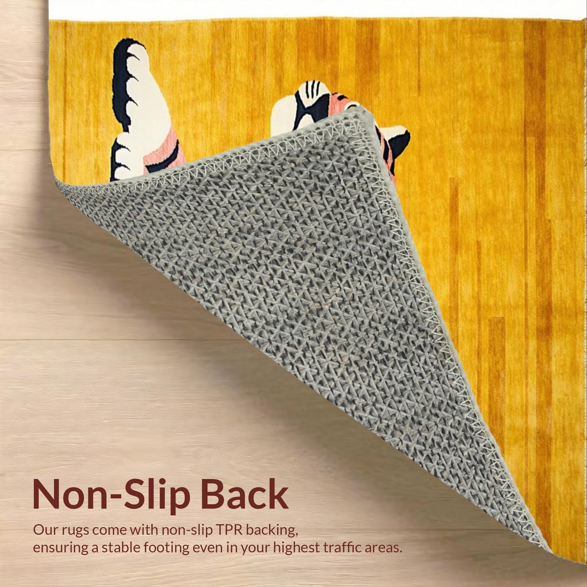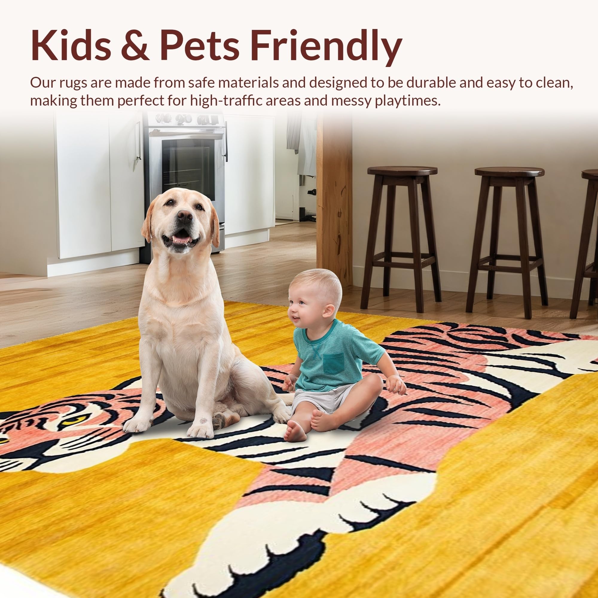 Ultra Soft Area Rug, Non Slip, Stain Resistant, Washable Area Rugs for Living Room, Bedroom, Vibrant Yellow Animal Motif(Gold) Overview: