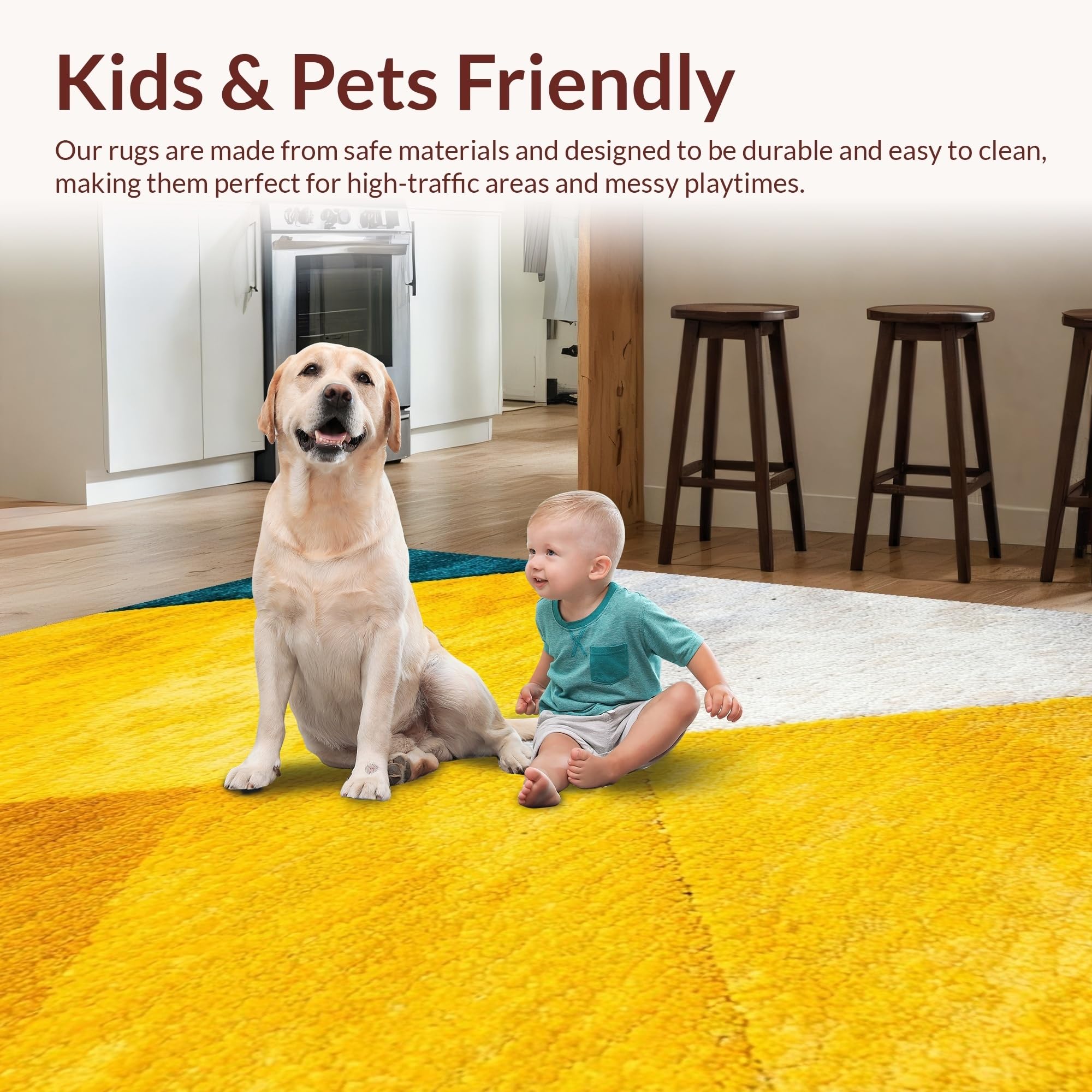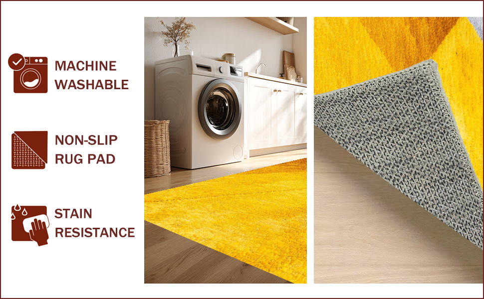 Ultra Soft Area Rug, Non Slip, Stain Resistant, Washable Area Rugs for Living Room, Bedroom, Vibrant Yellow Kitchen Stain-Resistant Decorative Rug(Yellow) Overview: