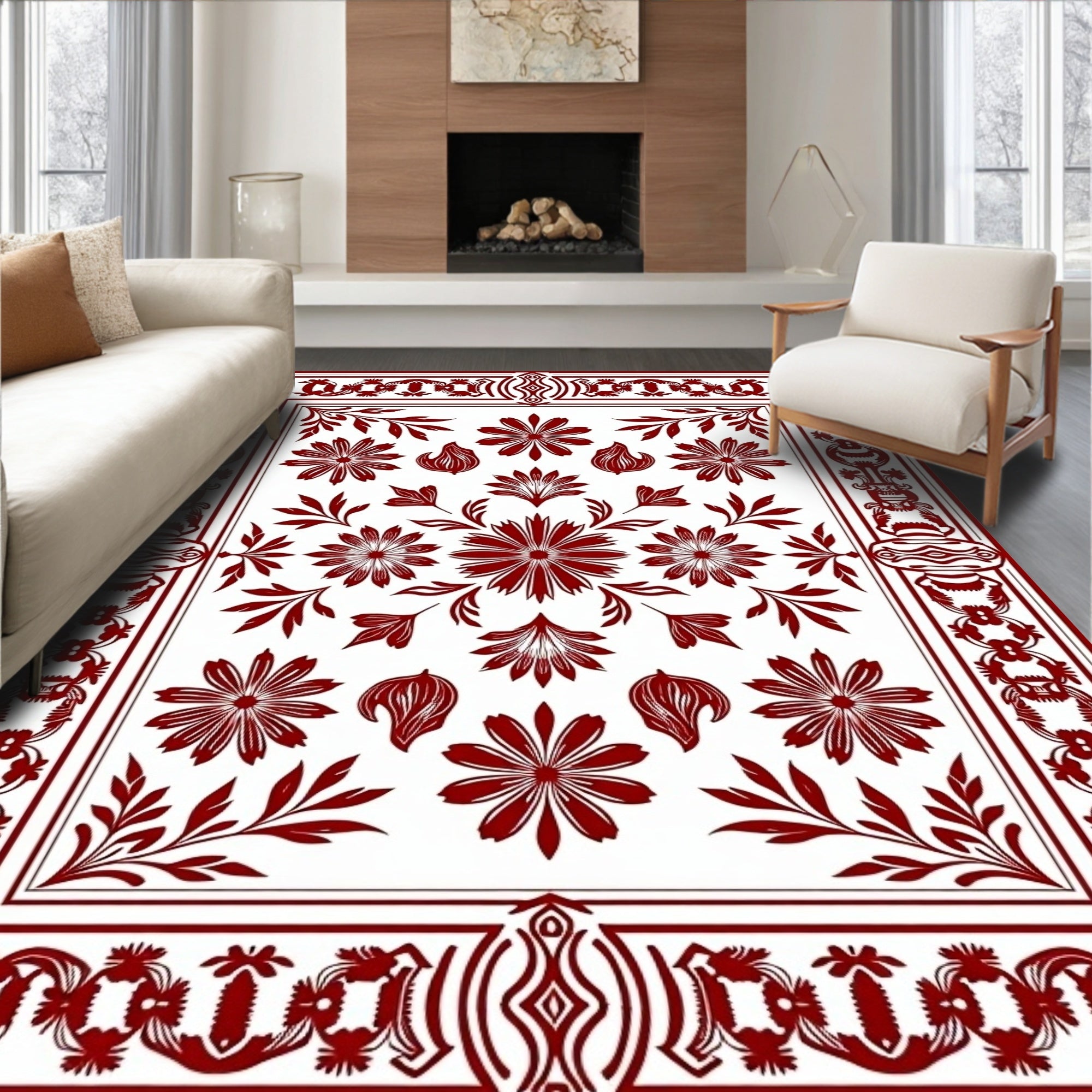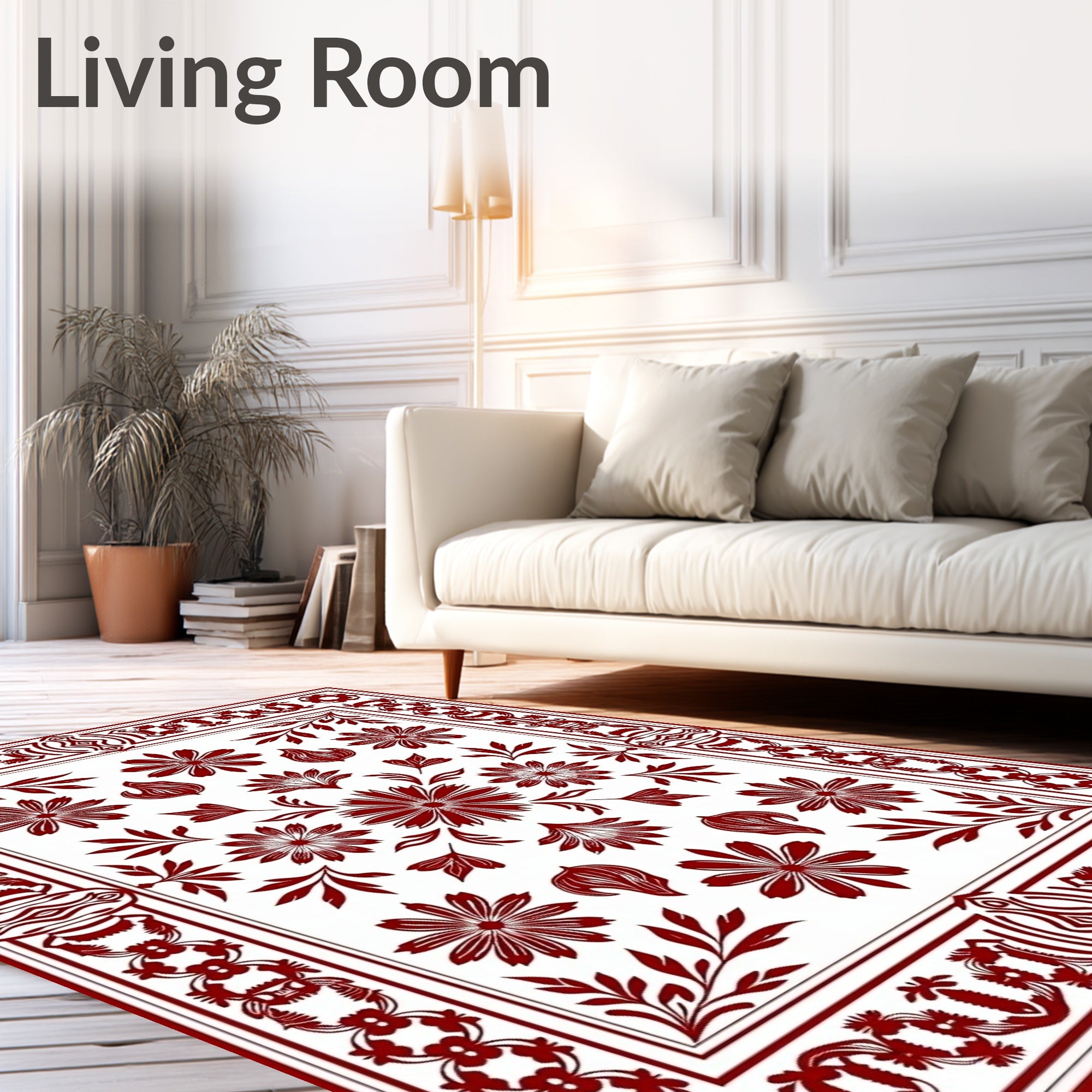 Ultra Soft Area Rug, Non Slip, Stain Resistant, Washable Area Rugs for Living Room, Bedroom, Victorian Botany Flora(Red) Overview: