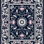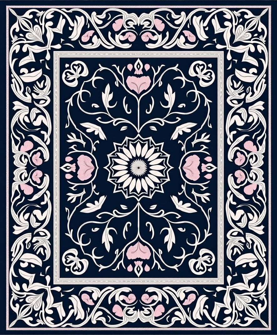 Ultra Soft Area Rug, Non Slip, Stain Resistant, Washable Area Rugs for Living Room, Bedroom, Victorian Lattice with Flourishing Petal Emblems and Twining Leaves(Black) Overview: