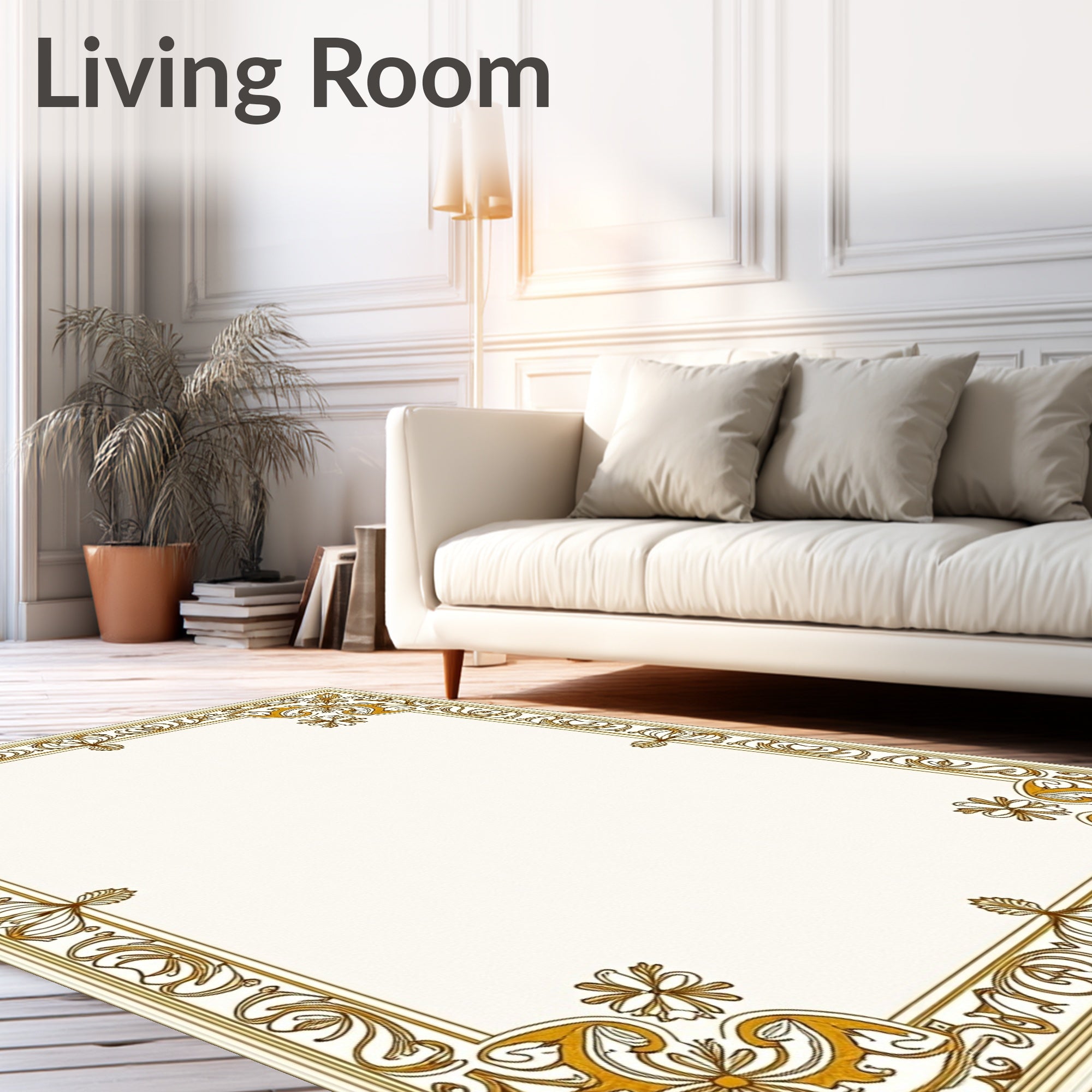 Flatwoven High Traffic Area Rug, Victorian Medallion Revival with Ornate Vinework and Fleur Motifs, Non Slip, Stain Resistant, Washable Area Rugs for Living Room, Bedroom (Gold) Overview: