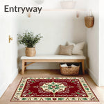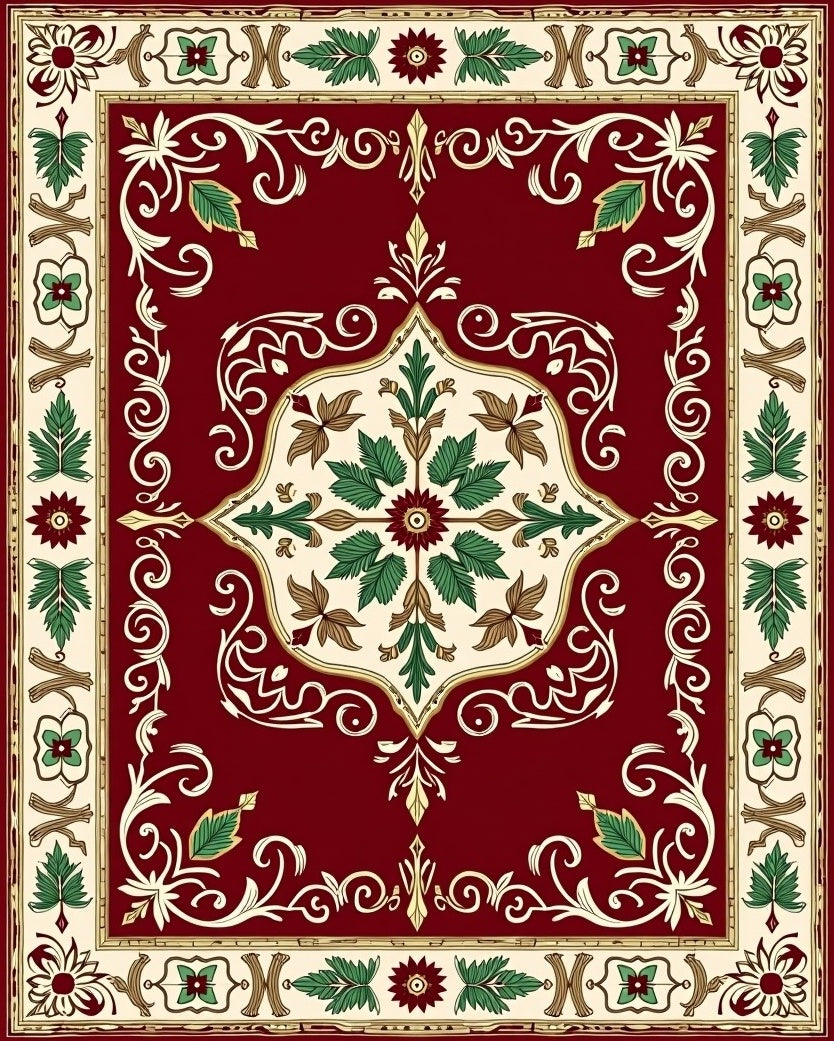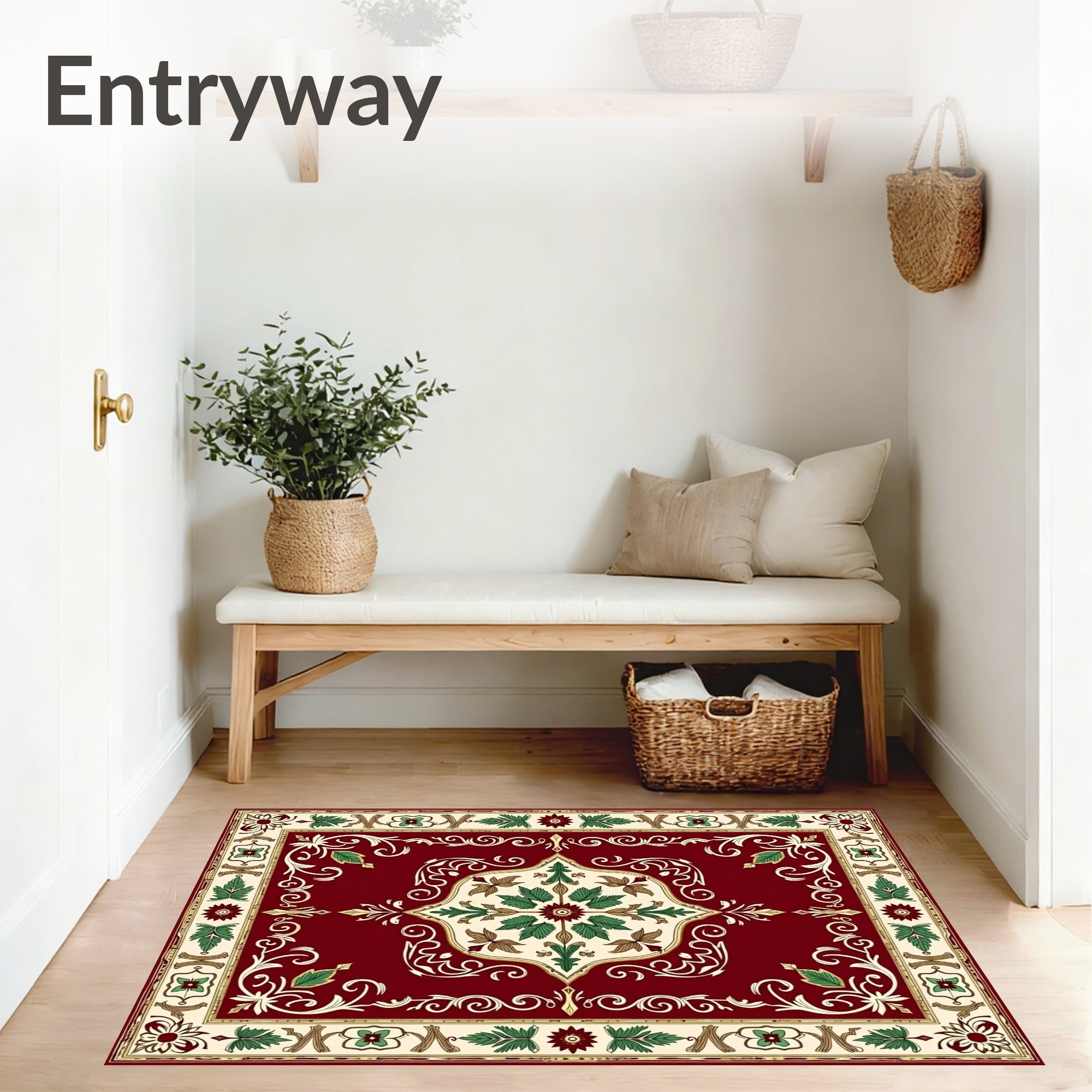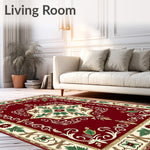 Ultra Soft Area Rug, Non Slip, Stain Resistant, Washable Area Rugs for Living Room, Bedroom, Victorian Scroll Damask with Whimsical Winter Pinecone Flourish(Burgundy) Overview:
