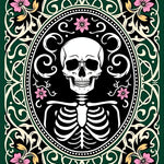Victorian Skeleton Cameo with Interlocking Floral Scrolls(Green)