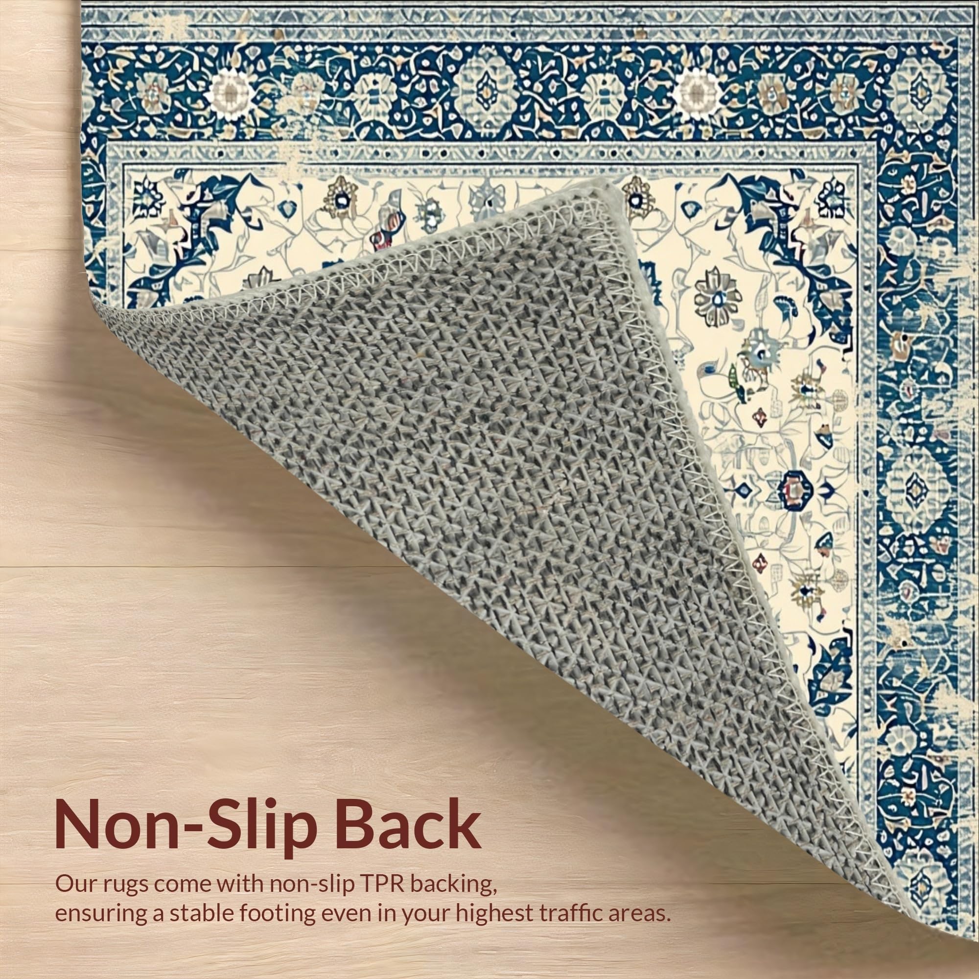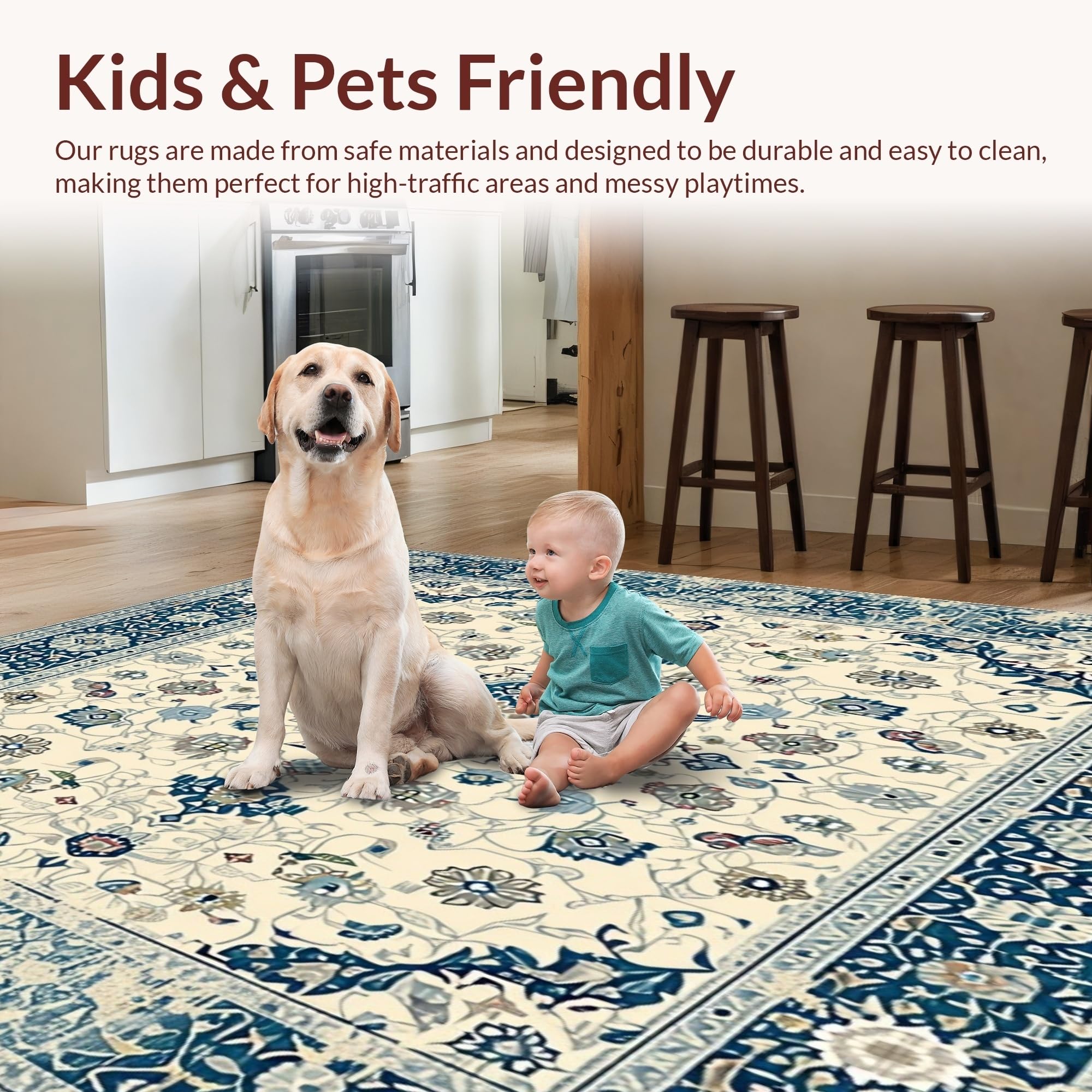 Ultra Soft Area Rug, Non Slip, Stain Resistant, Washable Area Rugs for Living Room, Bedroom, Vintage Boho Area With Artisan Medallion Design For Elegant Homes(Beige) Overview: