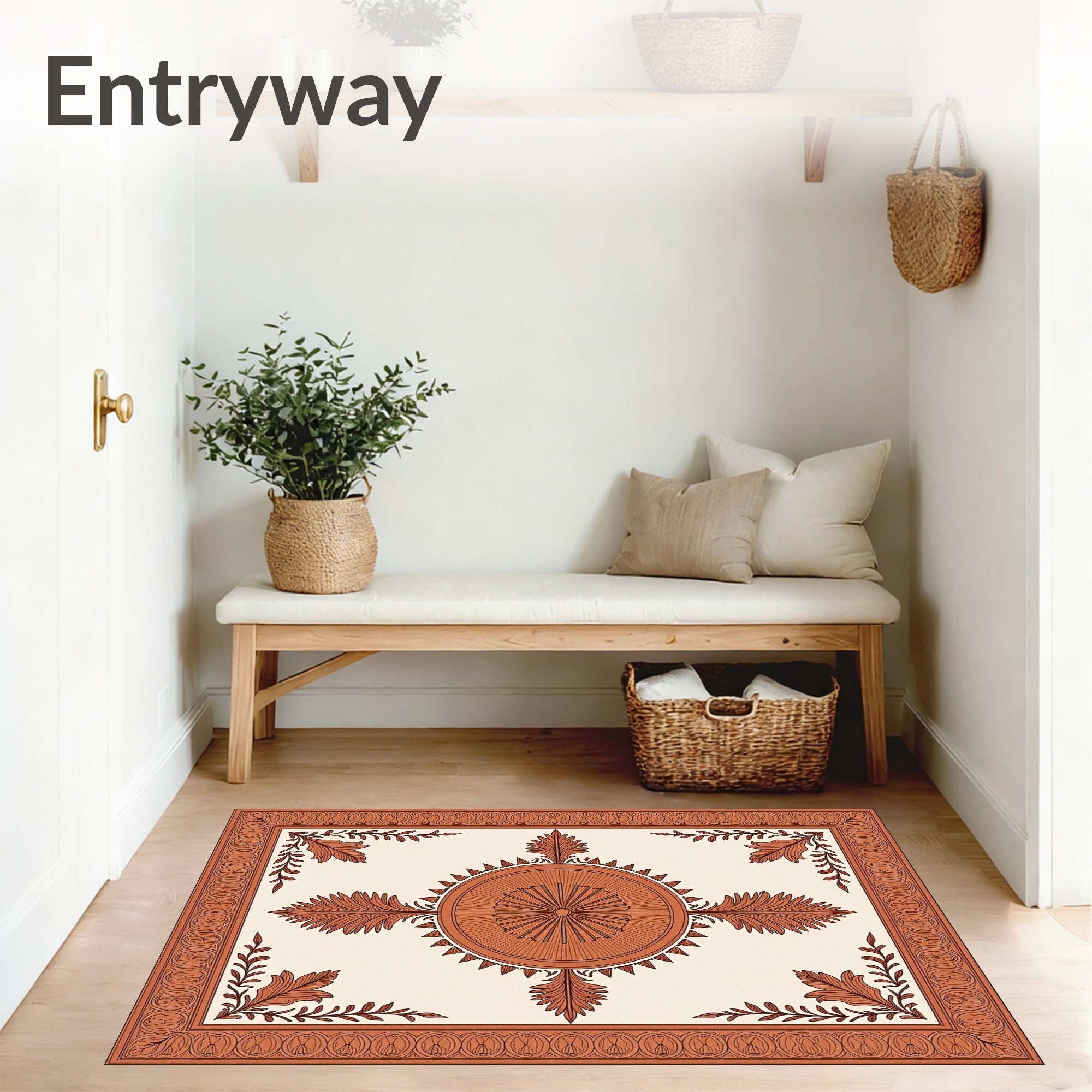 Flatwoven High Traffic Area Rug, Vintage Boho Faded Paisley Motif Neutral Design, Non Slip, Stain Resistant, Washable Area Rugs for Living Room, Bedroom (Brown) Overview: