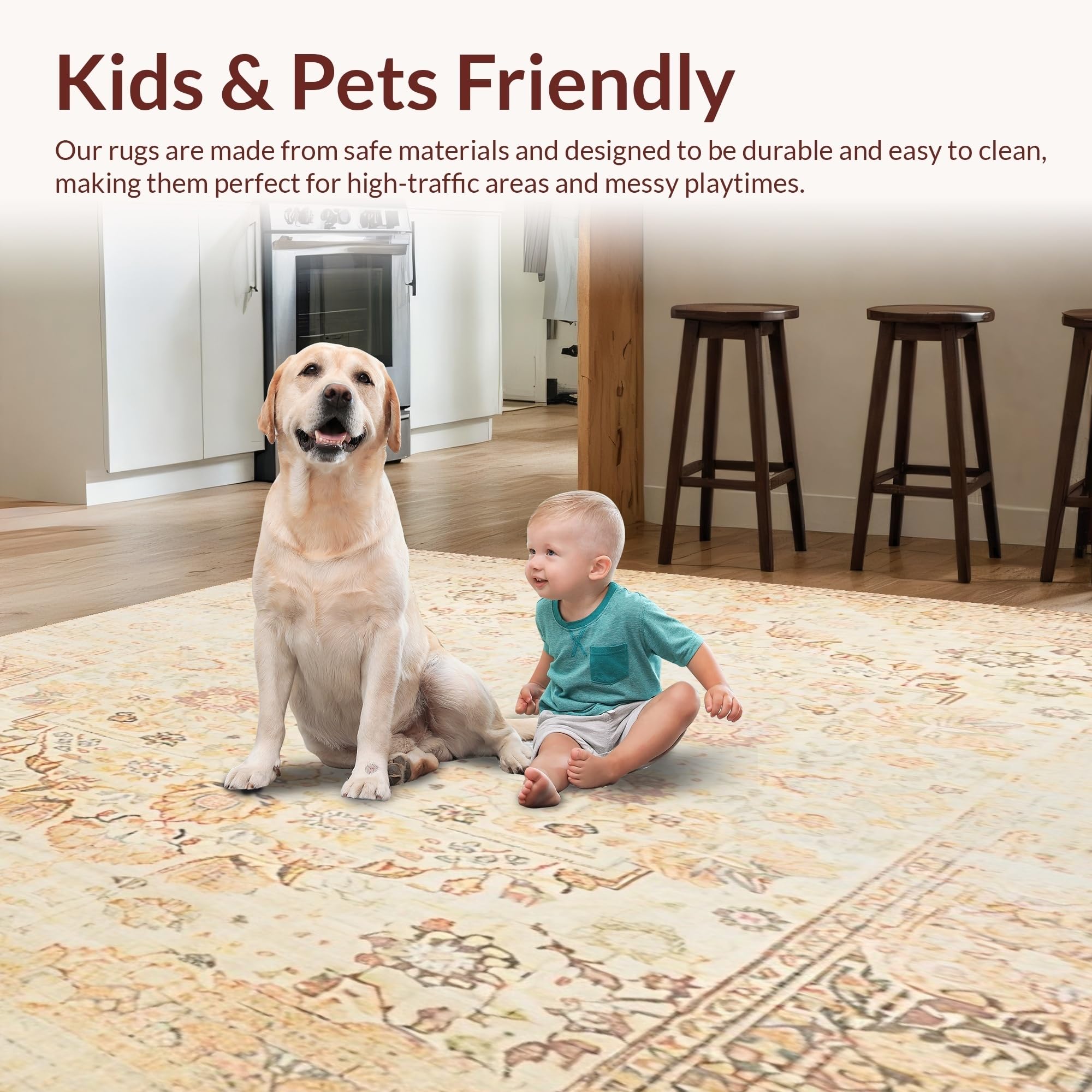 Ultra Soft Area Rug, Non Slip, Stain Resistant, Washable Area Rugs for Living Room, Bedroom, Vintage Boho Runner Non Slip Long for Hallways Entryway(Beige) Overview: