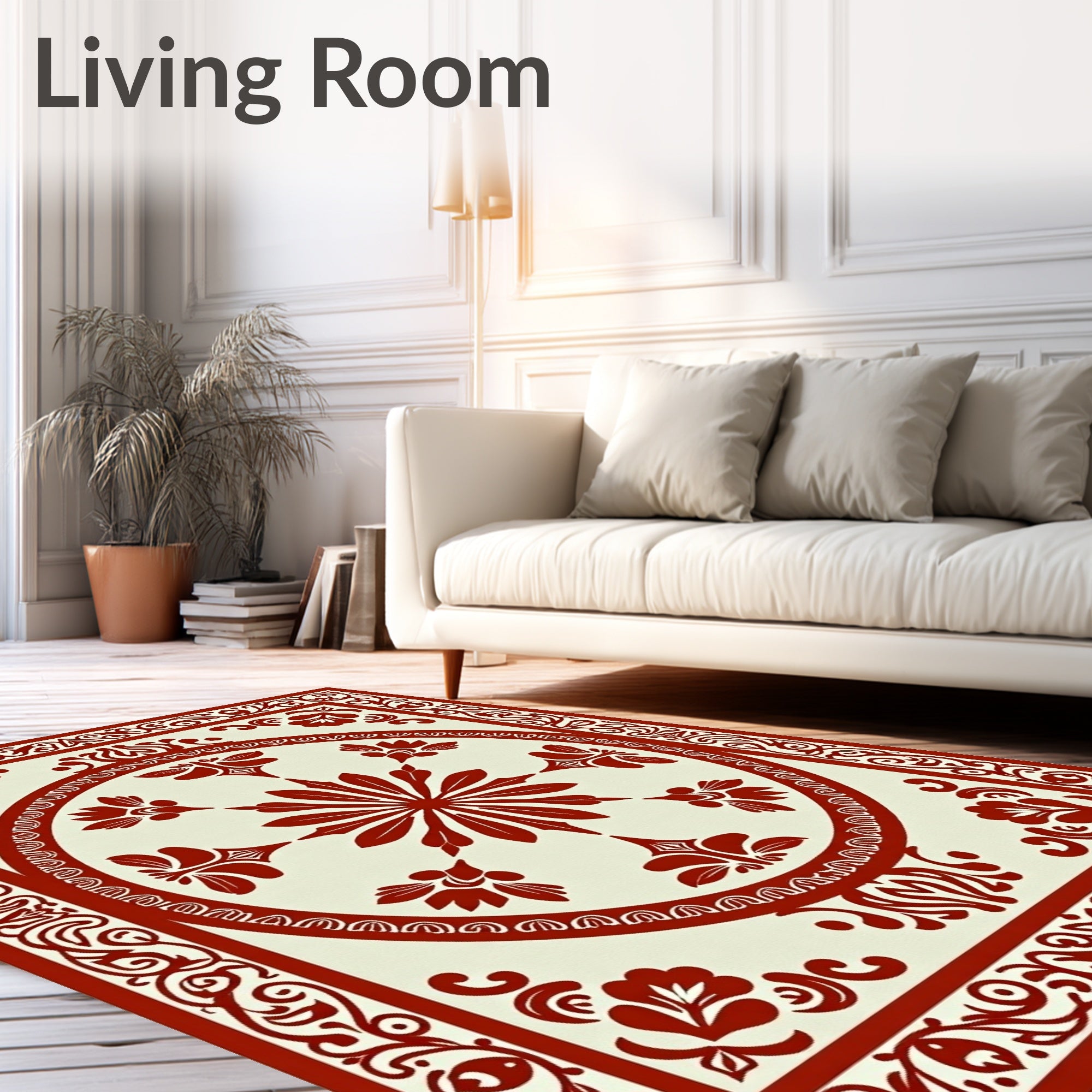 Ultra Soft Area Rug, Non Slip, Stain Resistant, Washable Area Rugs for Living Room, Bedroom, Vintage Botanica Interlocking Arabesque Scrollwork Motif(Beige) Overview: