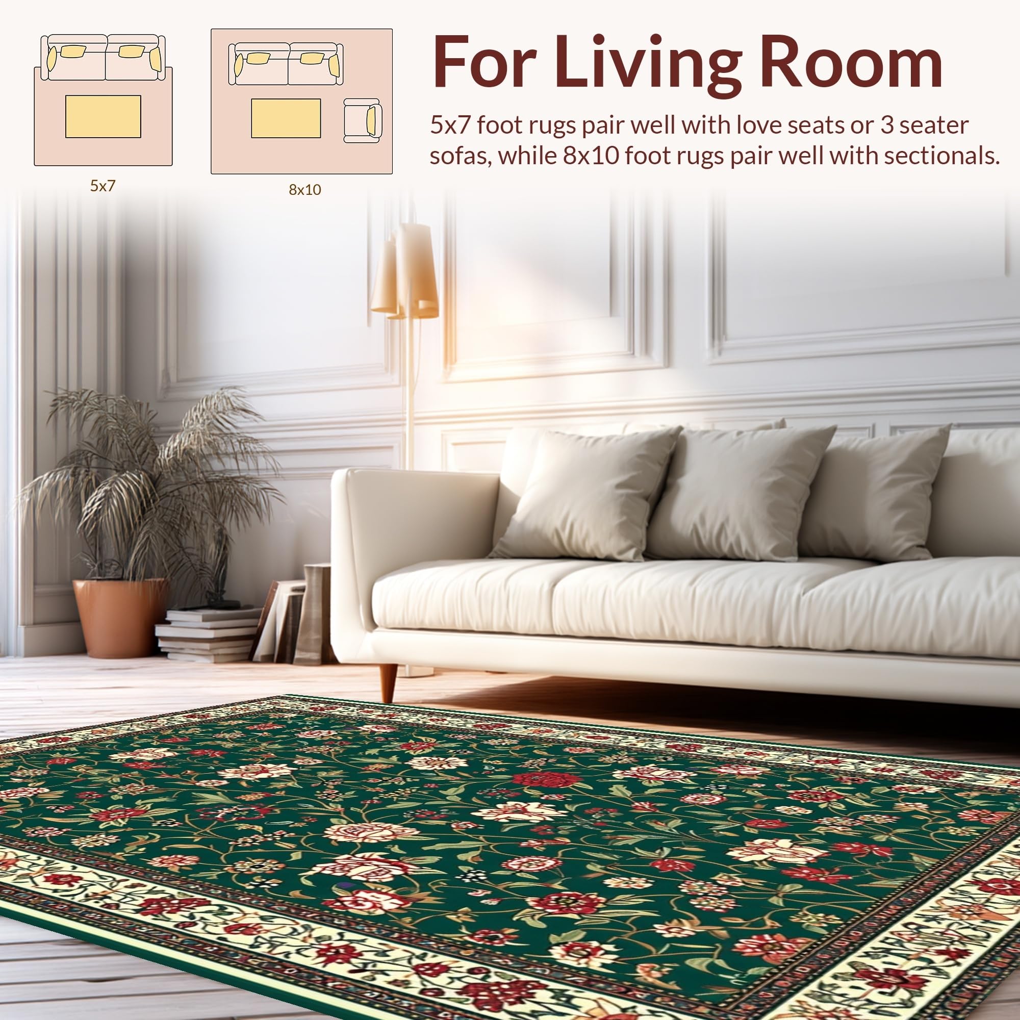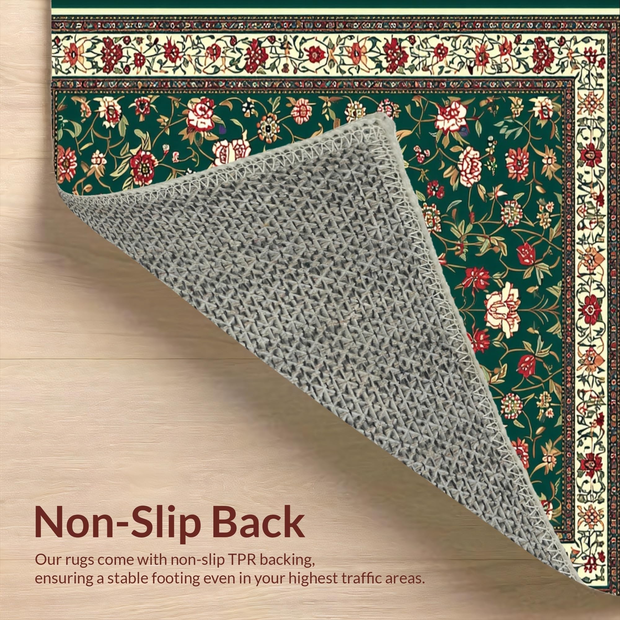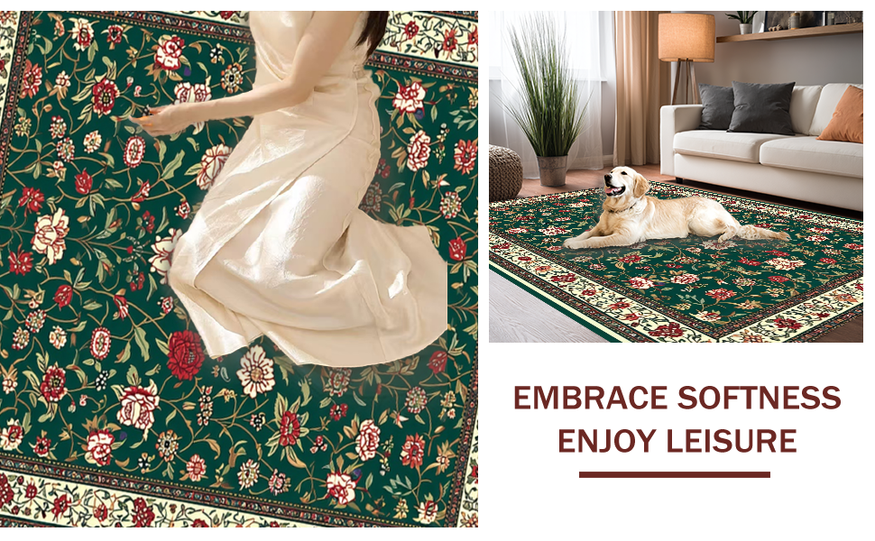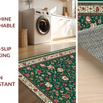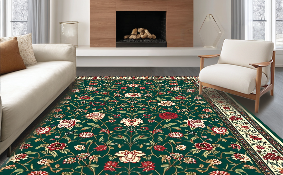 Ultra Soft Area Rug, Non Slip, Stain Resistant, Washable Area Rugs for Living Room, Bedroom, Vintage Botanical Flourish Motif(Green) Overview: