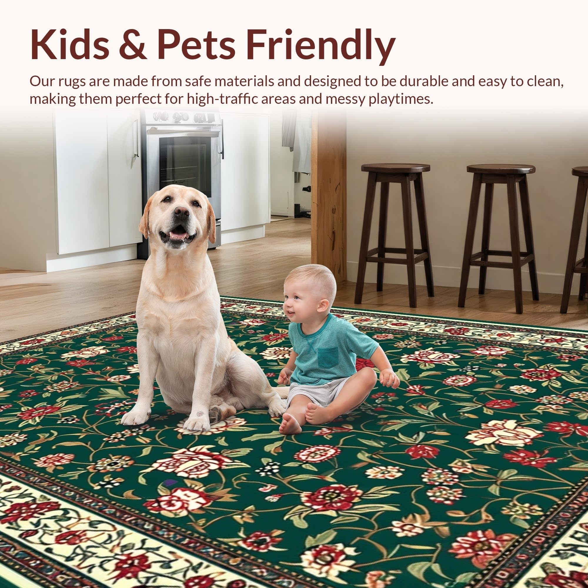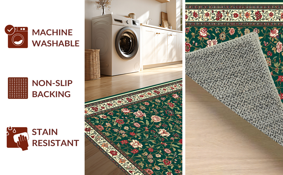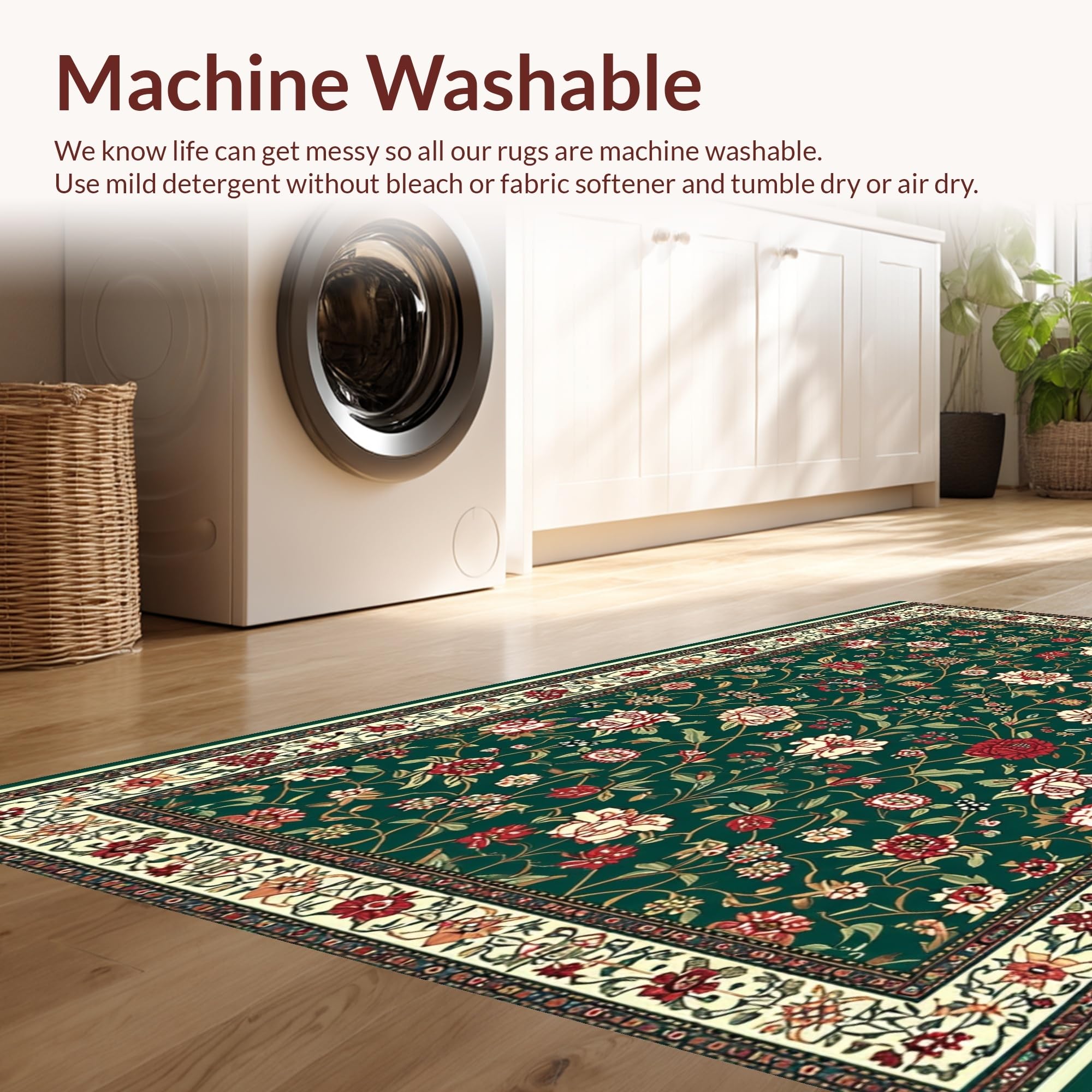 Ultra Soft Area Rug, Non Slip, Stain Resistant, Washable Area Rugs for Living Room, Bedroom, Vintage Botanical Flourish Motif(Green) Overview: