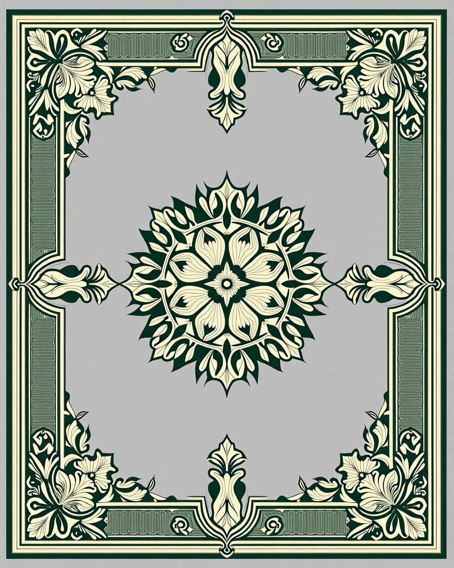 Vintage Botanical Medallion with Ivy Leaf Border Details(Green)