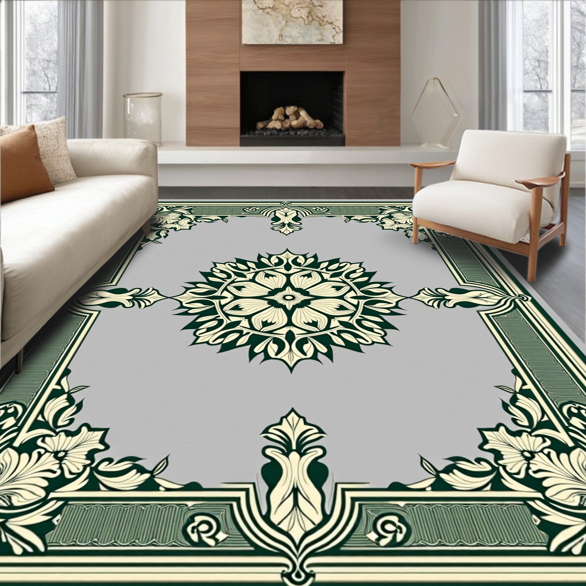 Ultra Soft Area Rug, Non Slip, Stain Resistant, Washable Area Rugs for Living Room, Bedroom, Vintage Botanical Medallion with Ivy Leaf Border Details(Green) Overview: