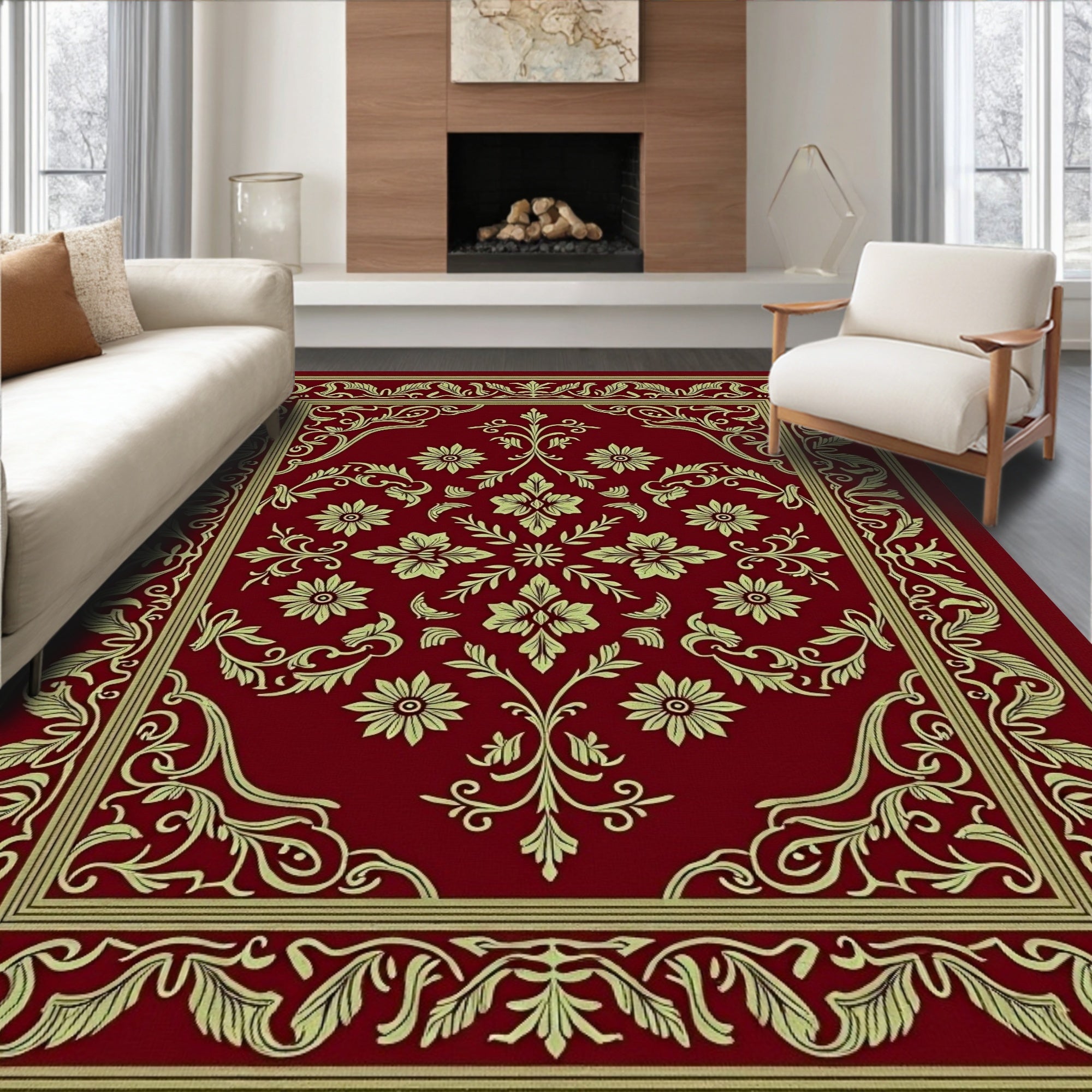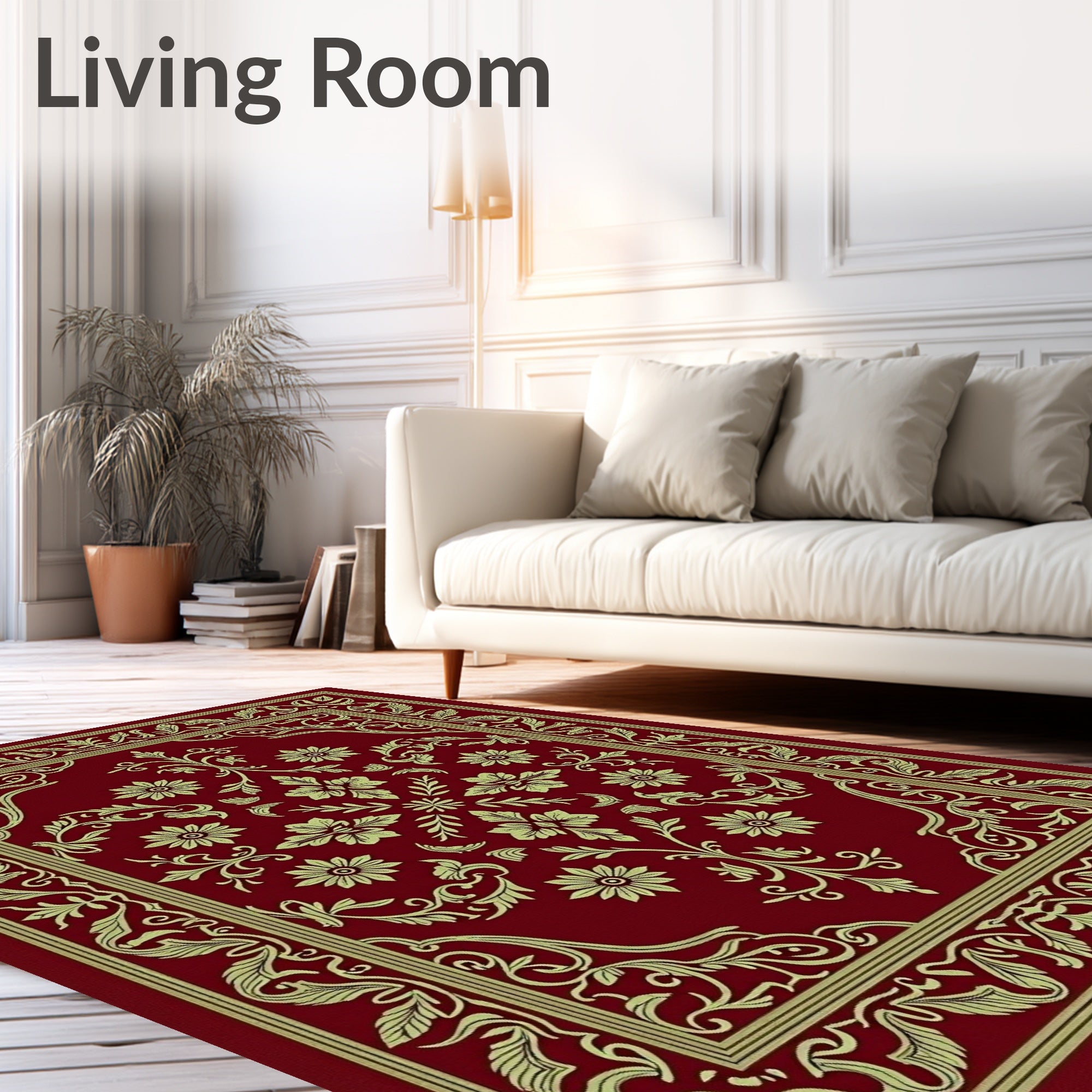 Ultra Soft Area Rug, Non Slip, Stain Resistant, Washable Area Rugs for Living Room, Bedroom, Vintage Botanical Whorl Featuring Leafy Interlocking(Red) Overview: