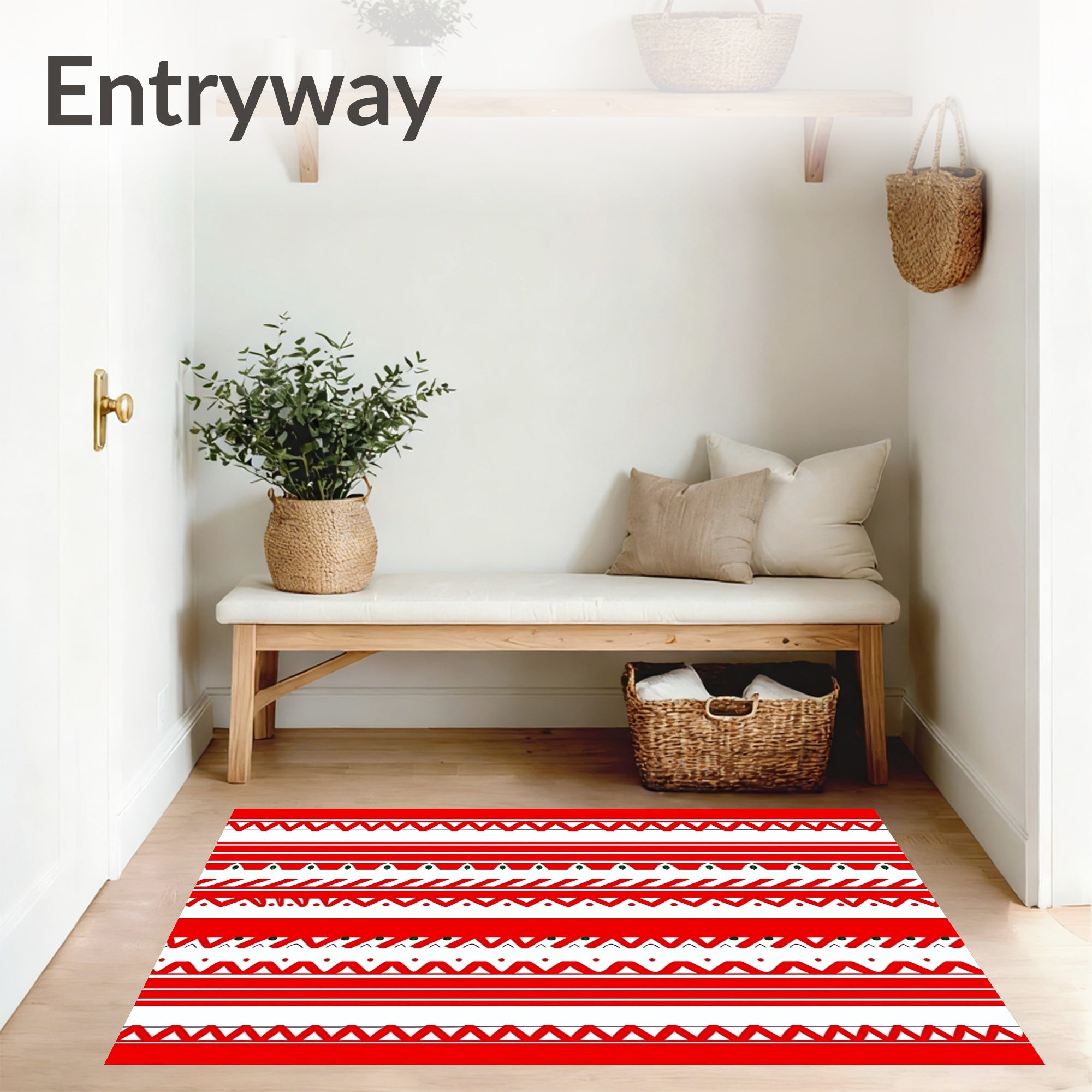 Ultra Soft Area Rug, Non Slip, Stain Resistant, Washable Area Rugs for Living Room, Bedroom, Vintage Cane Stripe with Ribbon Bow Details(Red) Overview: