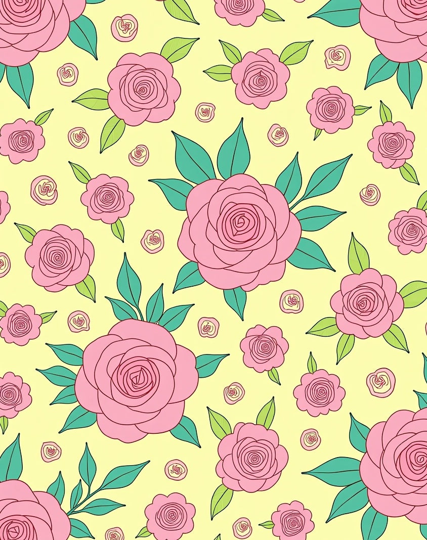 Vintage Cottage Rose Medley with Subtle Scrollwork and Petite Blossom Clusters(Pink)