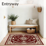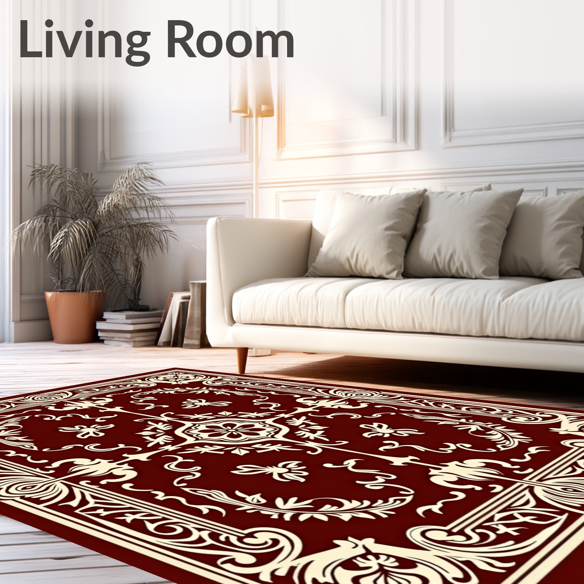 Ultra Soft Area Rug, Non Slip, Stain Resistant, Washable Area Rugs for Living Room, Bedroom, Vintage Damask Baroque Ornamental Scroll Design(Maroon) Overview: