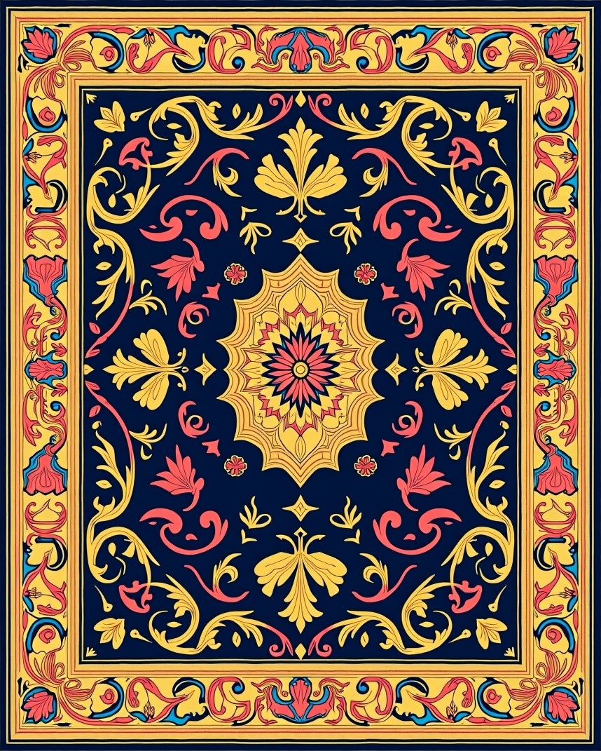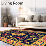 Ultra Soft Area Rug, Non Slip, Stain Resistant, Washable Area Rugs for Living Room, Bedroom, Vintage Damask Flourish with Central Motif(Blue) Overview: