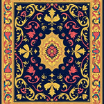 Vintage Damask Flourish with Central Motif(Blue)