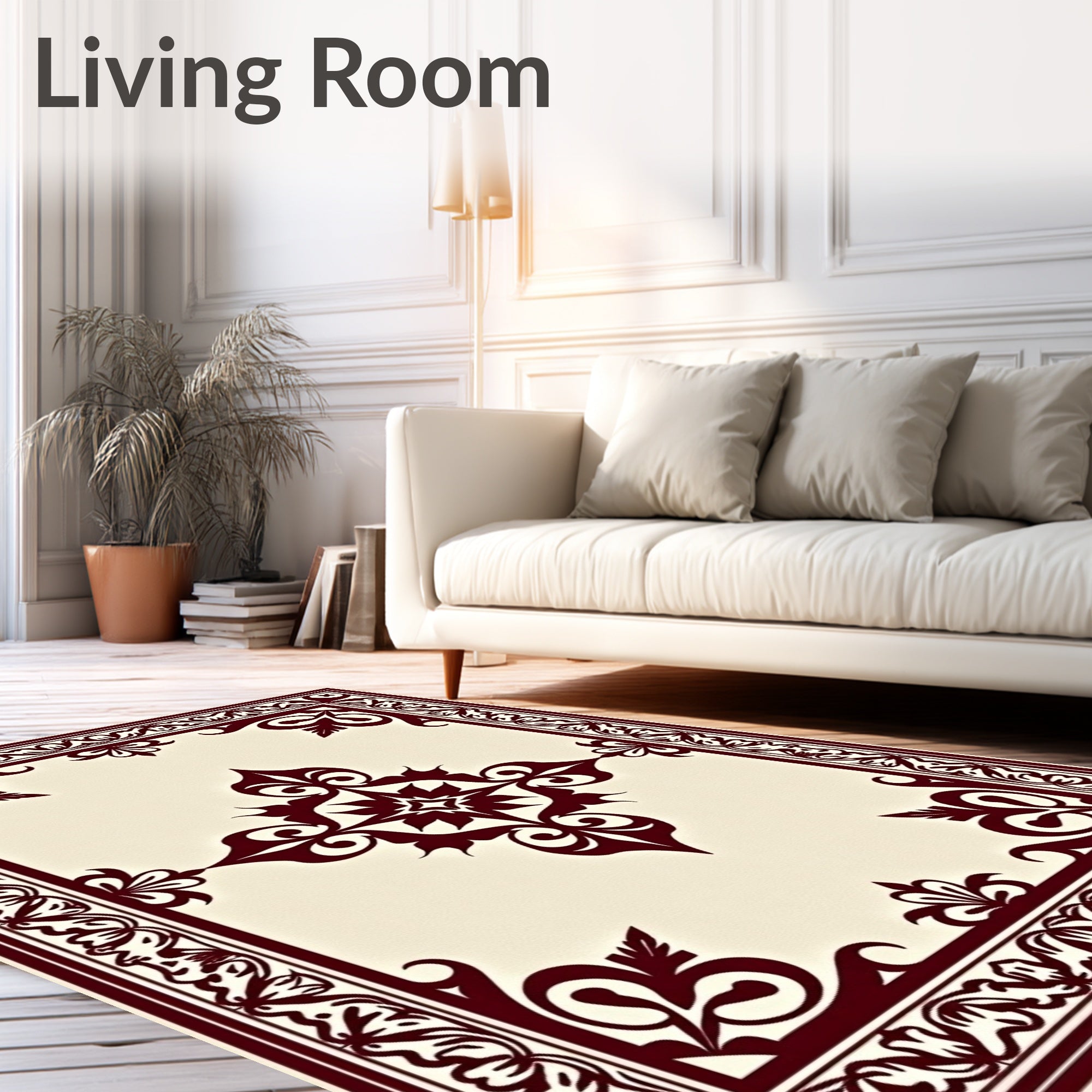 Ultra Soft Area Rug, Non Slip, Stain Resistant, Washable Area Rugs for Living Room, Bedroom, Vintage Damask Non Slip(Beige) Overview:
