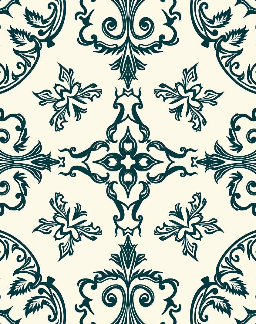 Vintage Damask Scroll with Paisley Accent Details(Ivory)