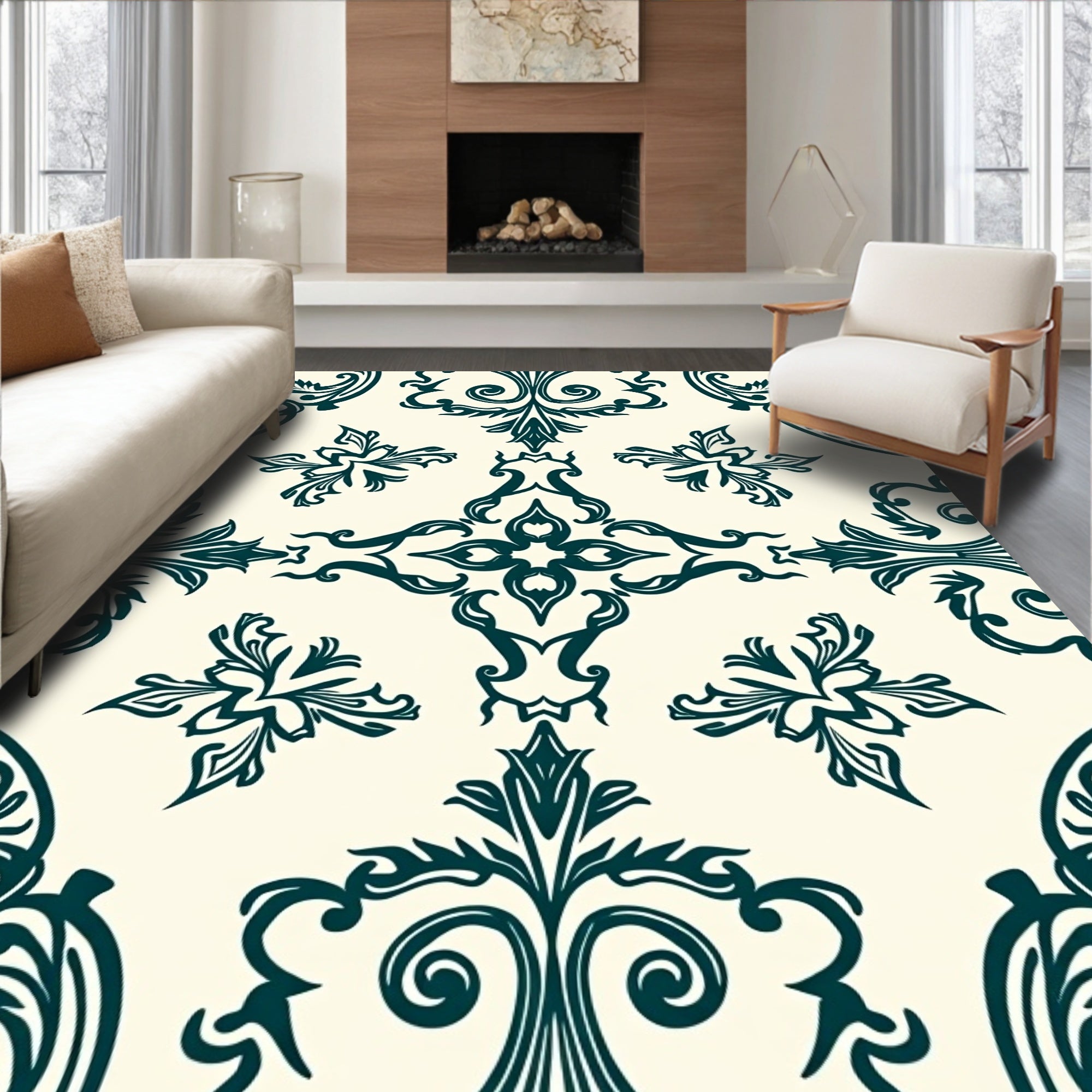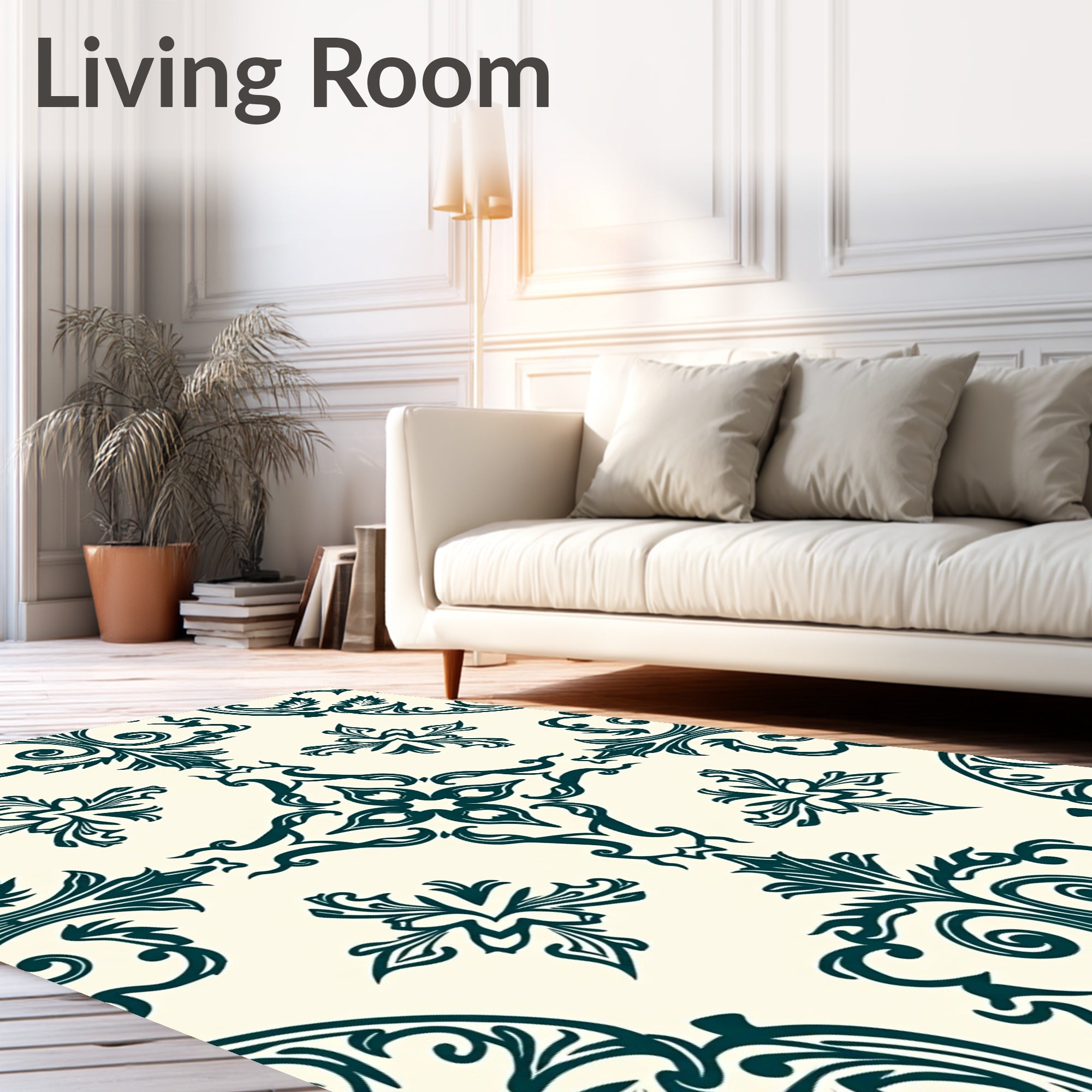 Ultra Soft Area Rug, Non Slip, Stain Resistant, Washable Area Rugs for Living Room, Bedroom, Vintage Damask Scroll with Paisley Accent Details(Ivory) Overview:
