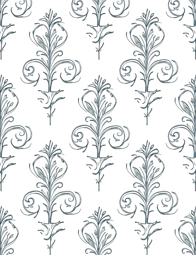 Vintage Damask Scrollwork with Botanical Vine Detailing(Blue)