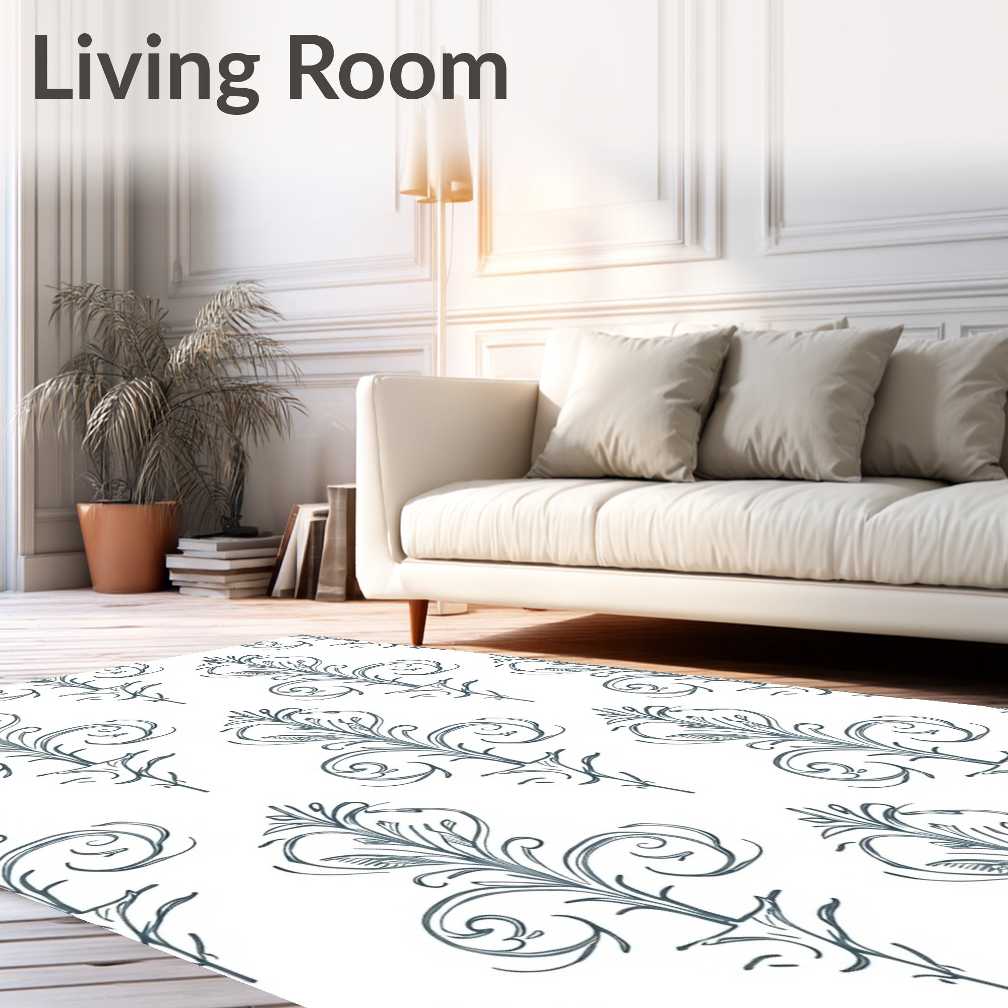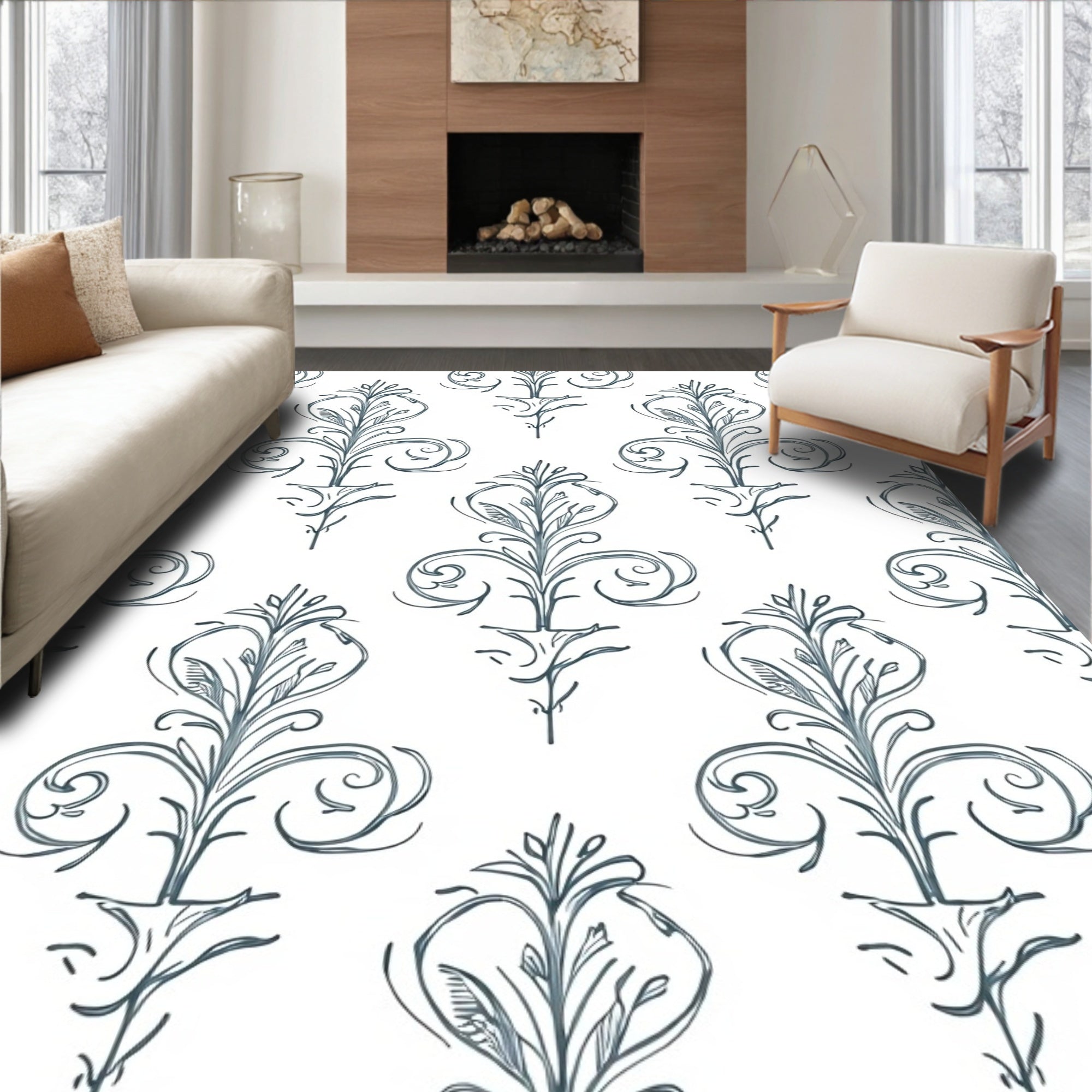 Ultra Soft Area Rug, Non Slip, Stain Resistant, Washable Area Rugs for Living Room, Bedroom, Vintage Damask Scrollwork with Botanical Vine Detailing(Blue) Overview: