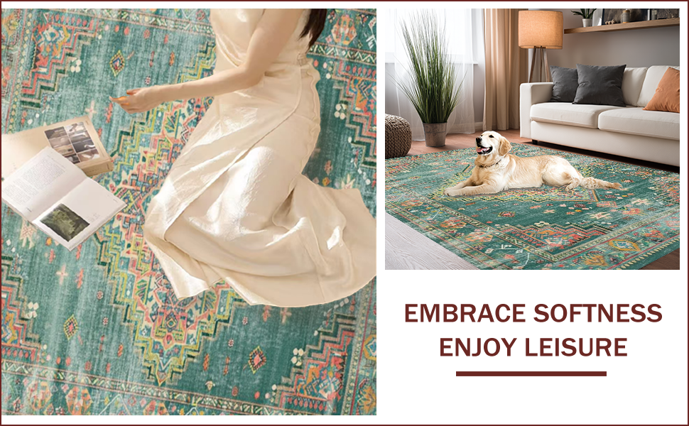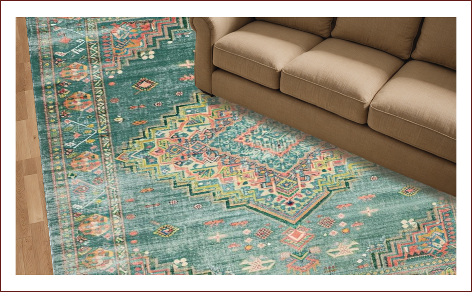 Ultra Soft Area Rug, Non Slip, Stain Resistant, Washable Area Rugs for Living Room, Bedroom, Vintage Distressed Earthy Hues(Blue) Overview: