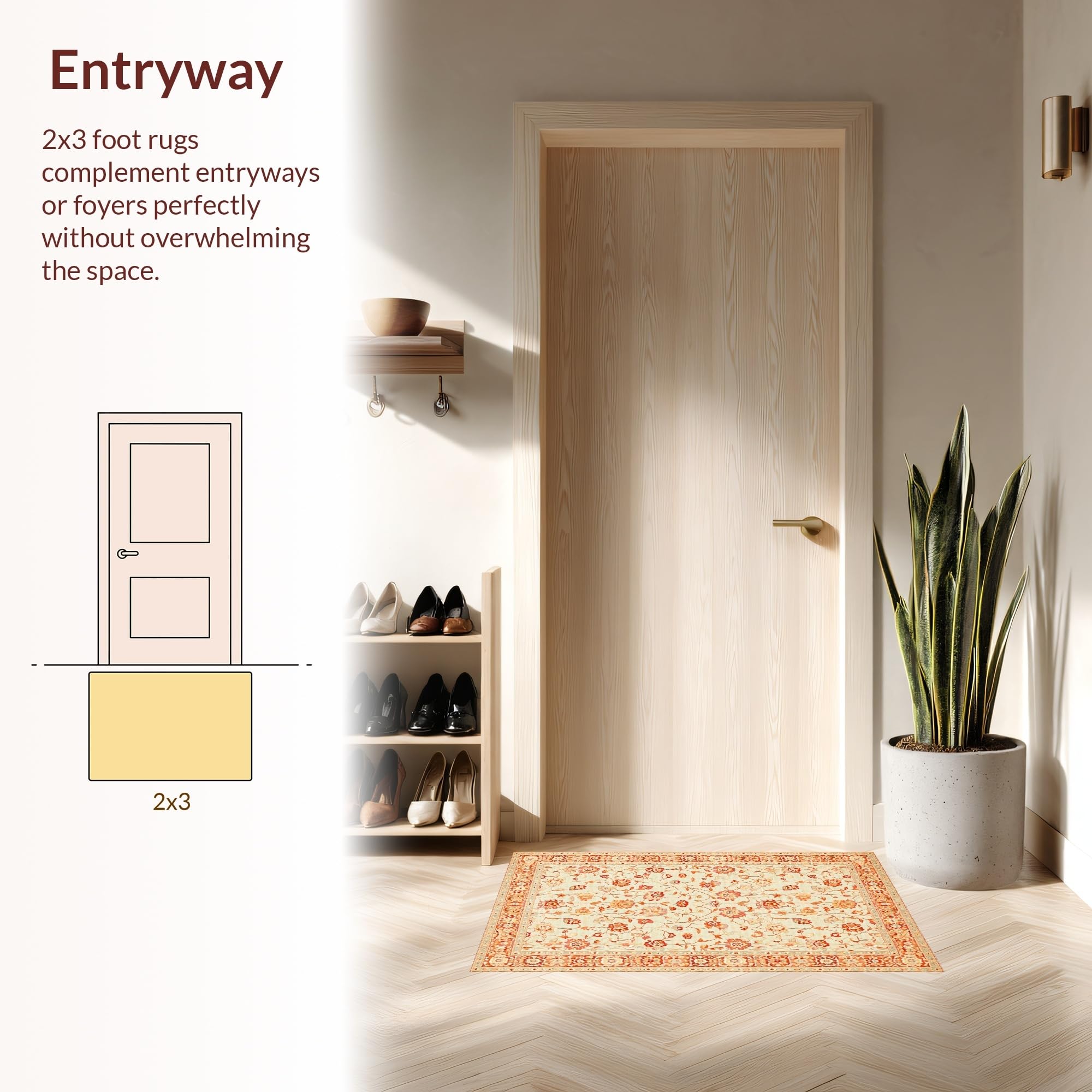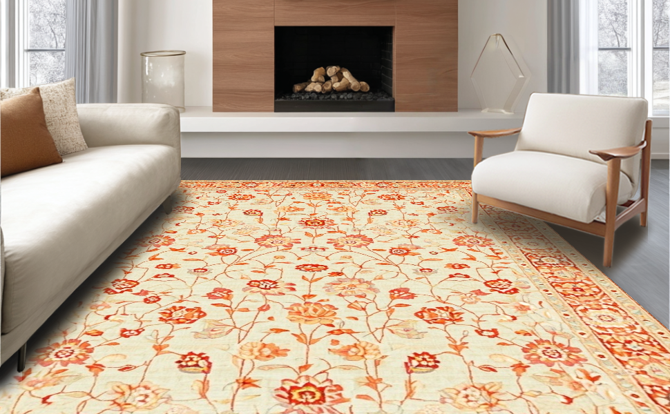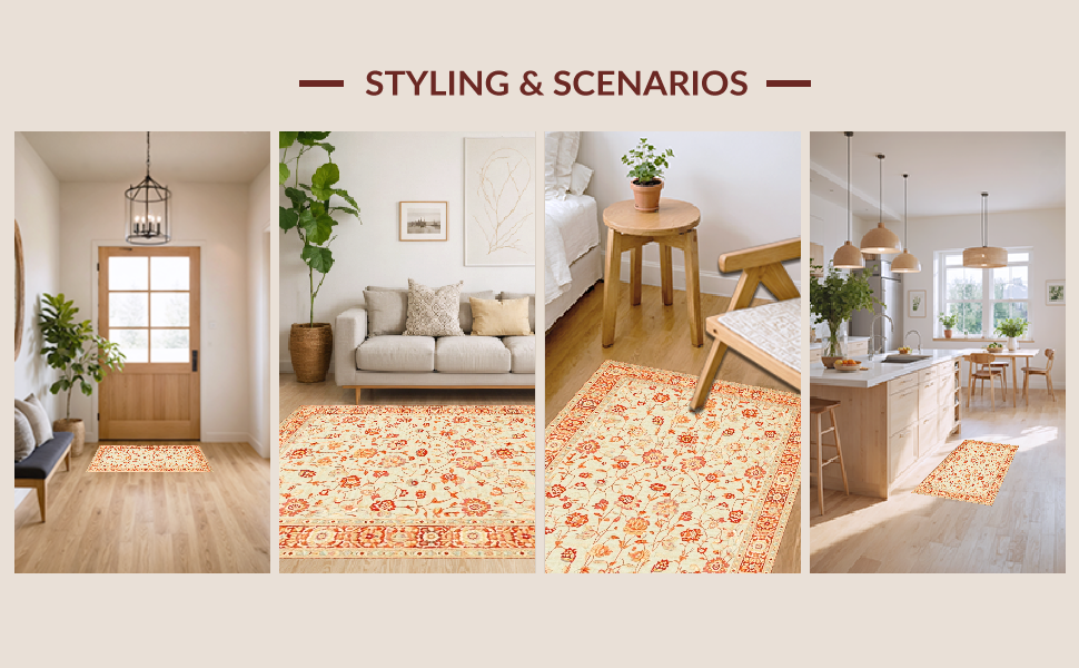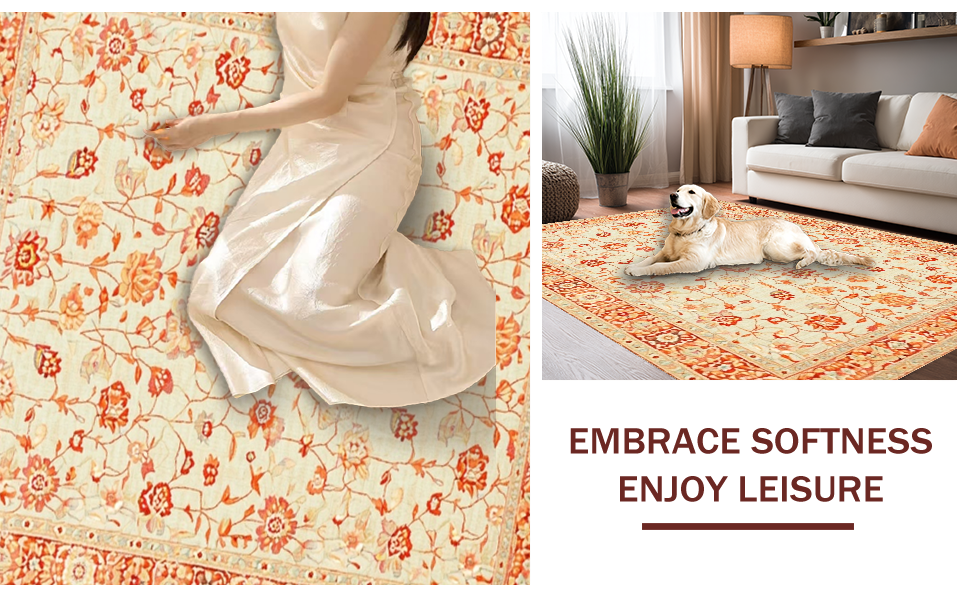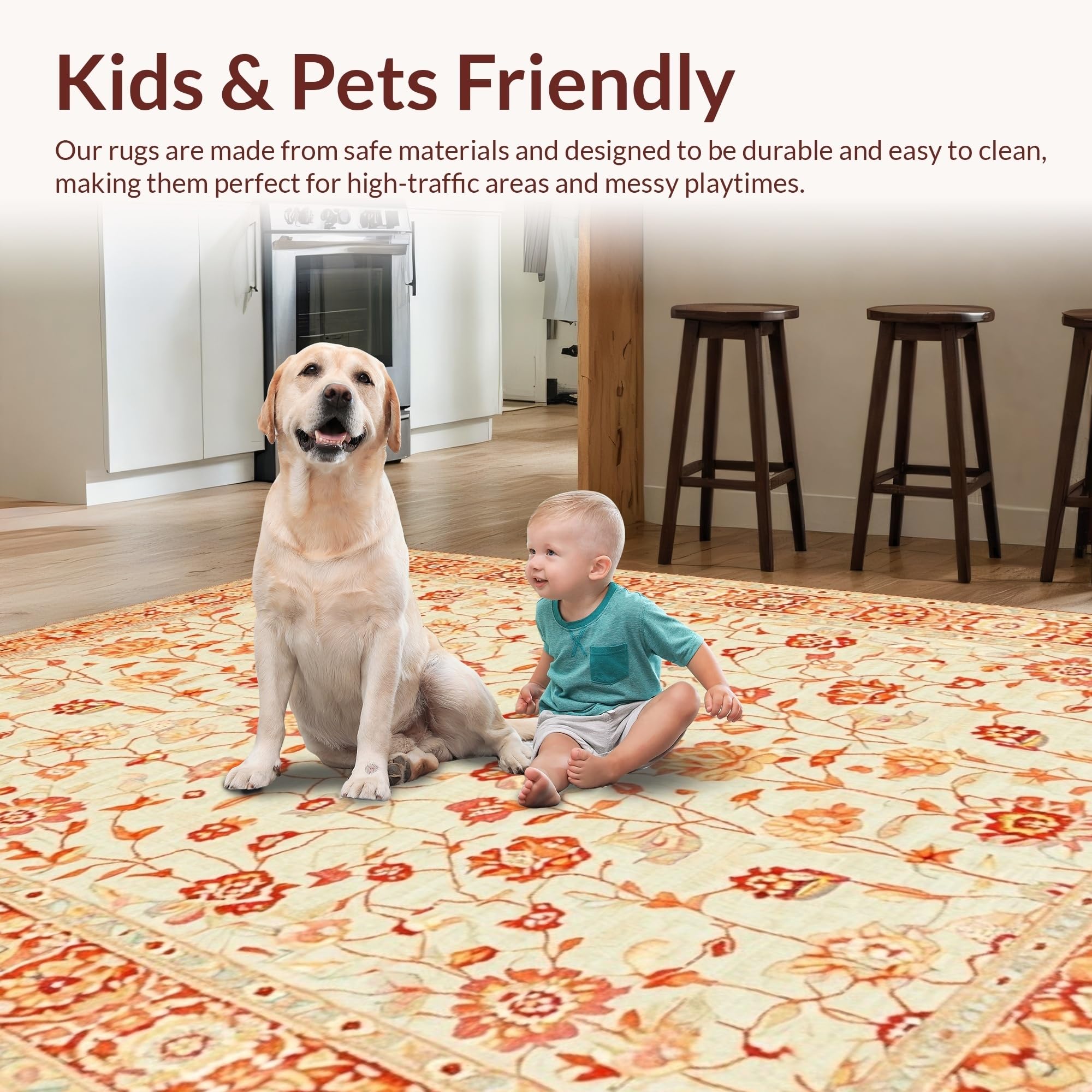 Ultra Soft Area Rug, Non Slip, Stain Resistant, Washable Area Rugs for Living Room, Bedroom, Vintage Distressed Floral Design(Beige) Overview: