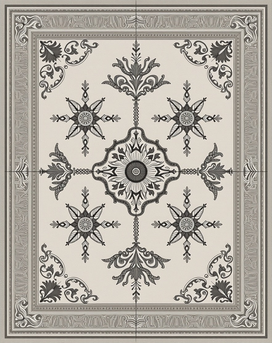 Vintage Distressed Medallion Floral Damask Elegant Heirloom(Beige)