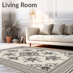 Flatwoven High Traffic Area Rug, Vintage Distressed Medallion Floral Damask Elegant Heirloom, Non Slip, Stain Resistant, Washable Area Rugs for Living Room, Bedroom (Beige) Overview:
