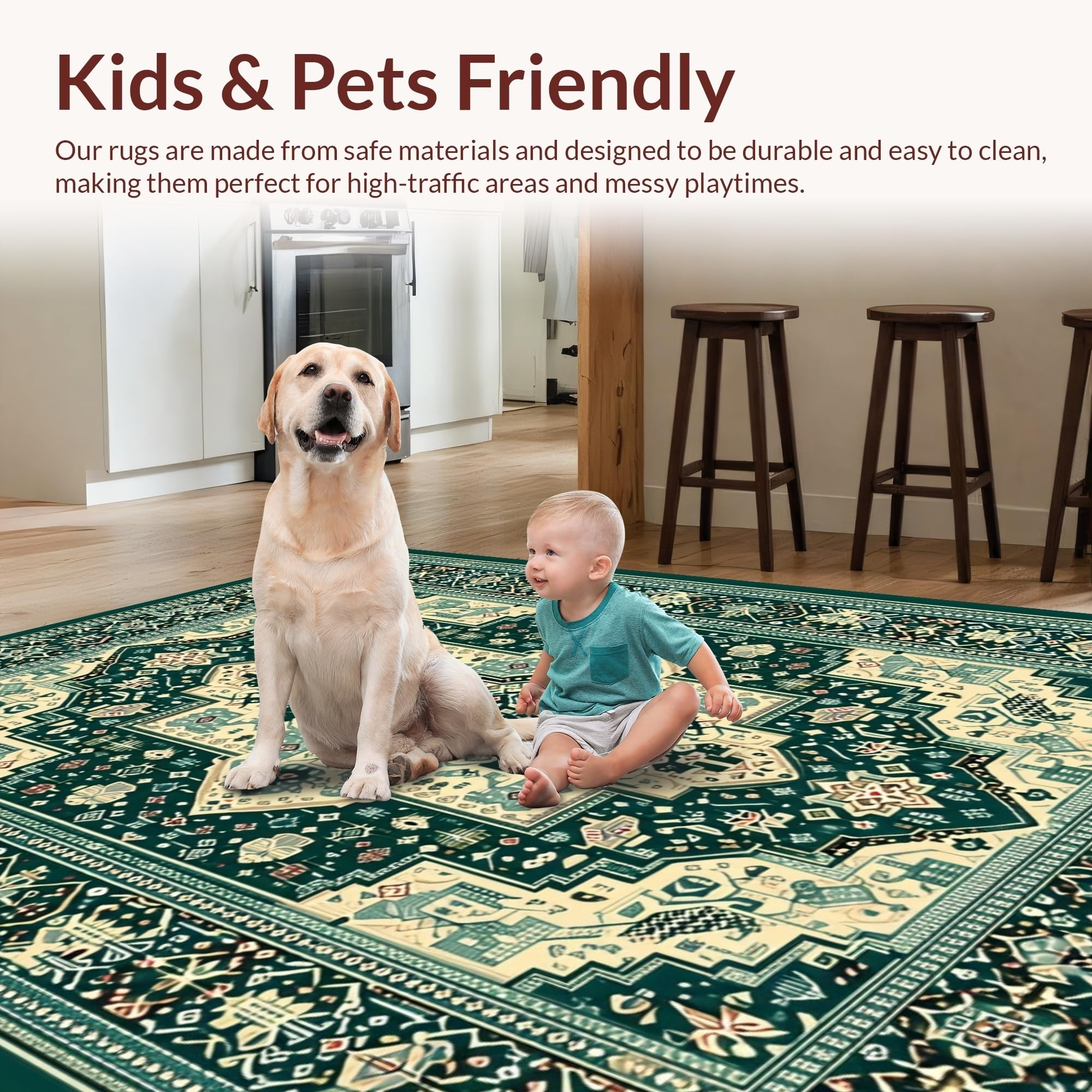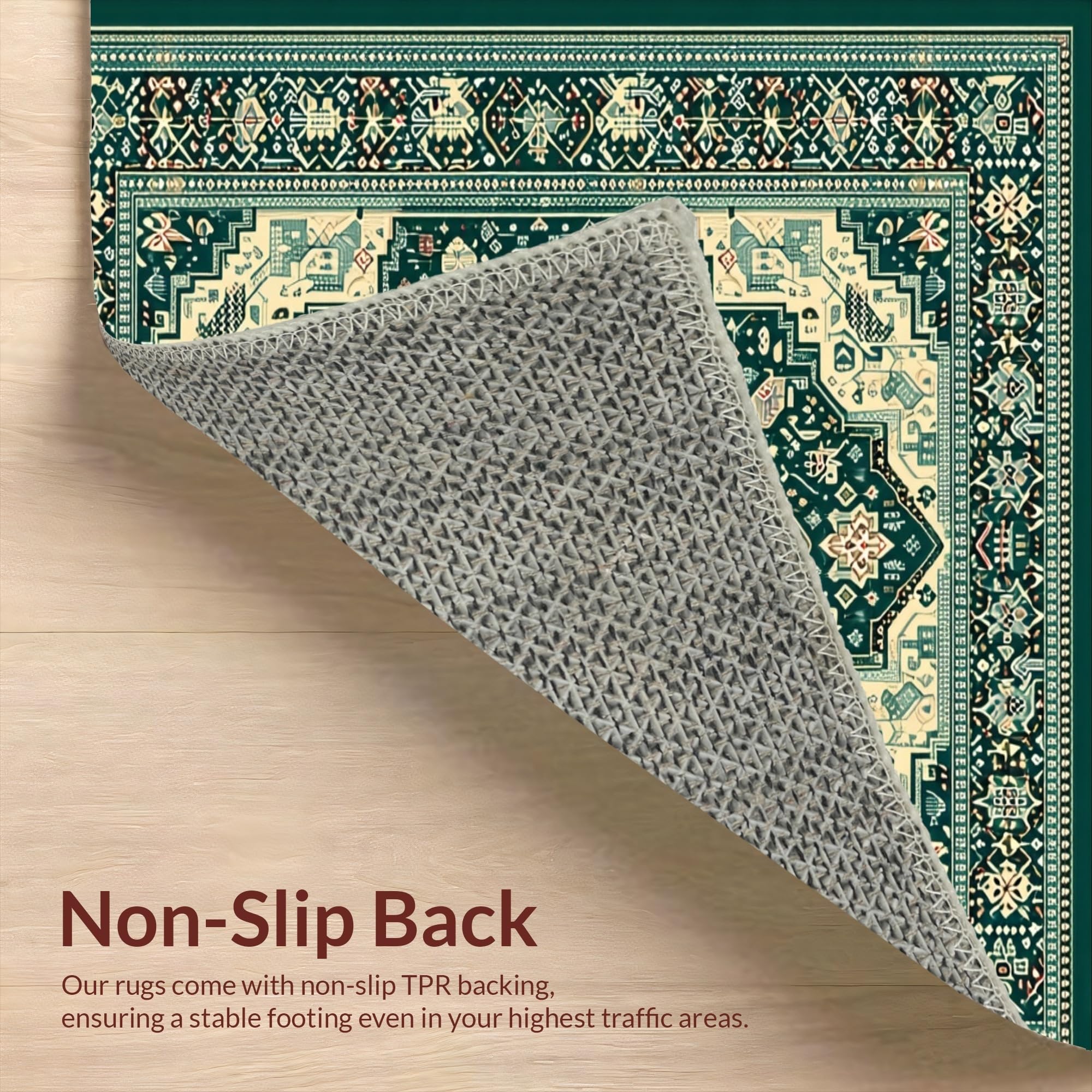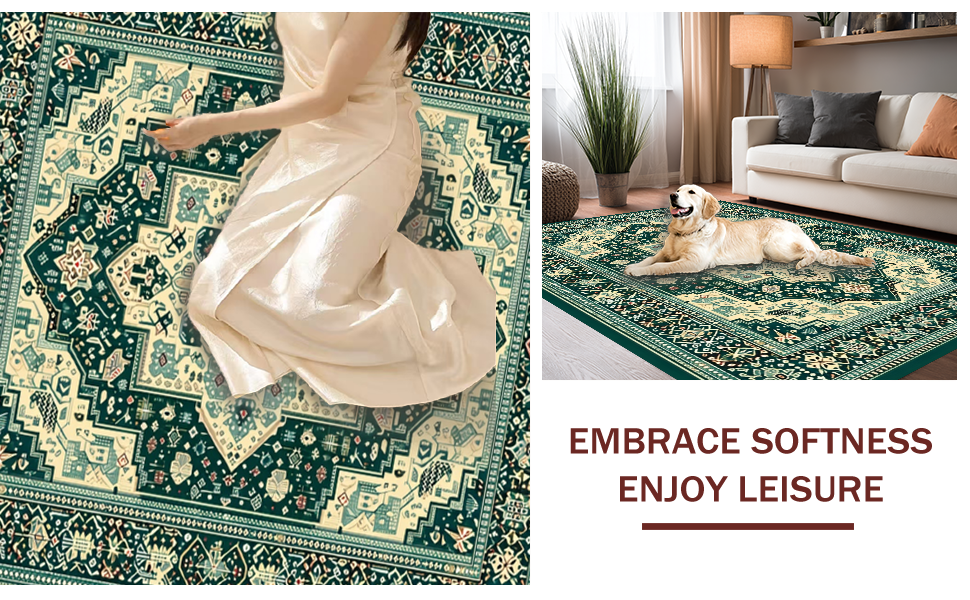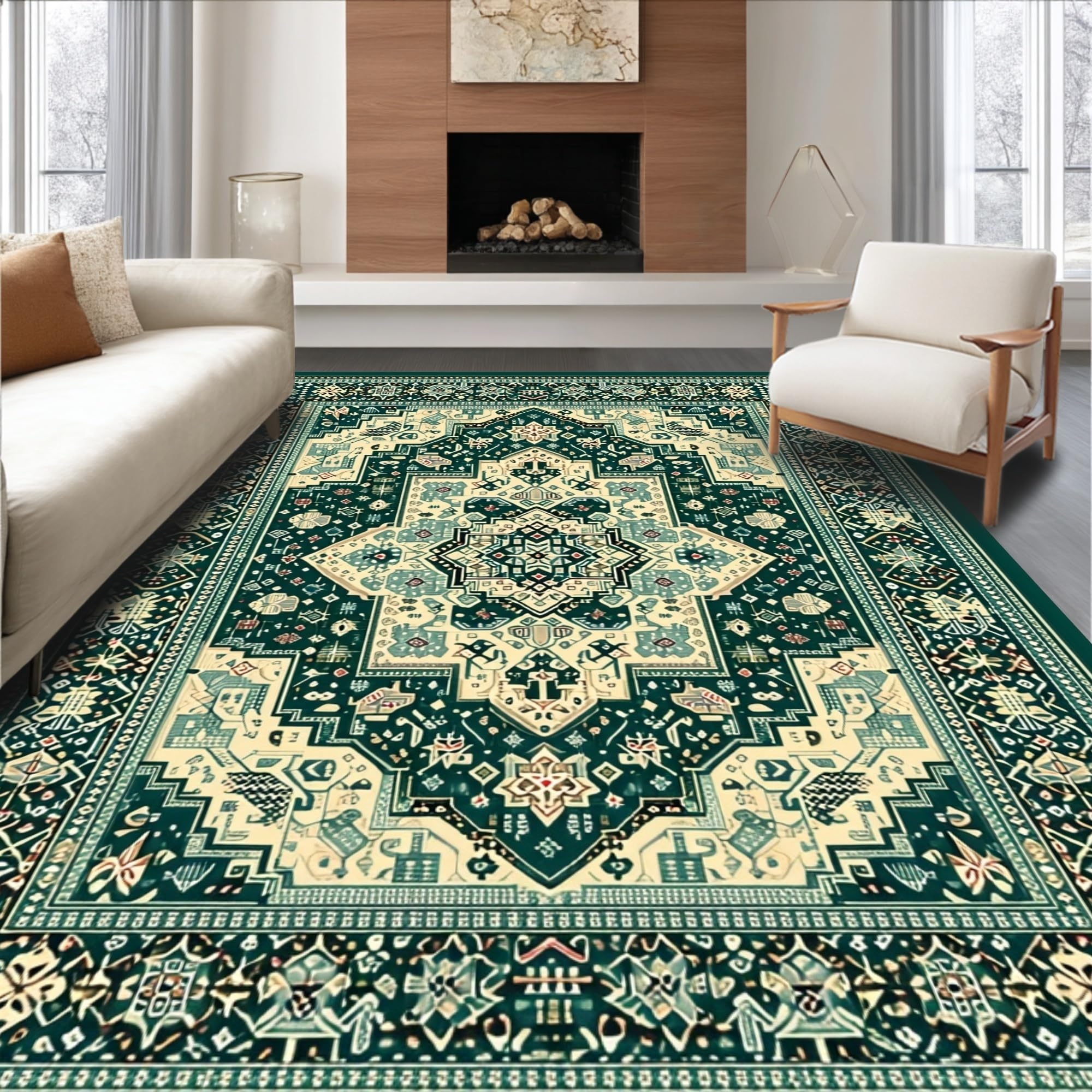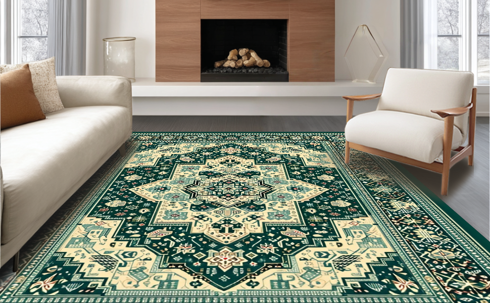 Ultra Soft Area Rug, Non Slip, Stain Resistant, Washable Area Rugs for Living Room, Bedroom, Vintage Earthy Geometric Motif(Blue) Overview:
