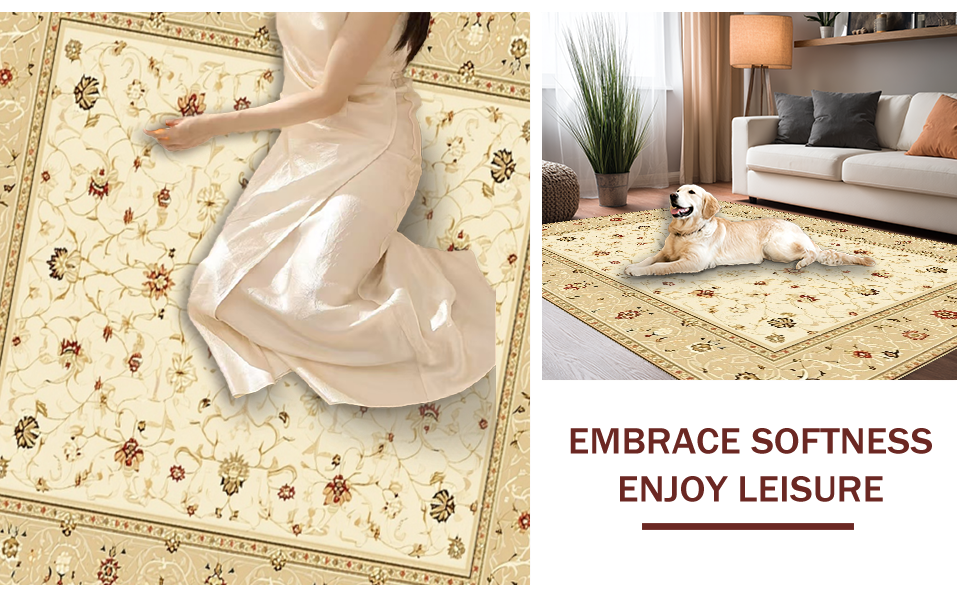 Ultra Soft Area Rug, Non Slip, Stain Resistant, Washable Area Rugs for Living Room, Bedroom, Vintage Earthy Trellis Motif(Beige) Overview: