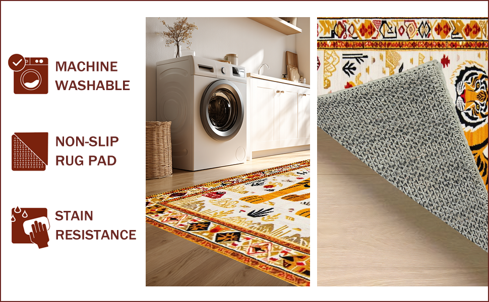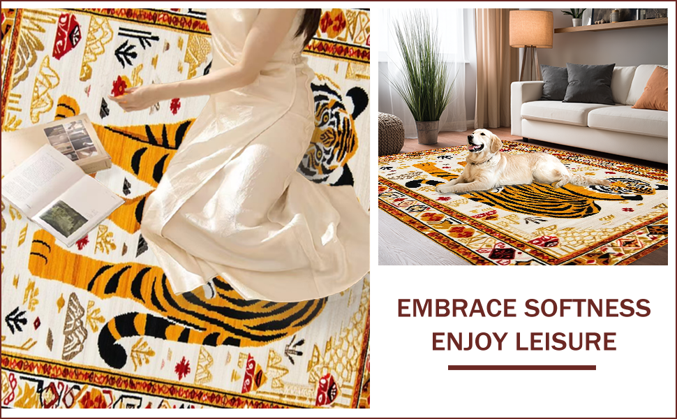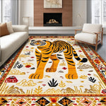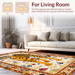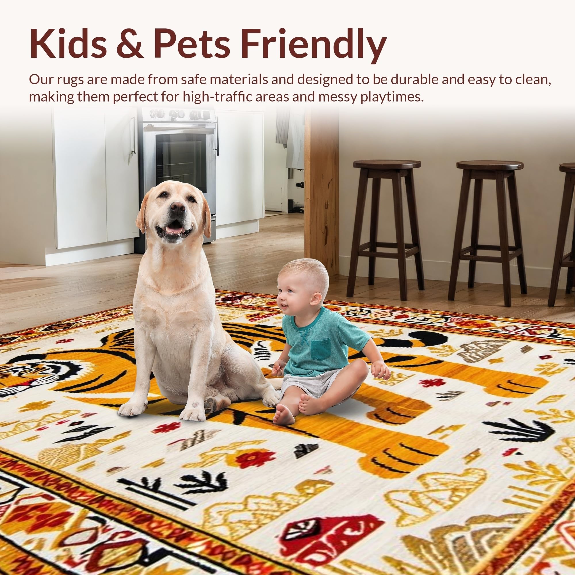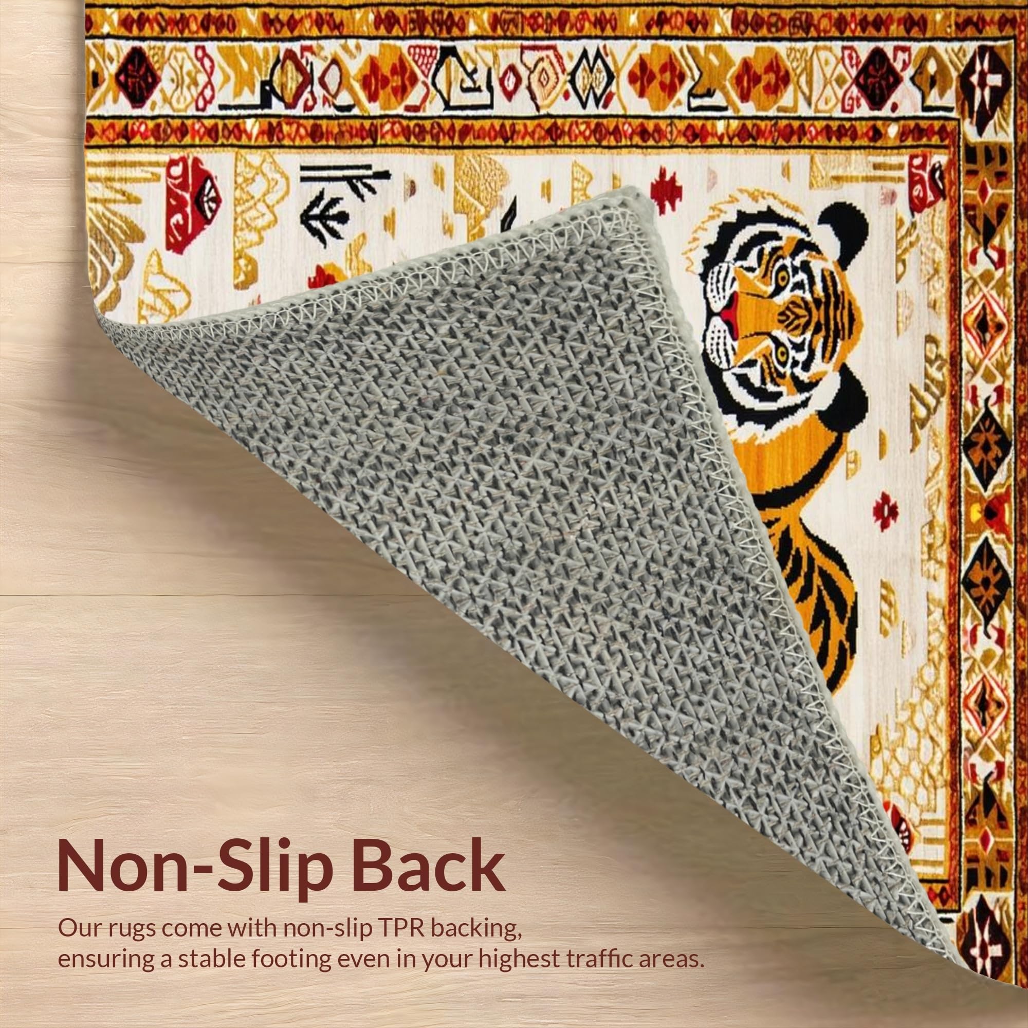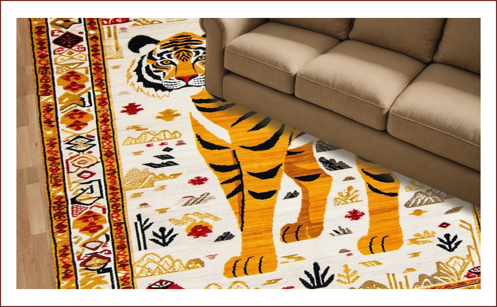 Ultra Soft Area Rug, Non Slip, Stain Resistant, Washable Area Rugs for Living Room, Bedroom, Vintage Ethnic Tiger Motif(Orange) Overview: