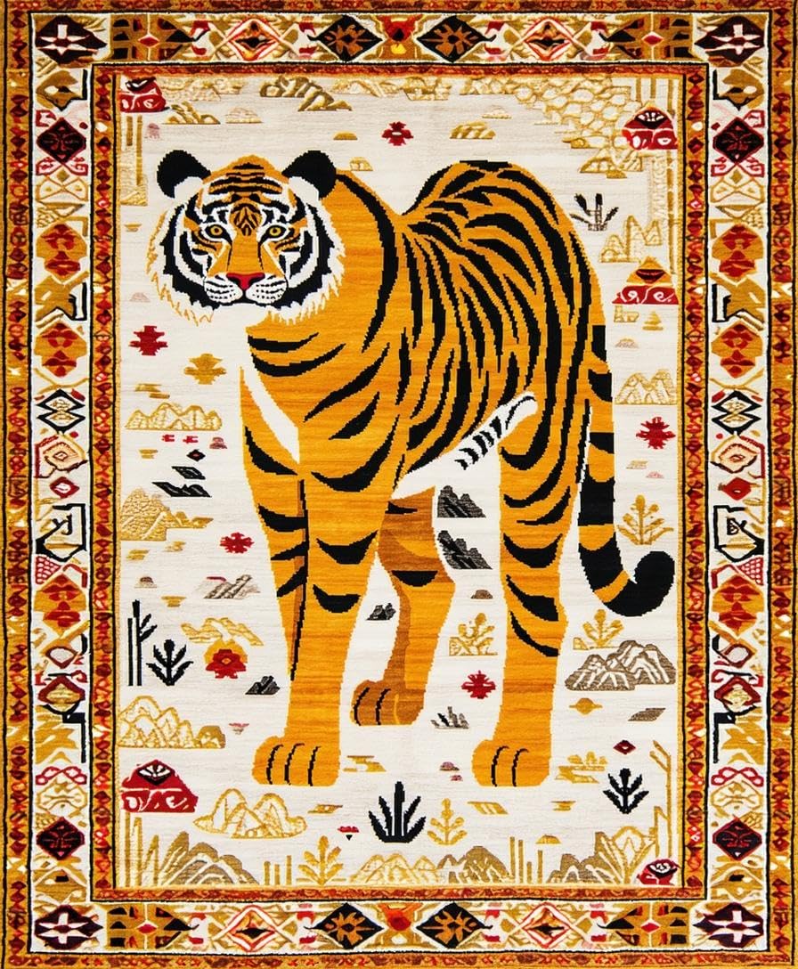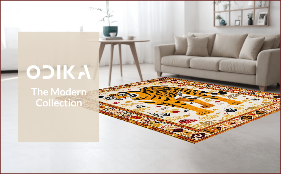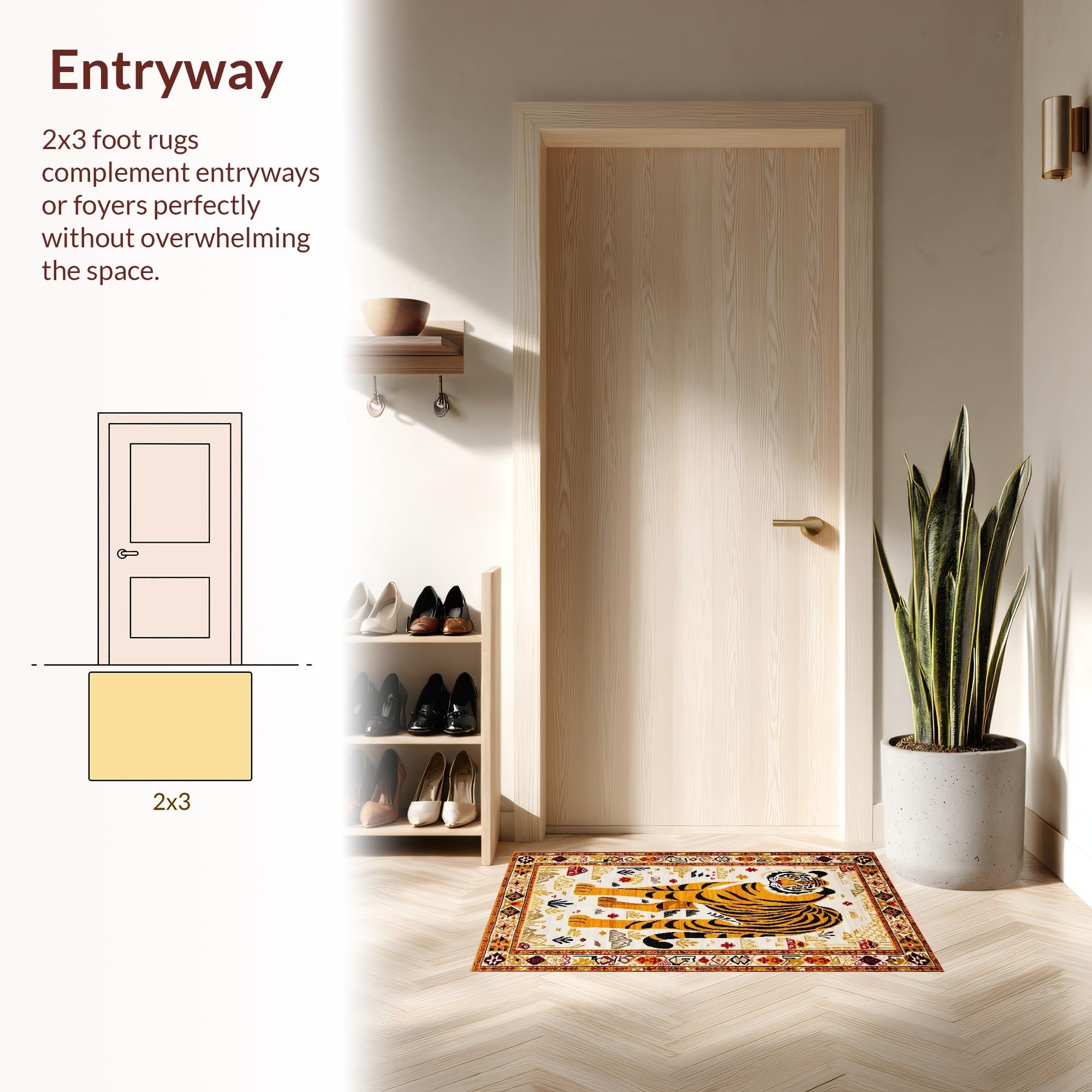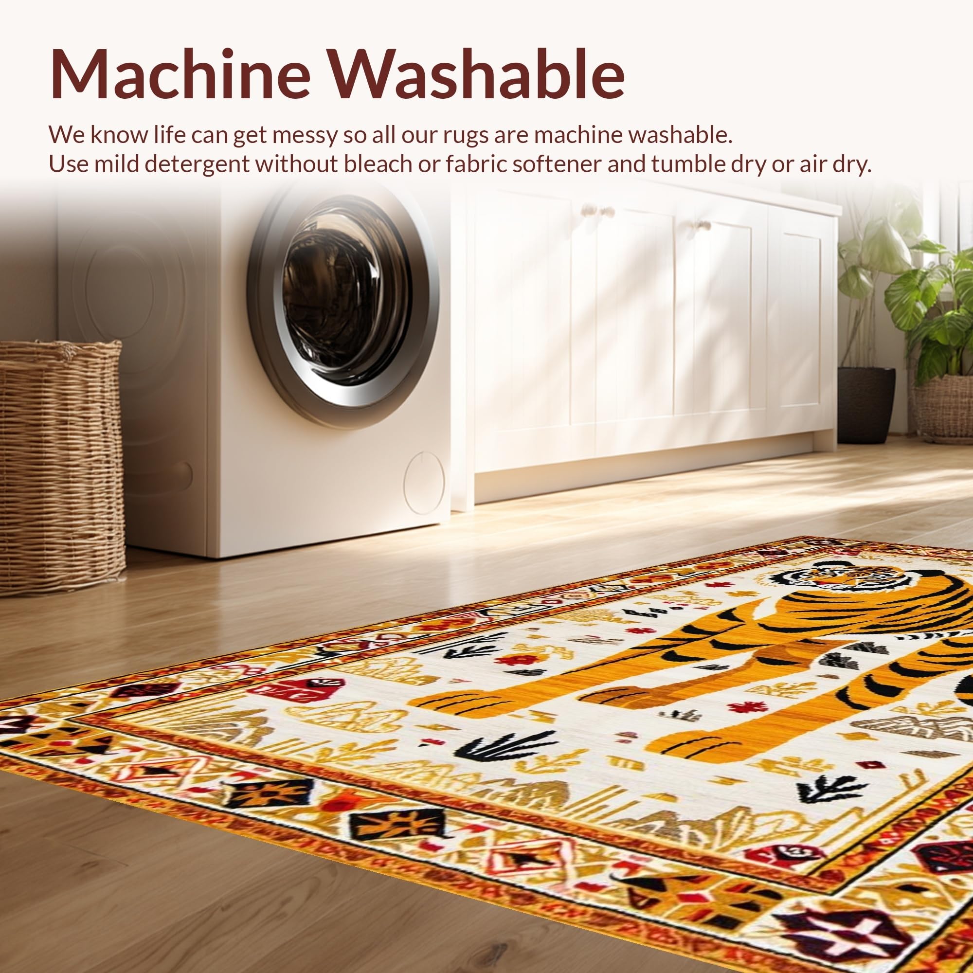 Ultra Soft Area Rug, Non Slip, Stain Resistant, Washable Area Rugs for Living Room, Bedroom, Vintage Ethnic Tiger Motif(Orange) Overview: