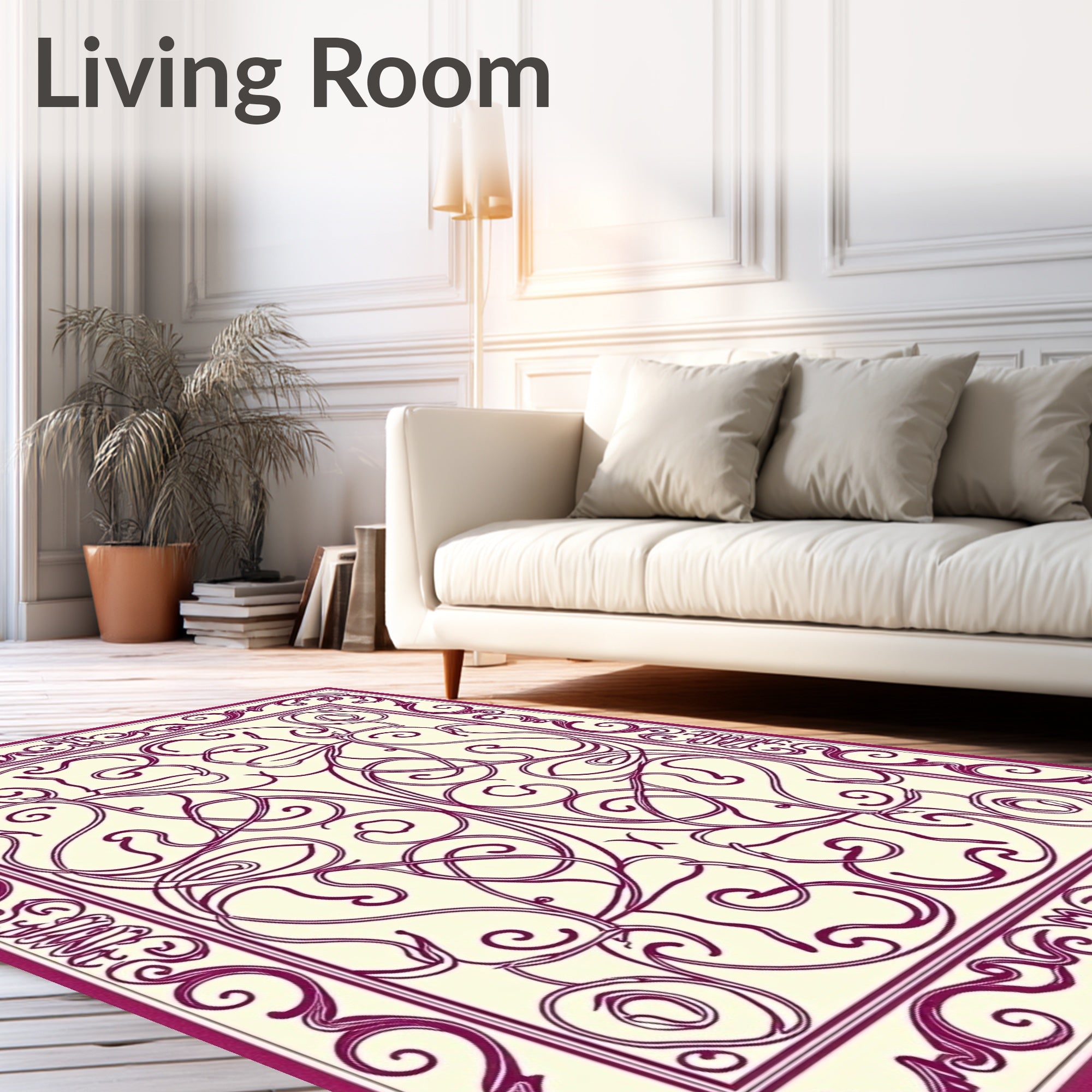 Ultra Soft Area Rug, Non Slip, Stain Resistant, Washable Area Rugs for Living Room, Bedroom, Vintage Filigree Scroll Basketweave Junction(Purple) Overview: