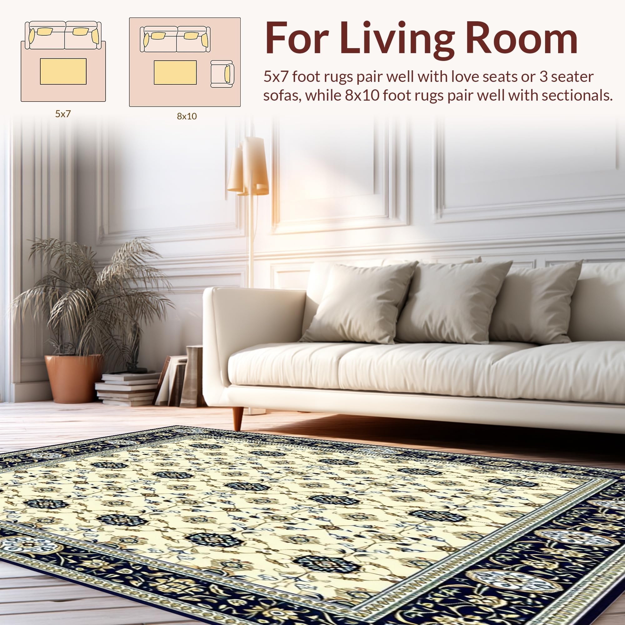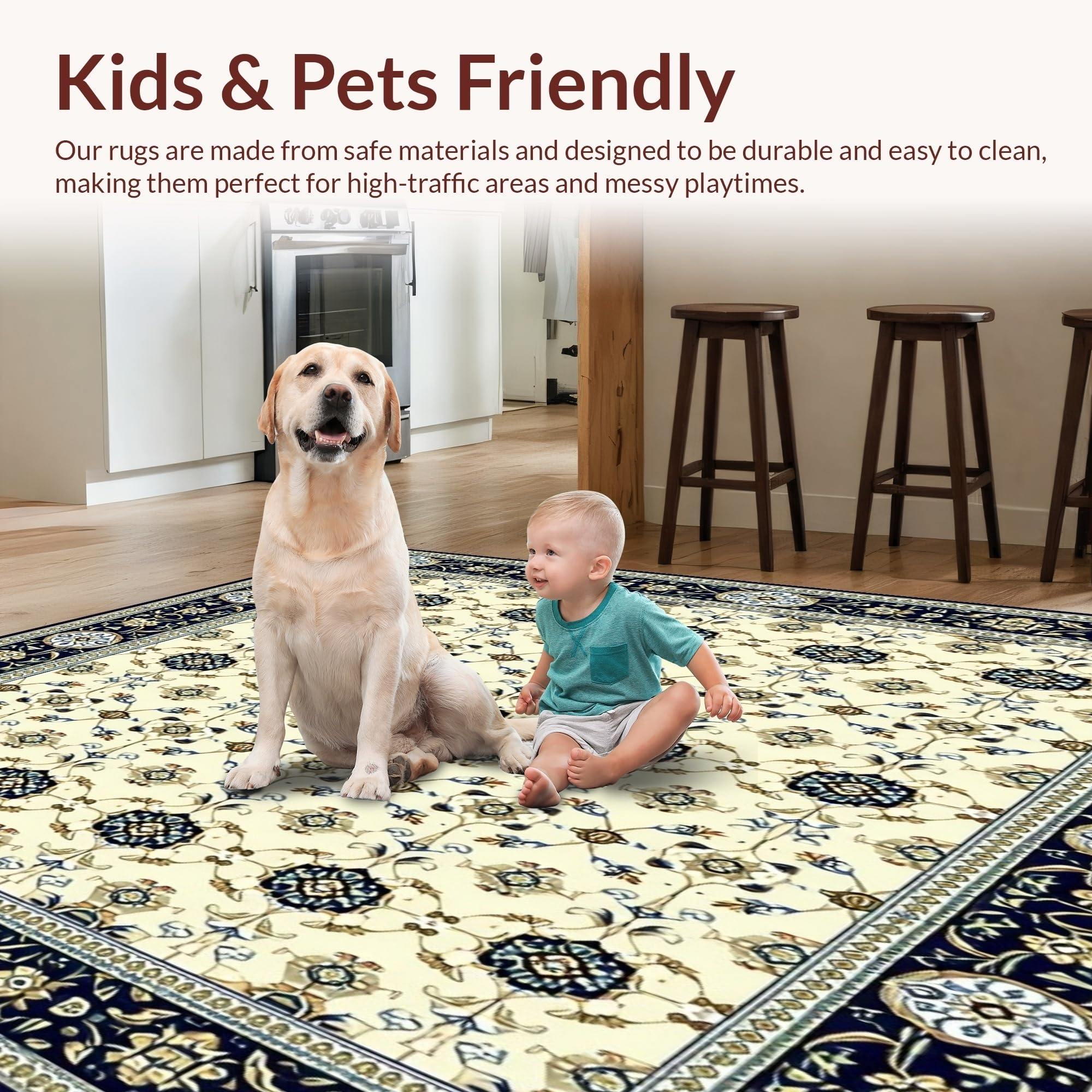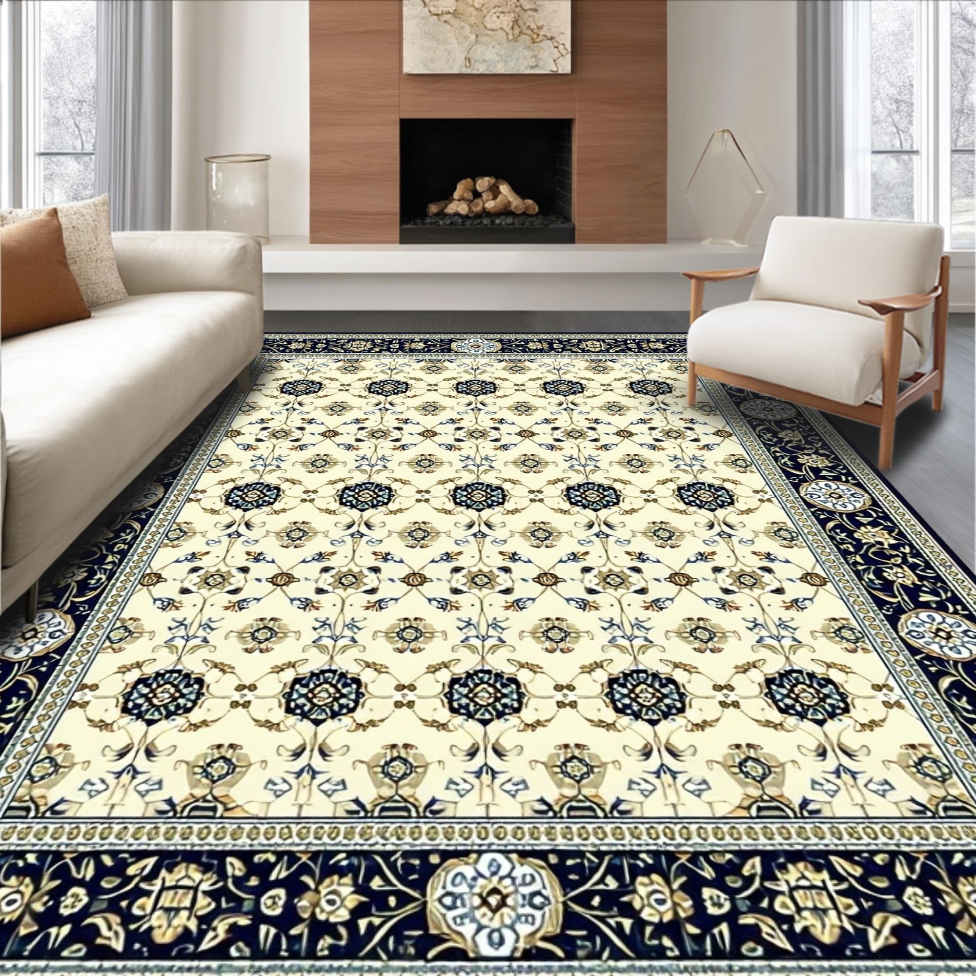 Ultra Soft Area Rug, Non Slip, Stain Resistant, Washable Area Rugs for Living Room, Bedroom, Vintage Floral Beige Blue Hallway(Beige) Overview: