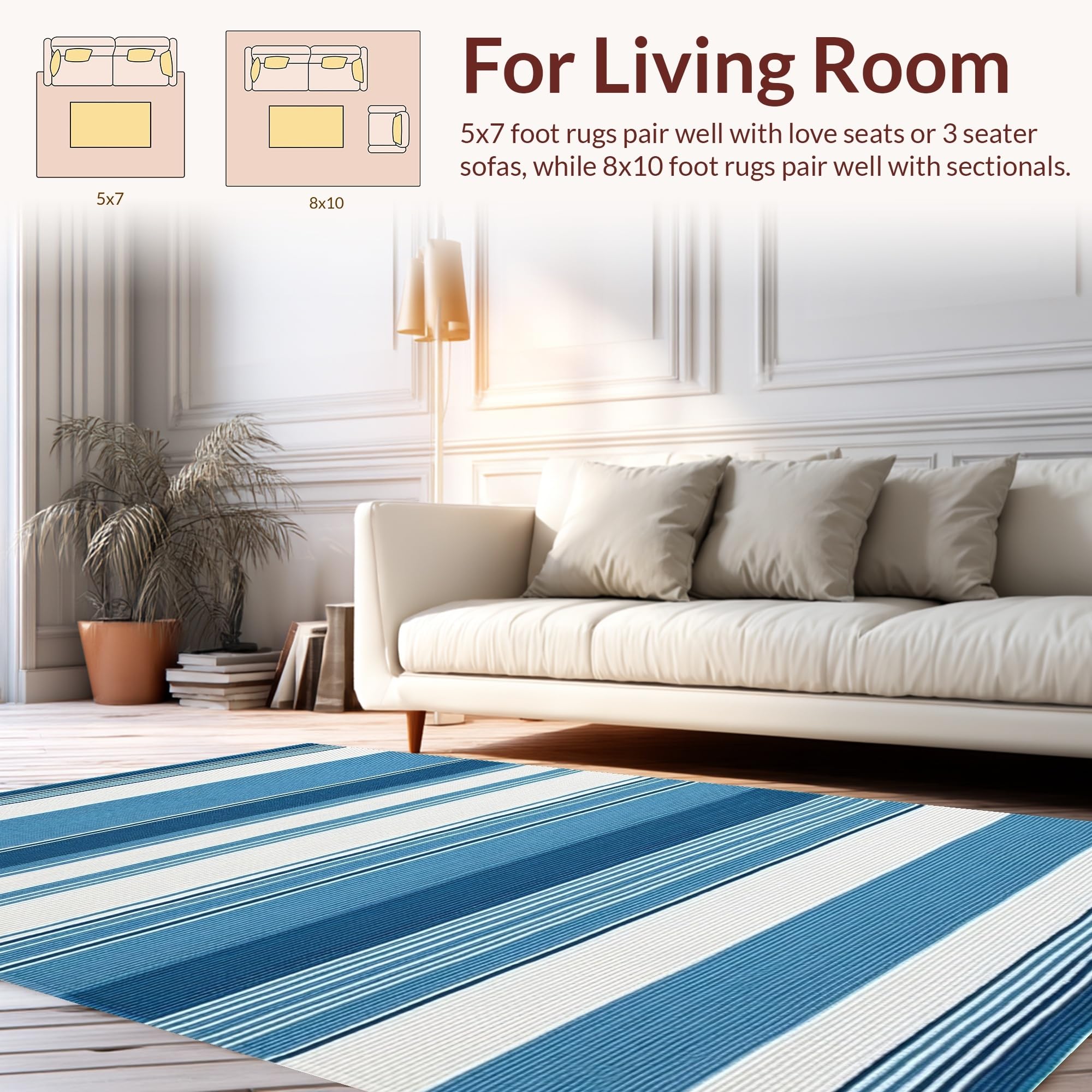 Ultra Soft Area Rug, Non Slip, Stain Resistant, Washable Area Rugs for Living Room, Bedroom, Vintage Floral Blue Accents(Blue) Overview: