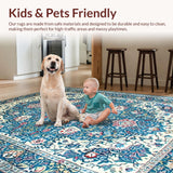 Ultra Soft Area Rug, Non Slip, Stain Resistant, Washable Area Rugs for Living Room, Bedroom, Vintage Floral Blue Elegance(Blue) Overview: